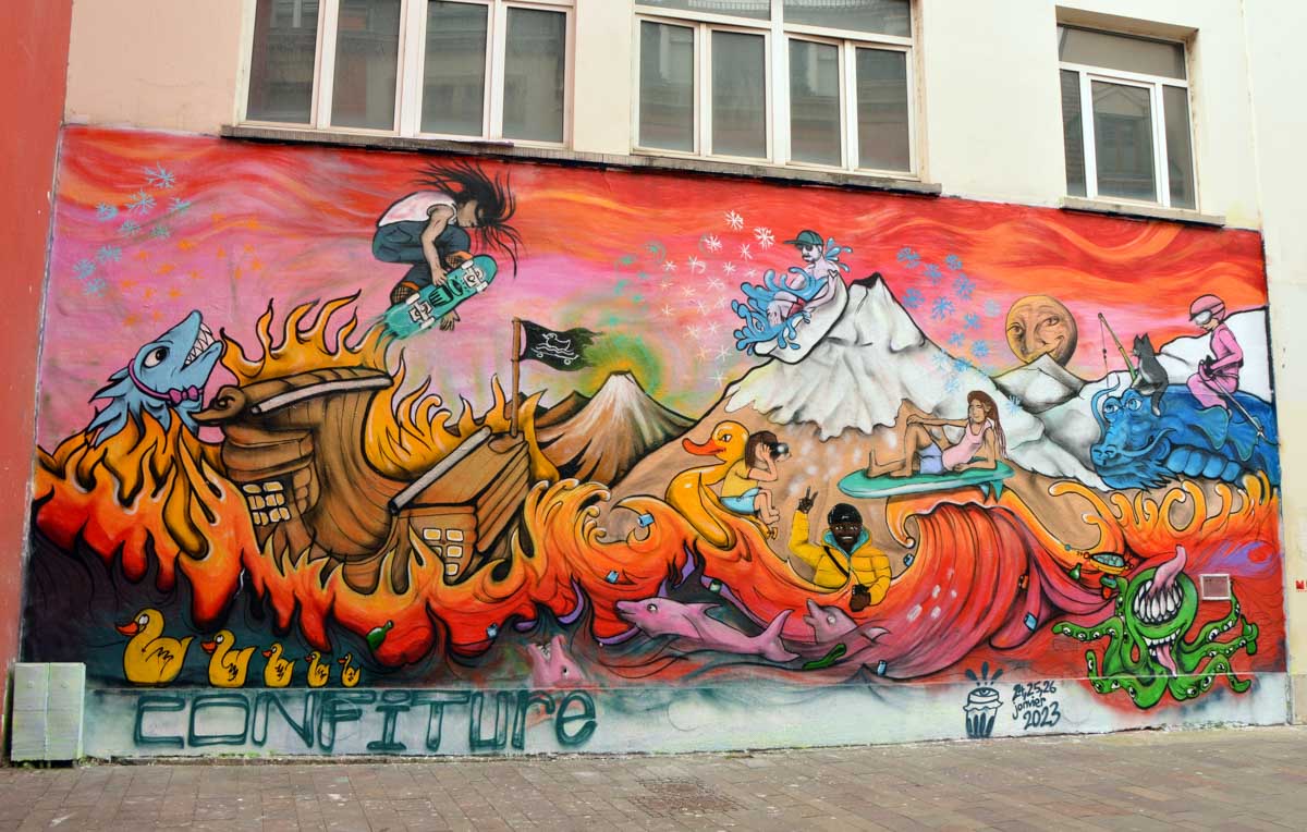 Mulhouse fourmille de trésors : des usines reconverties en lieux de culture, des statues callipyges, des fresques murales, des trompe l’œil, la nature en ville, le plus haut gratte-ciel d’Alsace, un mec qui pue comme pas possible, une punition originale pour les commères, la naissance d’un réalisateur américain, des reflets inversés, une tour en métal et, Haut-Rhin oblige, un vignoble dans la ville !