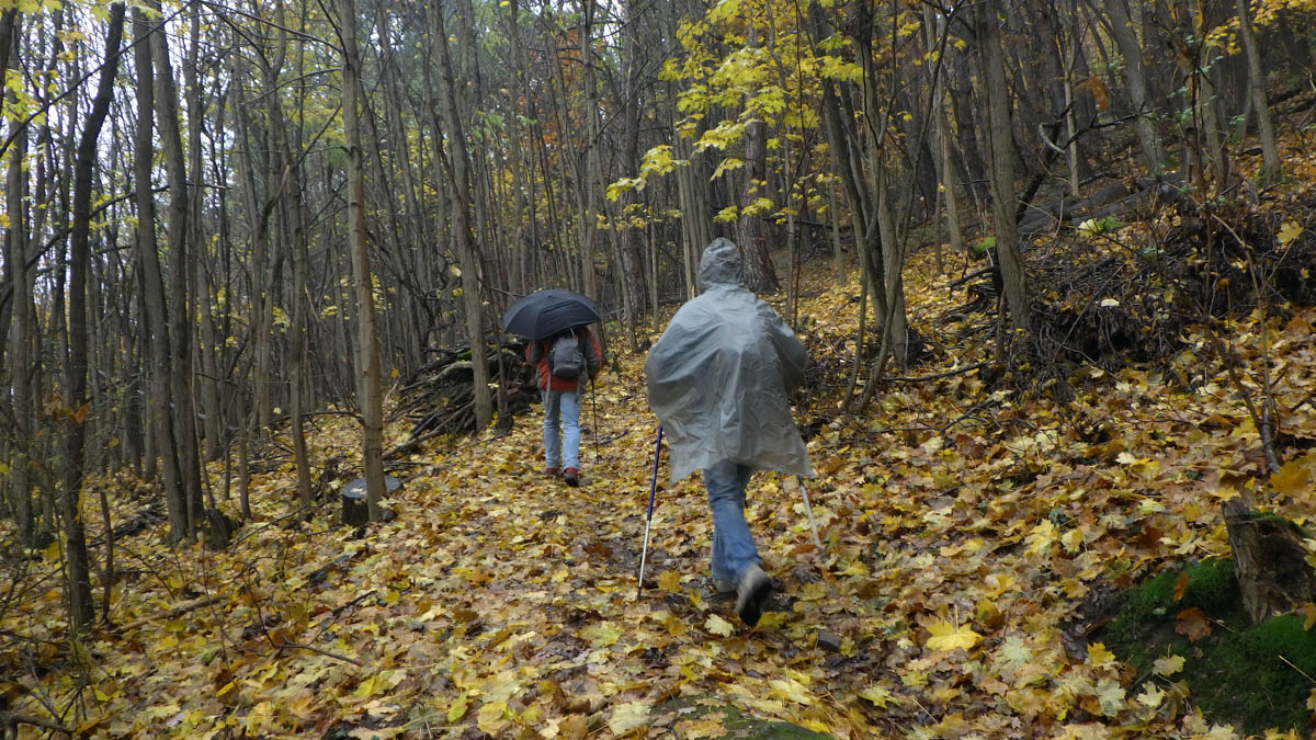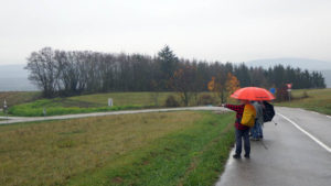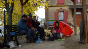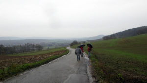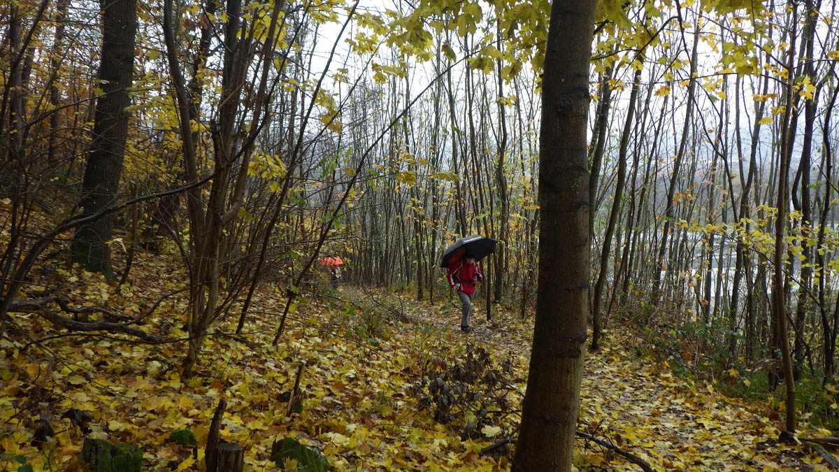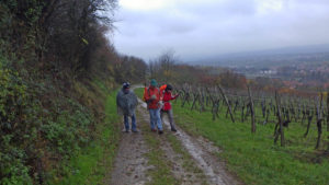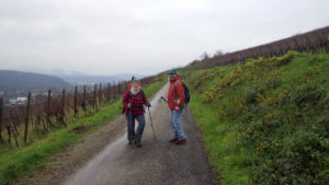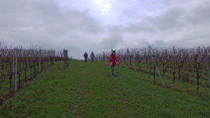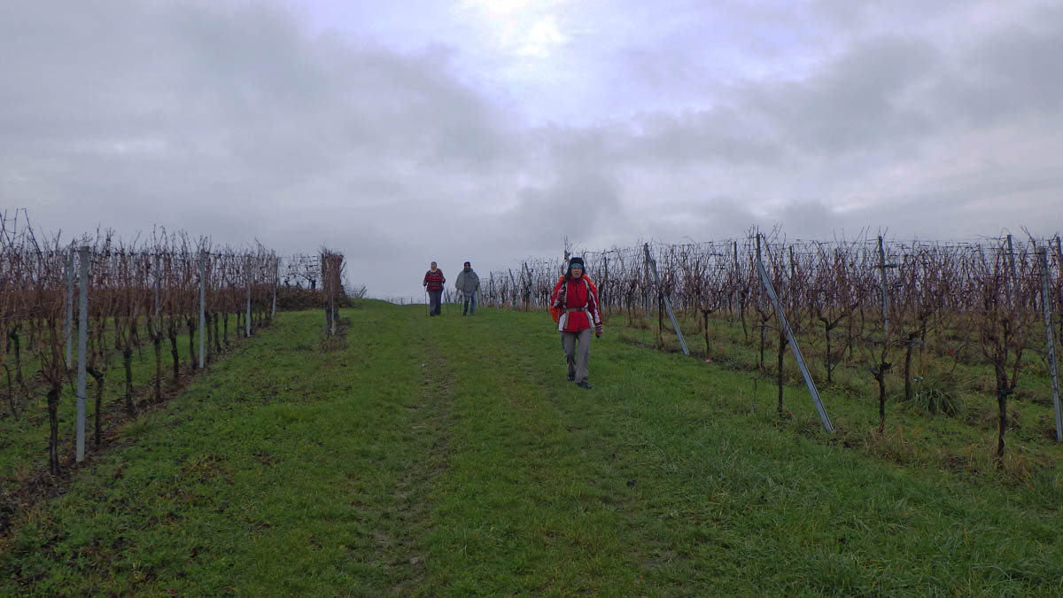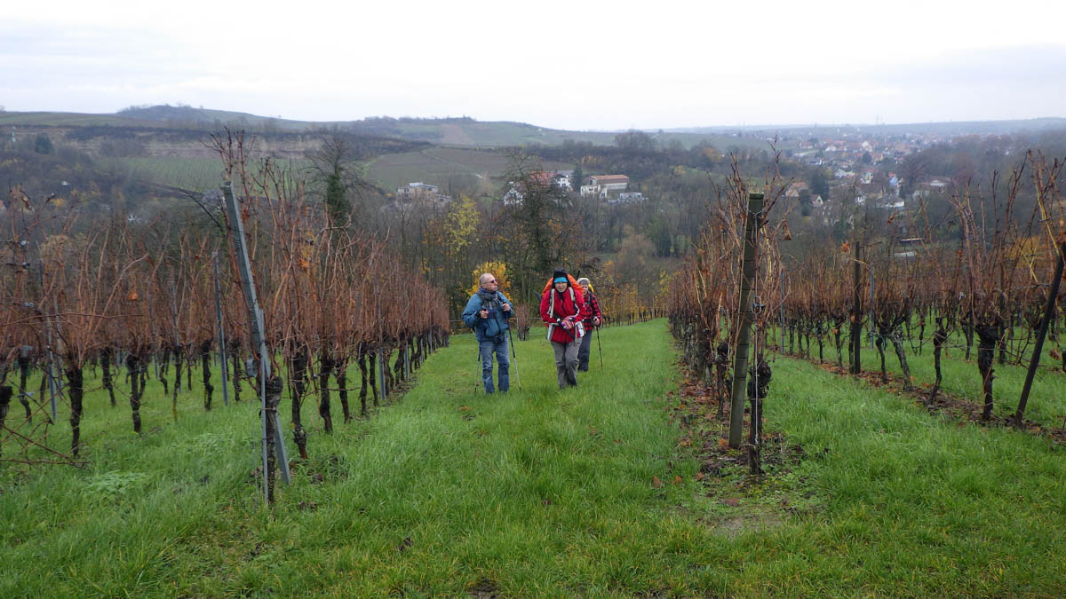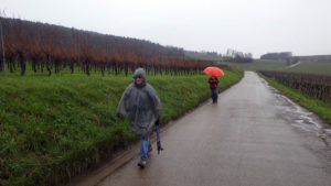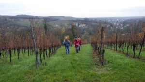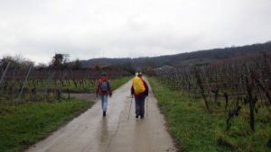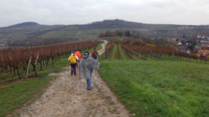 Nous aurions pu avoir un temps froid et sec, nous avons eu un temps pluvieux puis humide. Nous aurions dû marcher tout en-haut, nous n’avons pas pu à cause des chasseurs s’appropriant une colline entière. Nous aurions dû glisser sur les pierres mouillées mais nous avons foulé de l’herbe grâce à notre animateur qui s’est adapté. Nous aurions dû manger sous la pluie mais nous avons trouvé refuge sous le préau d’une école. Bref, une randonnée où rien ne s’est passé comme prévu, mais qui a permis un bon bol d’air entre forêts et vignes, sur des sentiers comme nous les aimons !