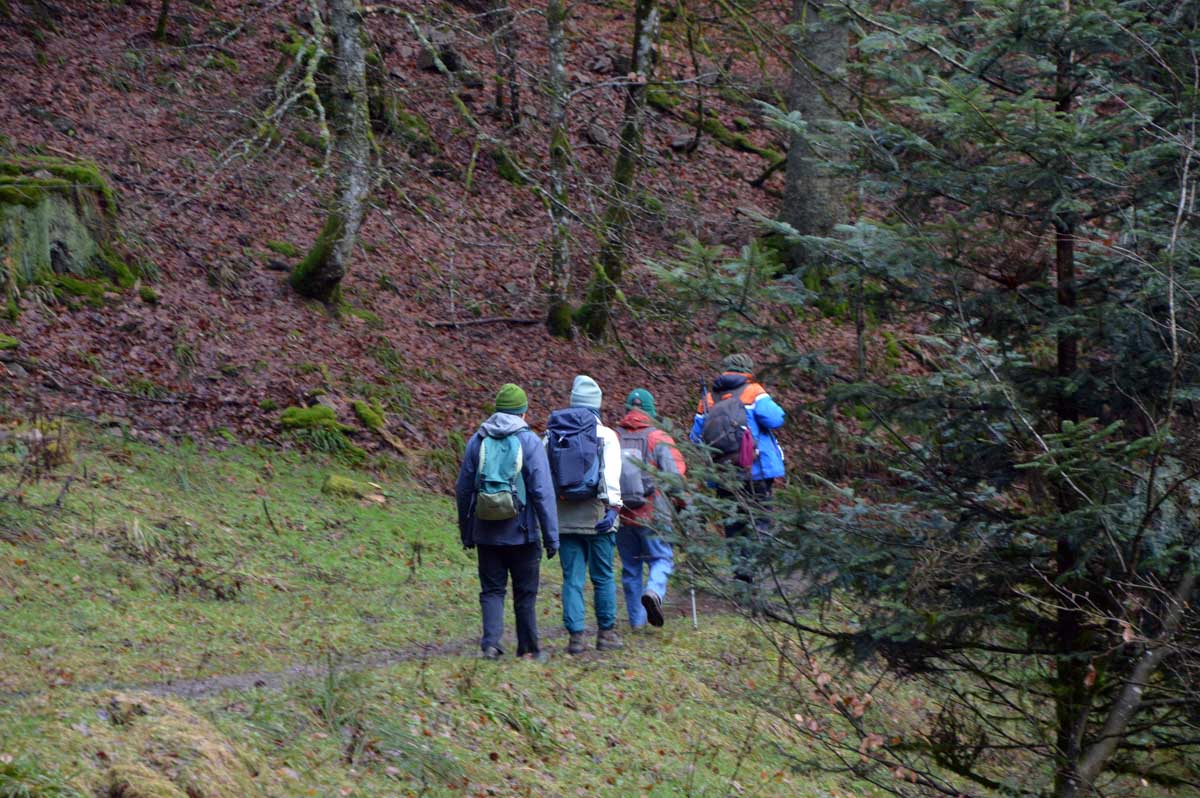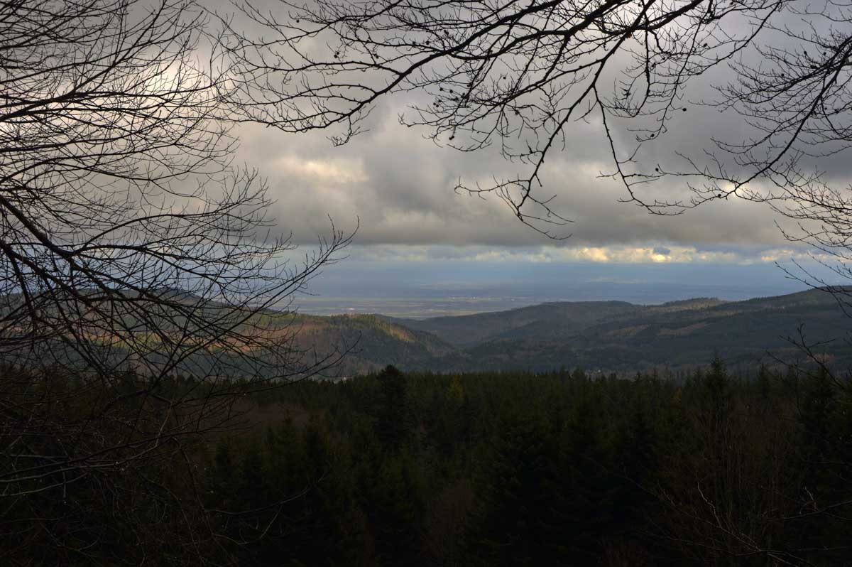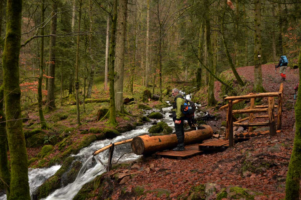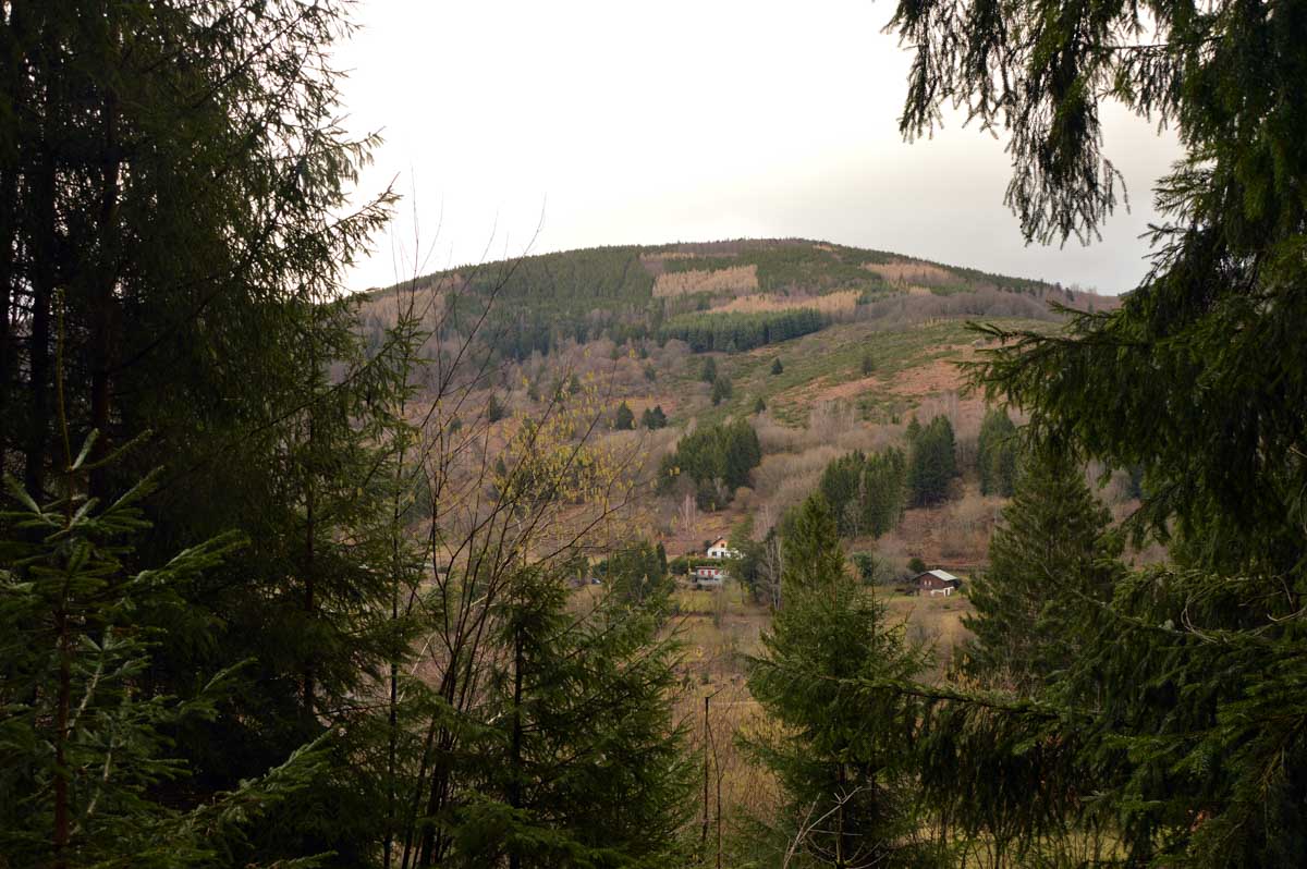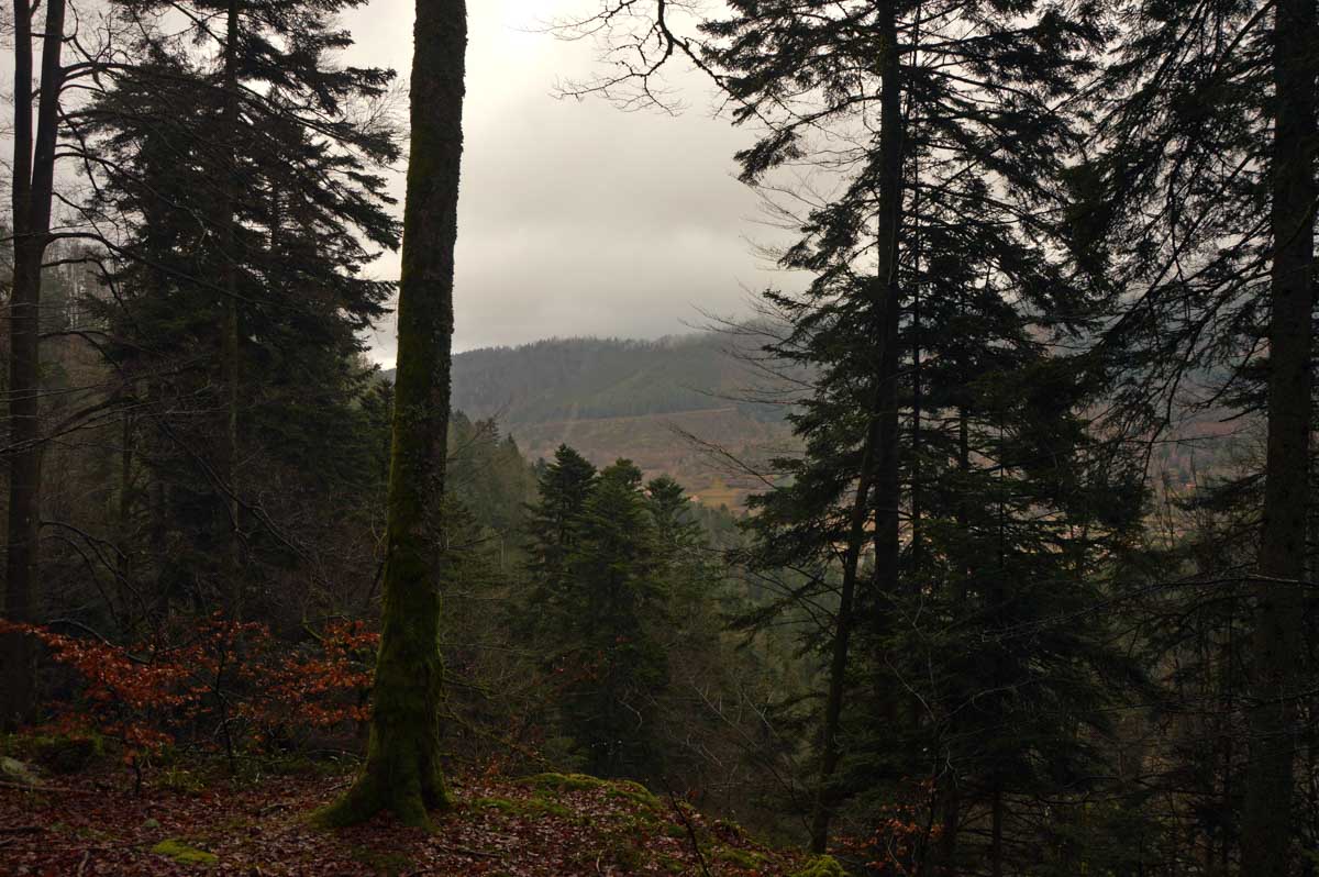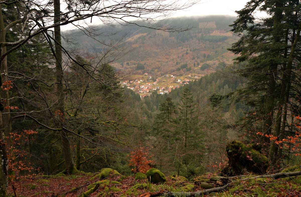 Suis-moi au fond de la Vallée de la Bruche, après Schirmeck, puis à Rothau où tu tournes à droite. Quand t’as la Serva qui se précipite dans la Rothaine, t’es arrivé au bout du bout, à Natzwiller. Une fois garé, tu comprends que t’as fait une connerie vu que pour marcher, t’as qu’une solution : monter. Ou grimper. Ou ascensionner. Ou prendre de l’altitude. Tu as le choix côté littérature, mais dans un seul sens en pratique !