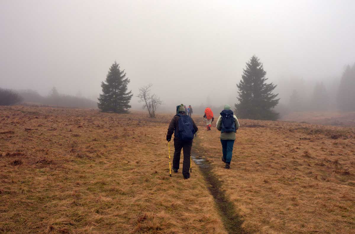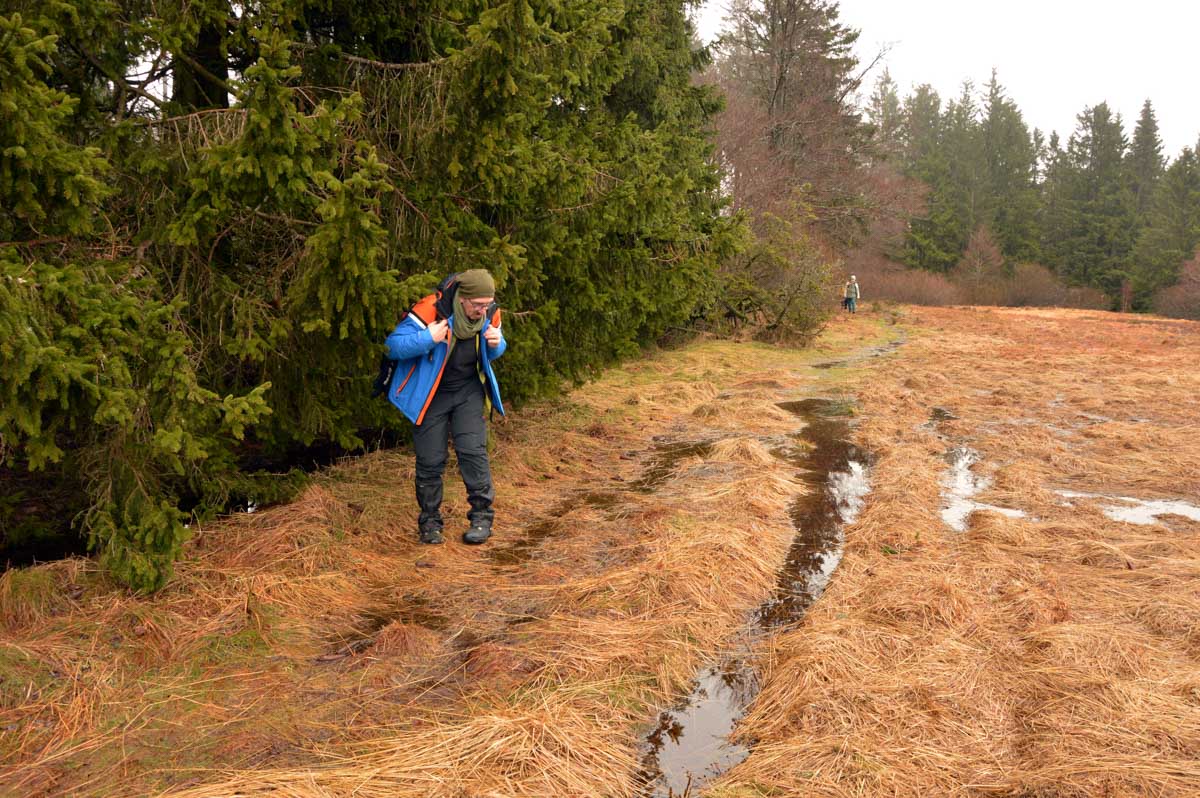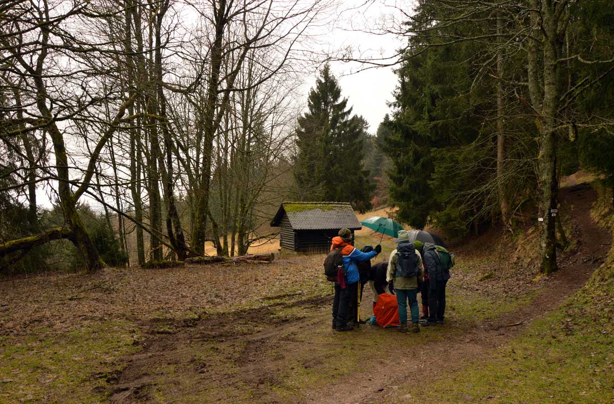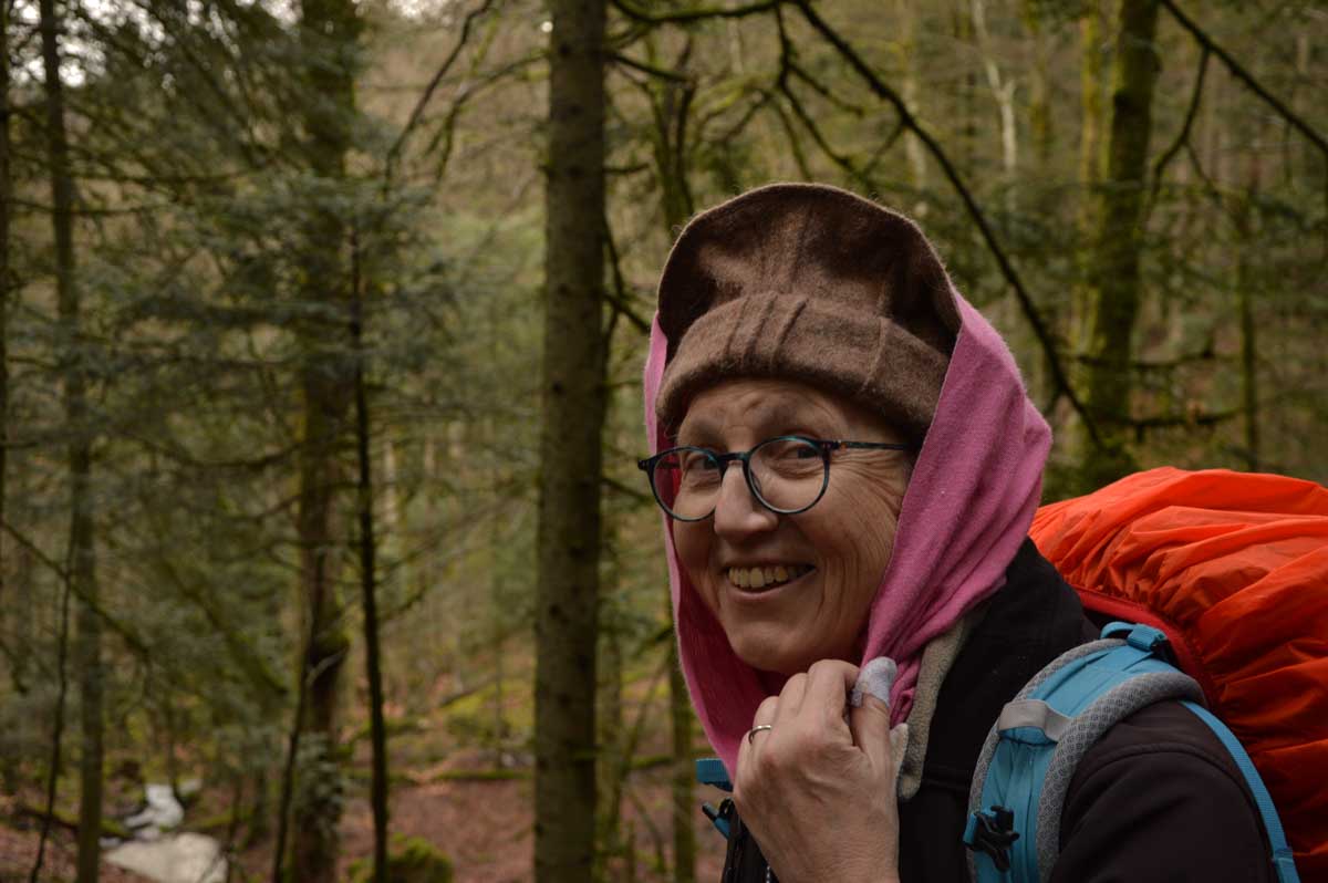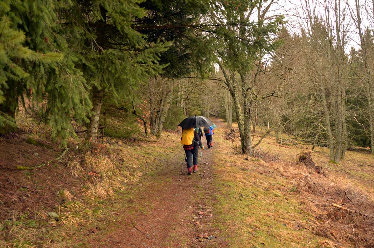 Ainsi dynamisés, nous nous remîmes en route, prêts à conquérir le sommet du Bas-Rhin, nous pataugeâmes dans une immense éponge qui voulait avaler nos chaussures, nous mouillâmes nos chaussettes et nos t-shirts, nous affrontâmes le crachin et nous survivîmes ! … Tu dis ? Nous survécûmes ? Oui bon c’est pareil alors tu prends l’un des deux, tu choisis celui que tu préfères, mon canard, et tu me laisses poursuivre mon récit. Moi je conjugue comme je peux.
