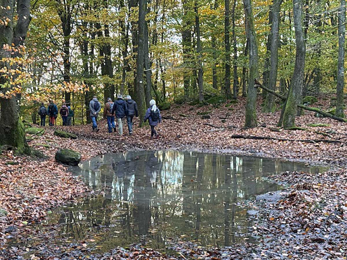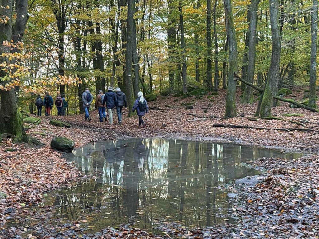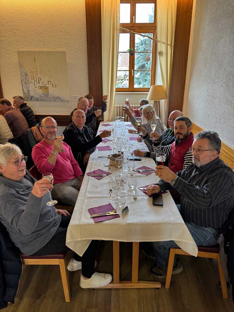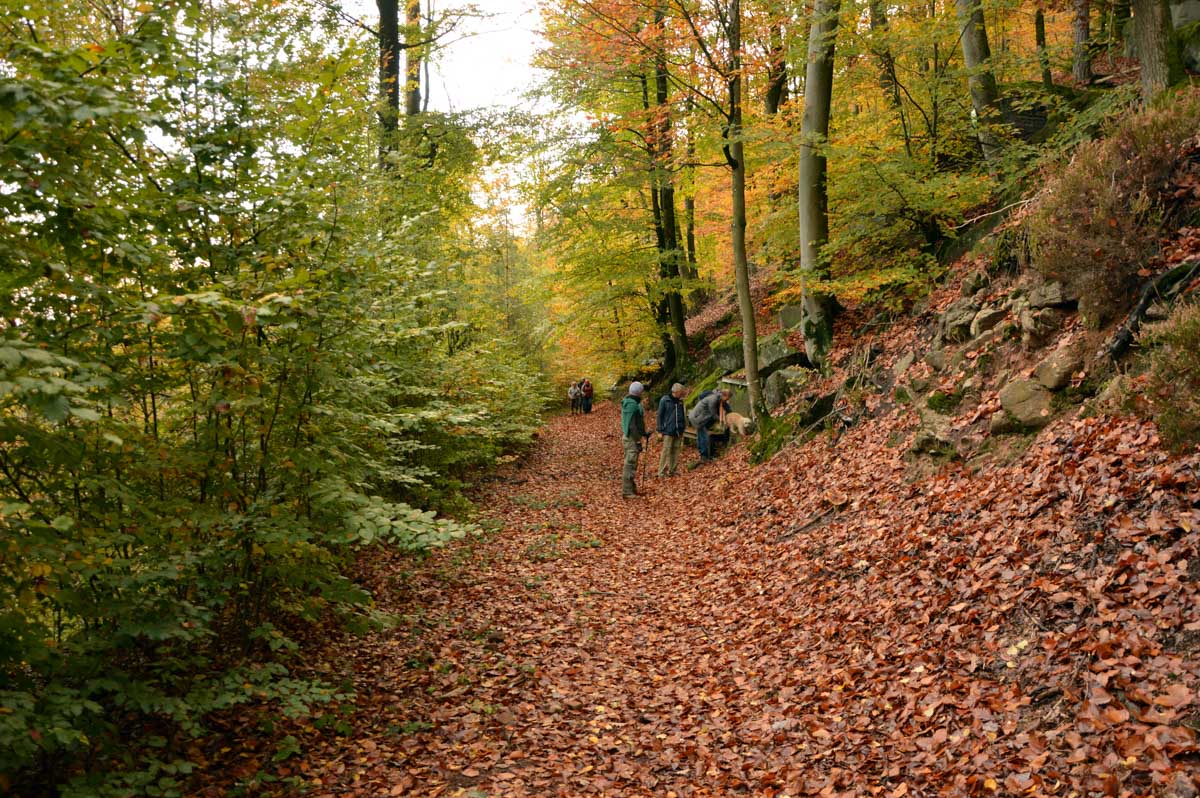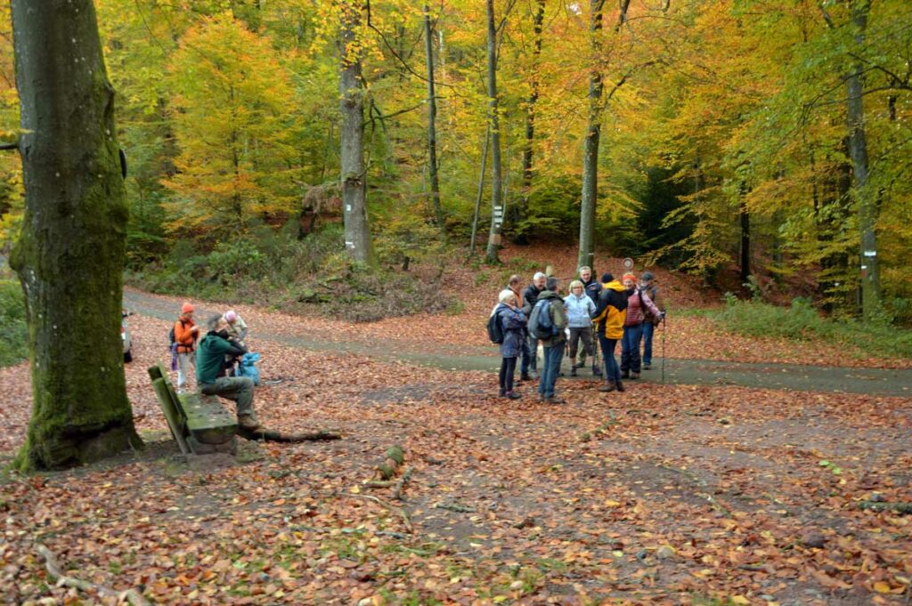 Assemblée Générale Extraordinaire (enfin moi j’ai trouvé ça plutôt banal), puis Assemblée Générale Ordinaire (ça se confirmait) et là j’ai commencé à ressentir une urgence physiologique. Les cafés commençaient à en avoir marre de côtoyer la baguette et il a fallu les éliminer. A peine je revenais dans la salle, hop, relevage de la Karina pour un nouveau tour aux commodités. Lorsqu’enfin la tuyauterie m’a laissée tranquille, l’AG était finie alors je sais pas trop ce qui s’est raconté mais on est allés manger et devine quoi ? Faire une promenade ! Ben tiens, on est une asso de rando, qu’ils disent. Alors pas question de se prélasser dans un fauteuil avec un bon digeo, non, non, faut aller marcher. J’en peux plus moi, de marcher ! Deux heures de balade vers le Michelskopf et son point de vue sur la plaine avec toujours les feuilles jaunes. Faudra un jour que je convertisse tout ça en calories dépensées, tiens. Et bien sûr en montagne. Pouvaient le construire en plaine, leur couvent ! A l’époque, Sainte-Karina-Iris au moins, édifiait ses habitations sur du plat, près des houblonnières ou éventuellement dans les vignes !