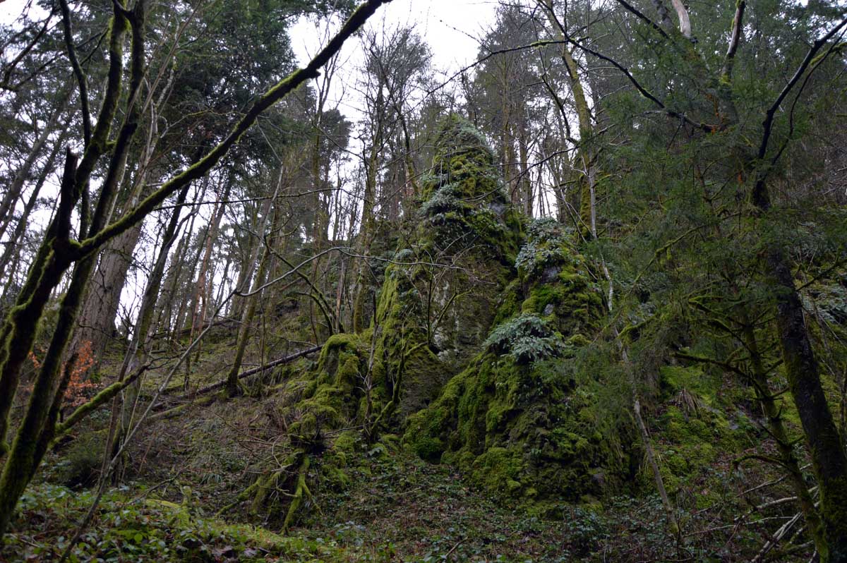 Quand t’as vu un rocher, tu les as… Non ! Tu ne peux pas dire ça. Ici les rochers ont une forme particulière, et ils sont tous recouverts de mousse leur donnant leur couleur verte. On peut y deviner des formes, des visages, pour peu qu’on se laisse porter.