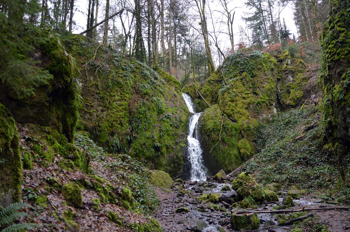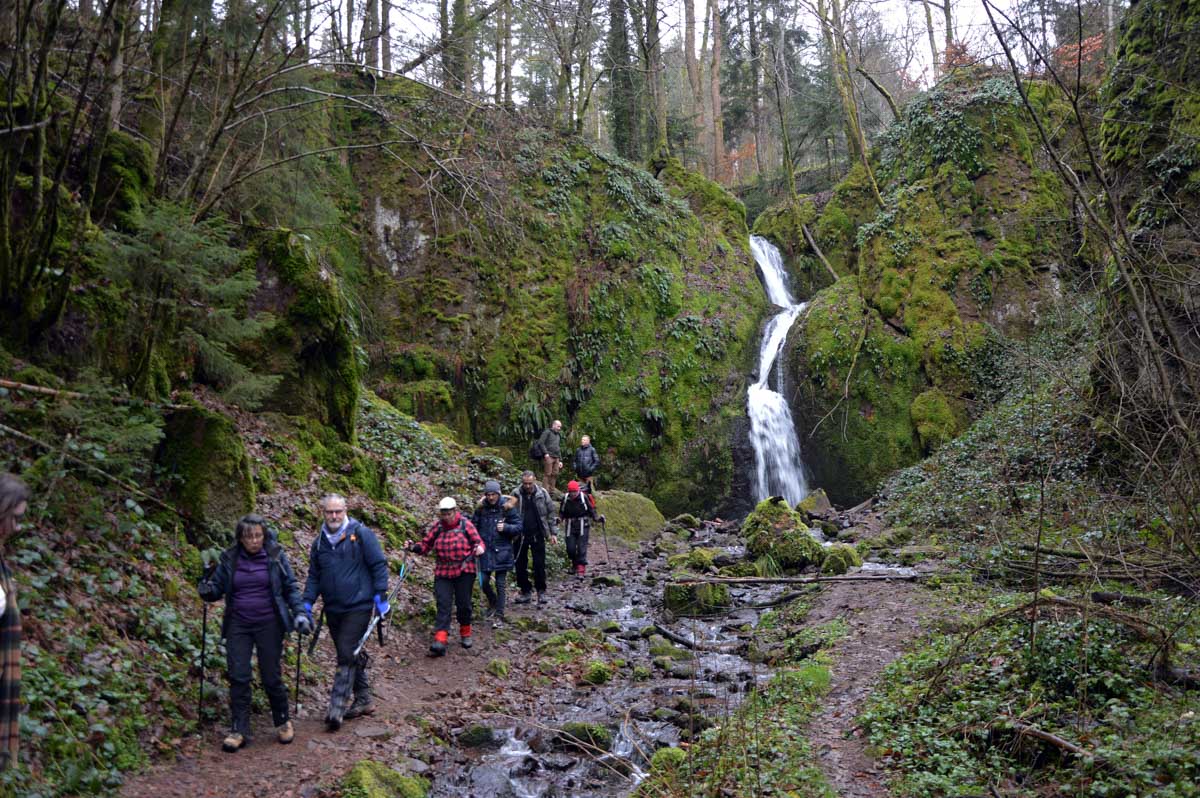 Quand t’as vu une cascade, tu les as toutes vues ! Ah non, pas d’accord, celle du Soultzbach est unique, dans son écrin rocheux en fond de vallon, avec de l’eau qui s’élance de huit mètres de haut. D’autant que nous sommes à l’altitude stratosphérique de 370 mètres.