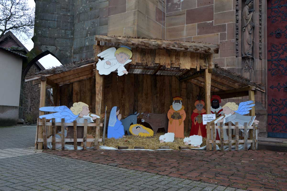 Quand t’as vu une crèche, tu les as toutes vues ! Non, pas celles de Niederhaslach, l’une plutôt sobre, en extérieur, l’autre à l’intérieur, illuminée par une guirlande clignotante qui en ferait presque une discocrèche (le concept vient d’être inventé). Dans les deux, on attend l’arrivée des rois mages pour le 6 janvier.