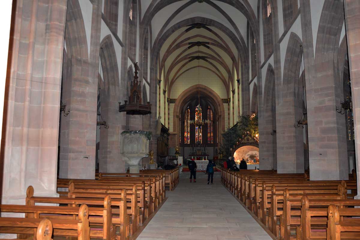 Quand t’as vu une collégiale, tu les as toutes vues ! Eh bien justement non ! Celle de Niederhaslach est dédiée à Saint-Florent, elle date du 13ème siècle, et a été restaurée au 19ème siècle. Puis c’est quoi une collégiale ? C’est une église disposant d’un chapitre de chanoines… Oui mais quand t’as lu un chapitre, t’as lu tout le bouquin… Mais non, un chapitre de chanoines, c’est une équipe complète desdits chanoines chantant ensemble les chants religieux. De l’adjectif collégial, qui implique de faire et décider ensemble.