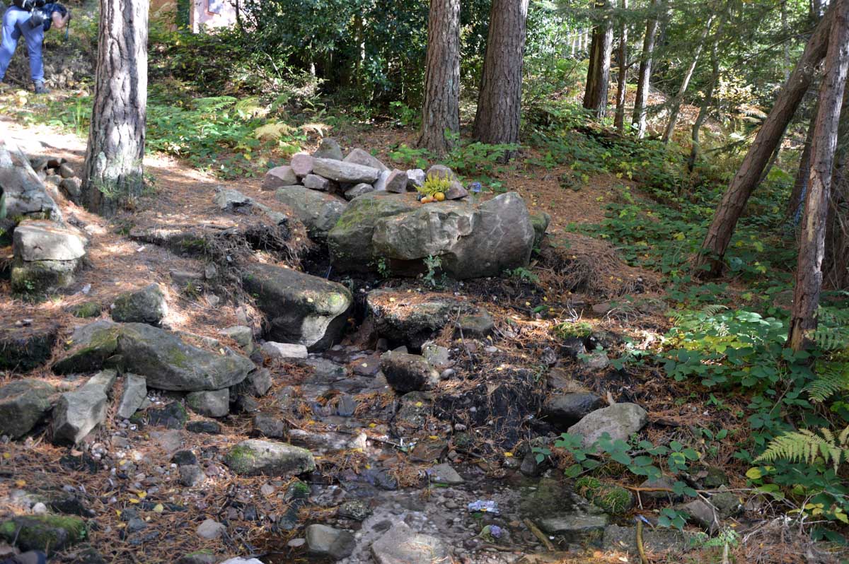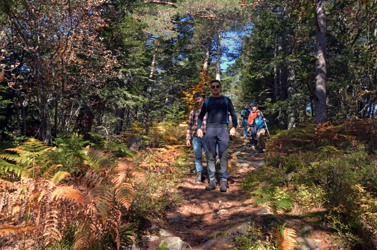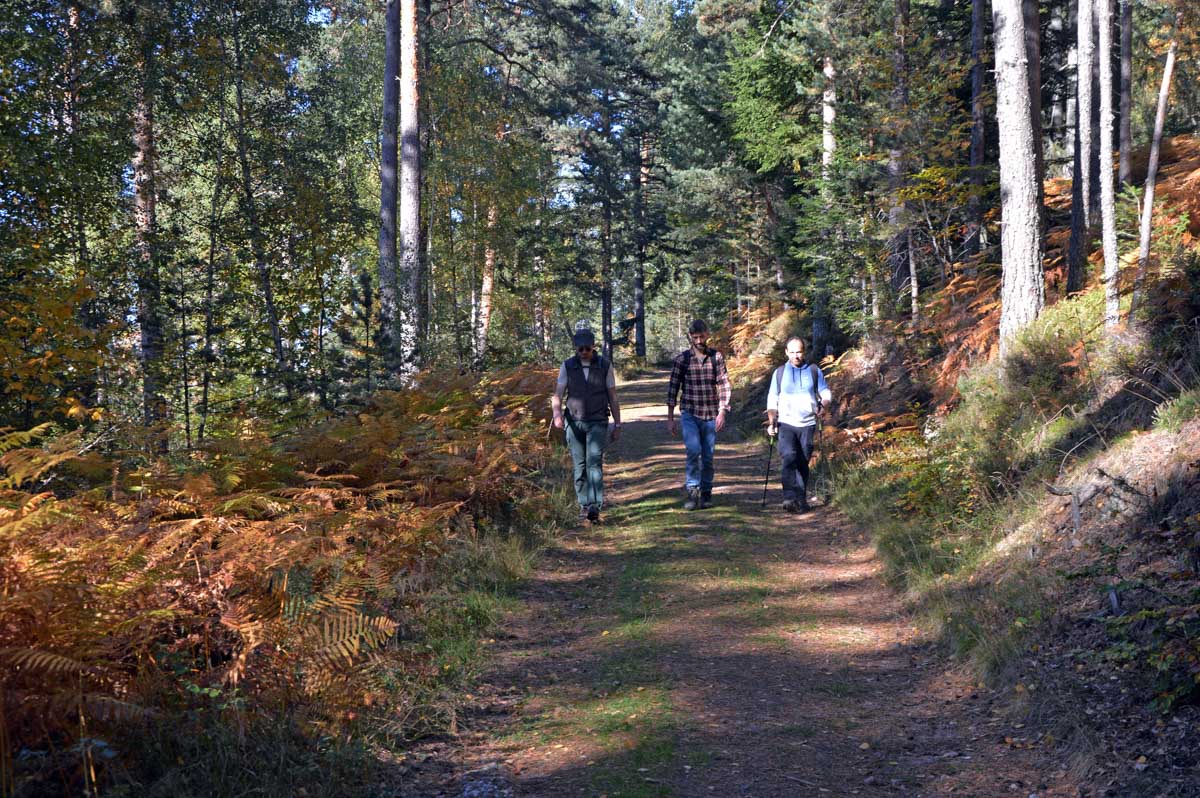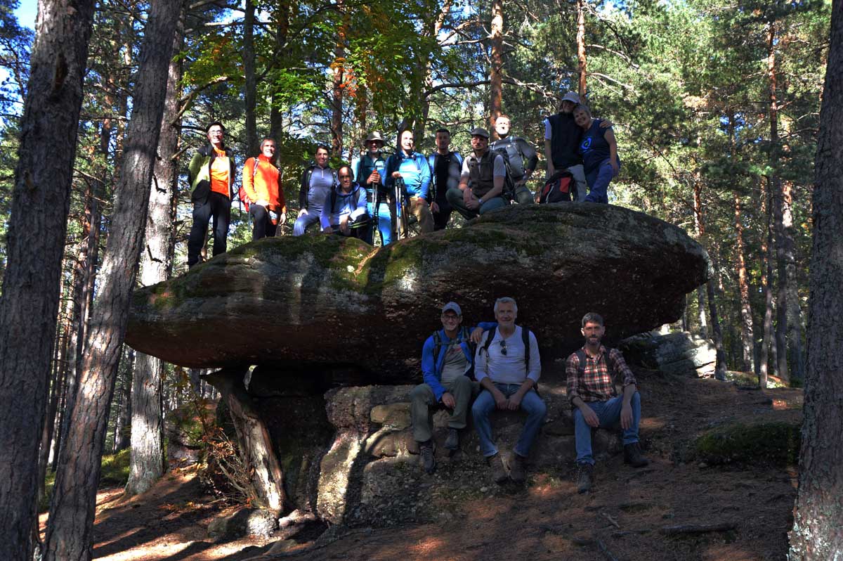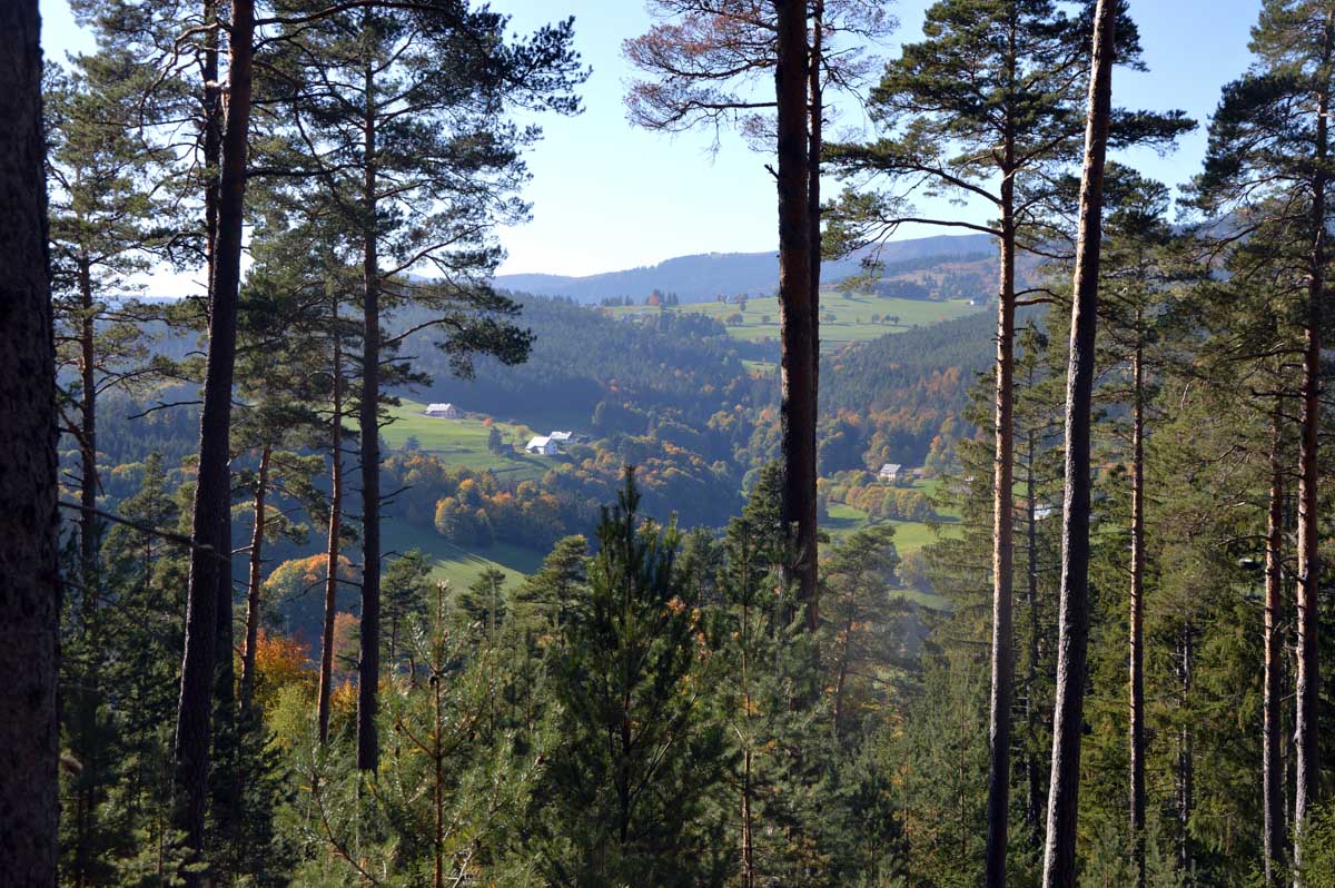 Alors superbe lumière d’automne par les Hautes-Huttes jusque sur la crête pour découvrir des rochers dont la Pierre Branlante, qui rappelle un peu… Excusez, le même pointilleux a une objection. On t’écoute ? Ah c’est la Pierre Tremblante ? Bon, au final c’est pareil, non ? C’était bien la peine d’intervenir. Du coup j’en étais où ? On marchait dans un superbe paysage automnal et l’autre m’a perturbé avec sa pierre dont on ne sait pas si elle frissonne ou pas. Bref donc, la forêt ici est particulière, avec ses arbres pas très hauts et ses fougères toutes jaunes. Quelques vaches, des chevaux et des ânes nous ont salués avant que… Quoi encore ? Une pointilleuse cette fois, oui on t’écoute !