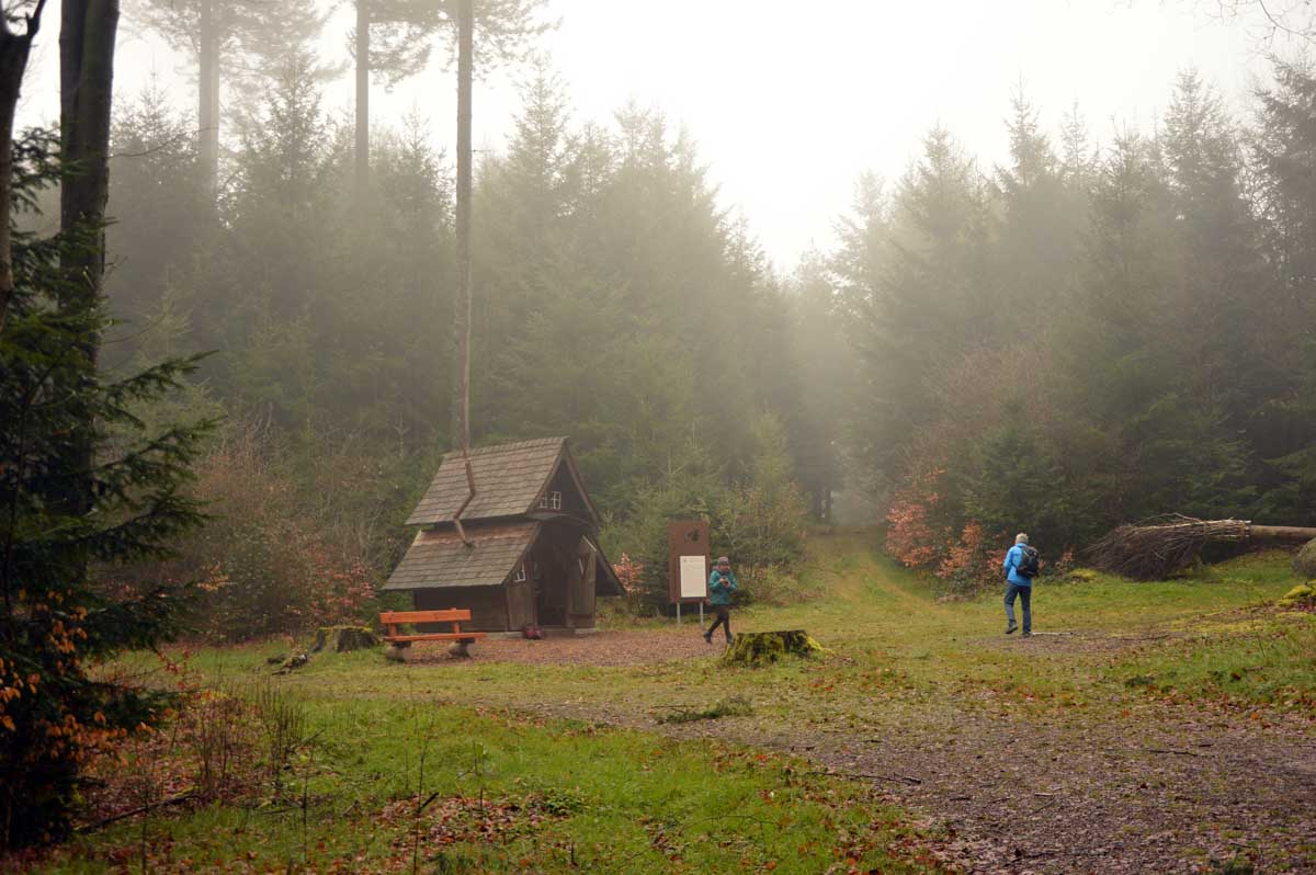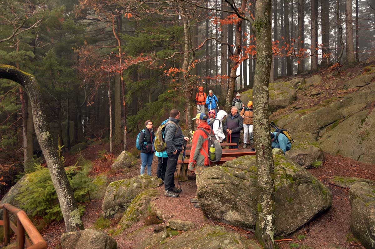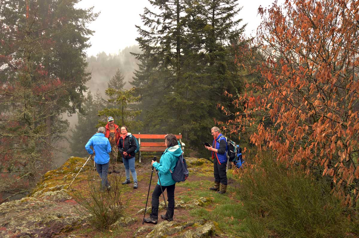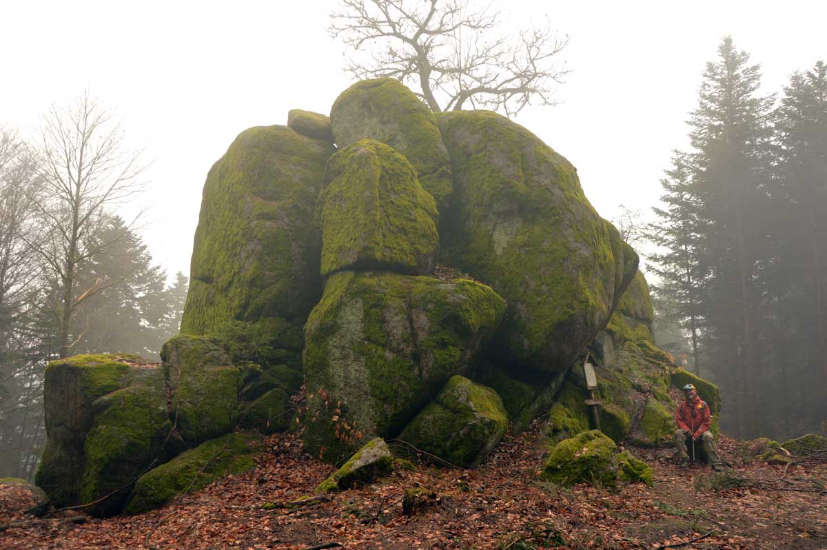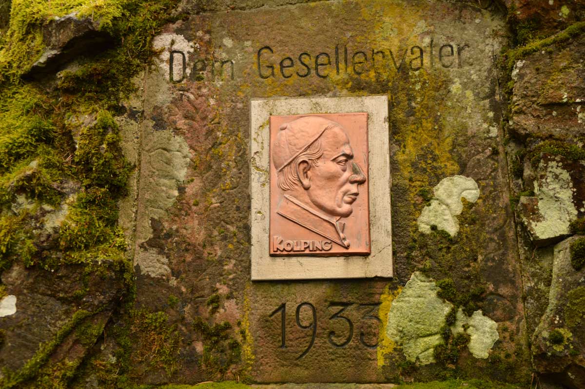 A défaut de points de vue (sauf pour ceux qui aiment contempler les gouttes et le brouillard), nous avons pu admirer nombre de rochers de porphyre et de granit, et croiser la route d’Adolph Kolping (1813-1865), prêtre et créateur de la Fédération des Compagnons de Rhénanie.