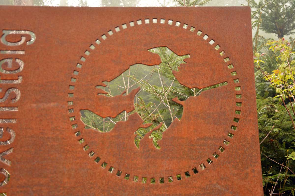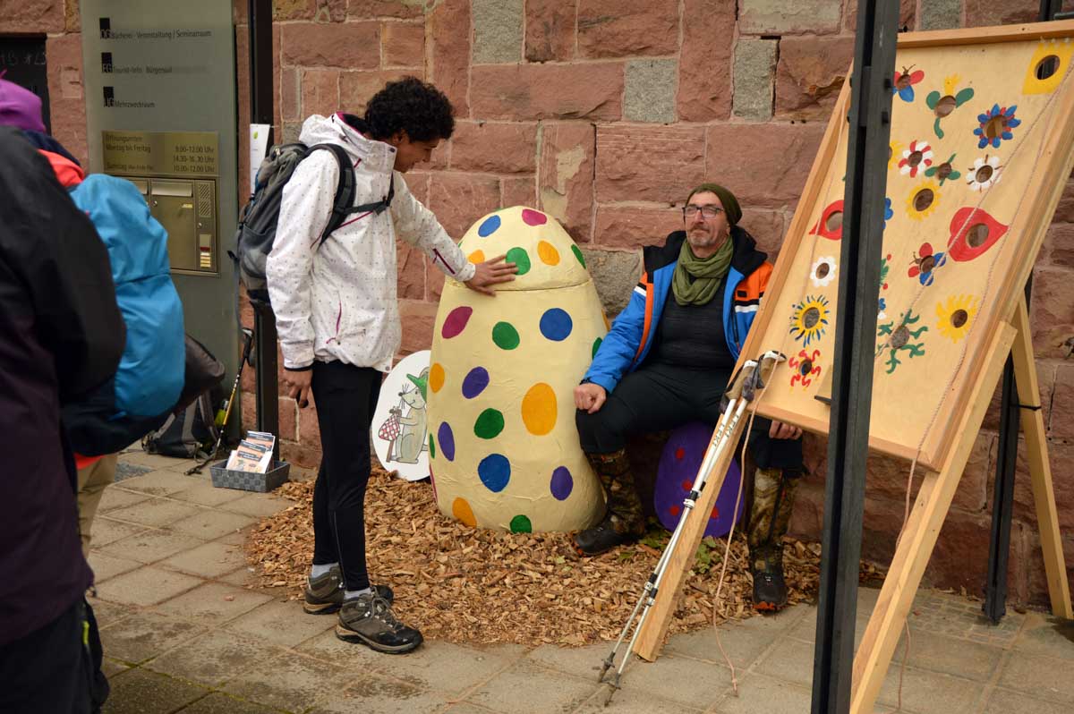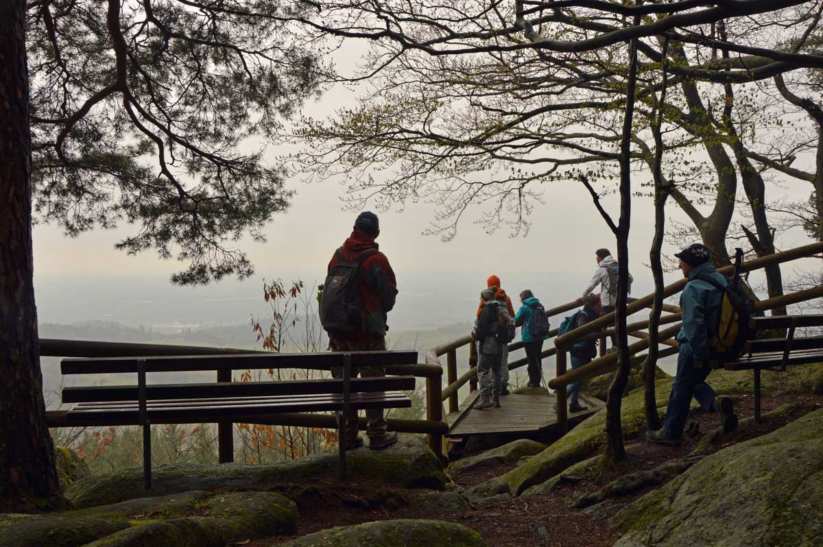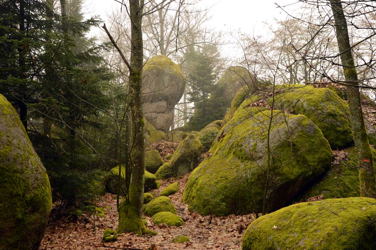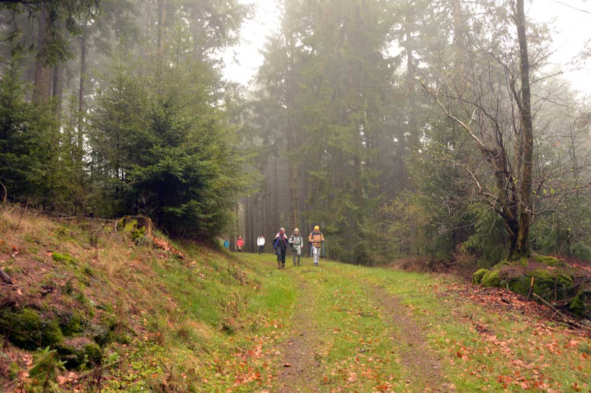 A défaut de points de vue (sauf pour ceux qui aiment contempler les gouttes et le brouillard), nous avons pu admirer nombre de rochers de porphyre et de granit, et croiser la route d’Adolph Kolping (1813-1865), prêtre et créateur de la Fédération des Compagnons de Rhénanie.
