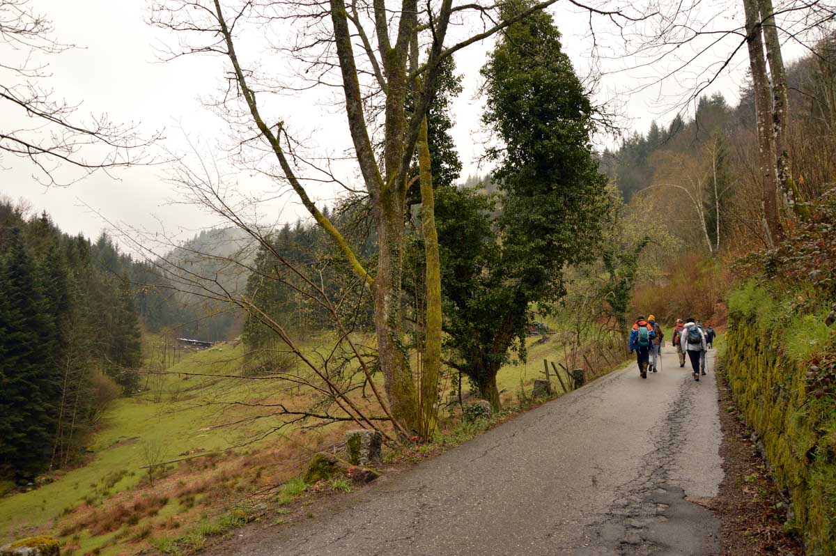 Pour une fois, je vais vous raconter une légende, vous allez adorer ! Mais pour commencer, f’sait pas beau, d’accord, mais ce n’était pas la pluie non plus. Quelques gouttes pour nous intimider, et de la brume pour nous enquiquiner (ça faisait longtemps que je voulais le placer, celui-là). L’en fallait davantage pour nous décourager ! On est des randonneurs, après tout.