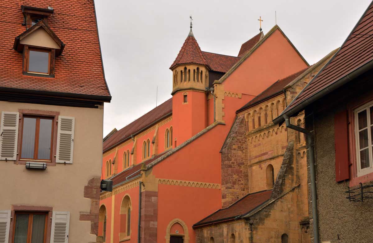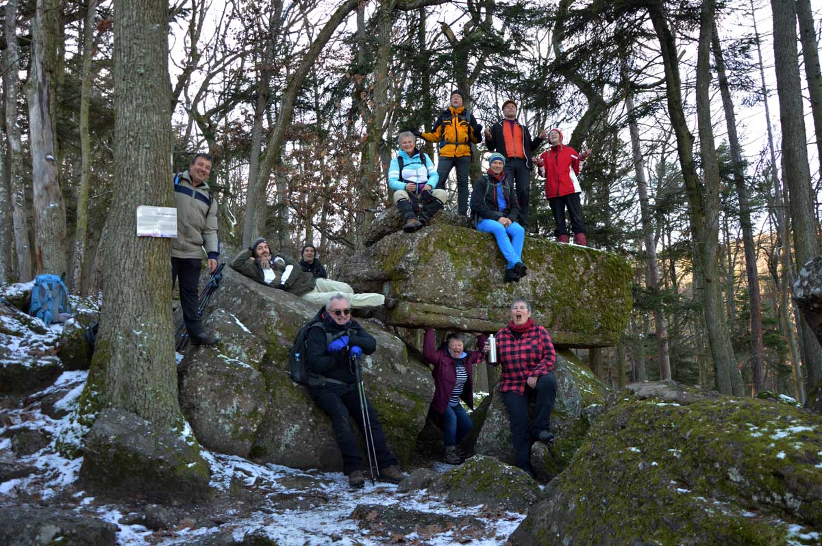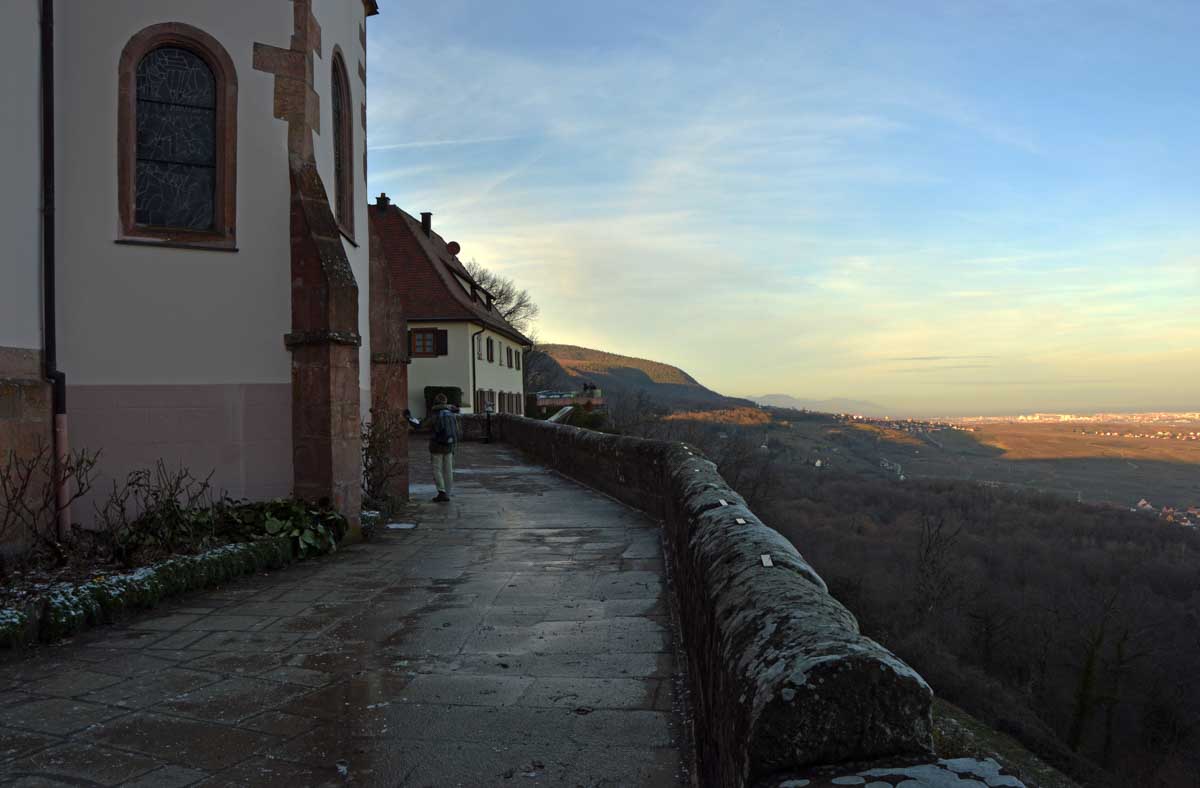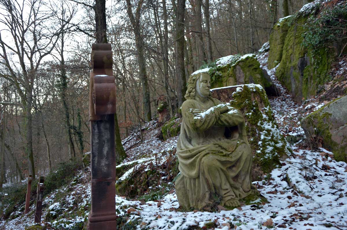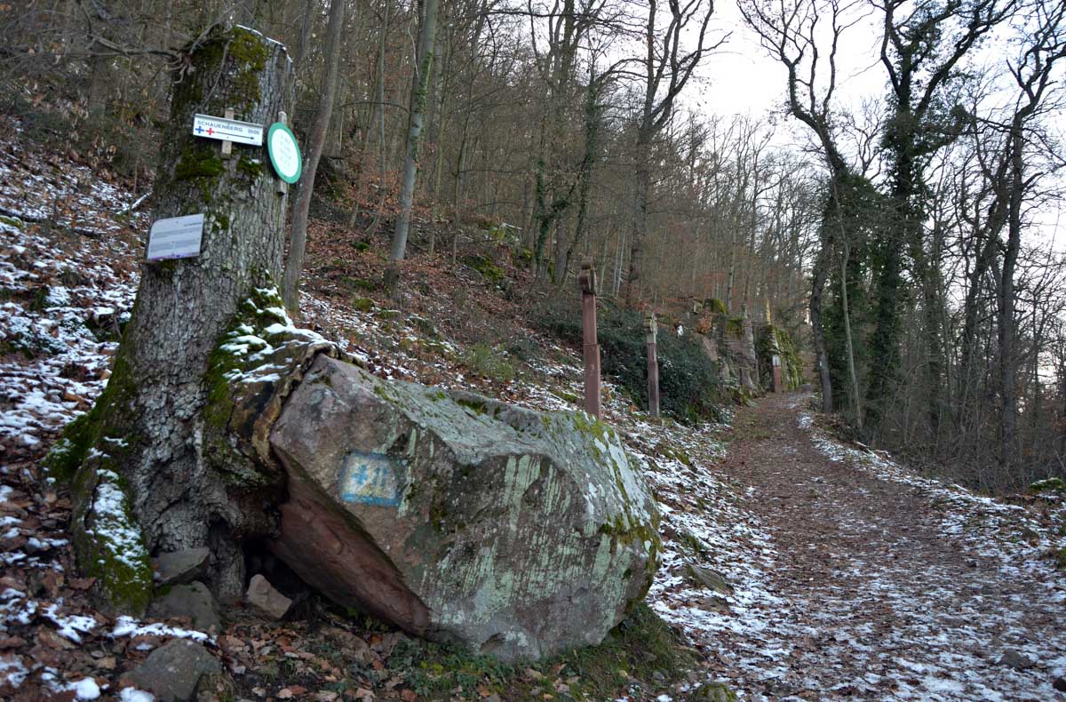 En pratique, je me suis gelé la zone australe sur le rocher, j’ai eu le pantalon trempé en convertissant le givre en eau, et je suis rentrée avec une cystite. Elle est belle l’énergie du haut-lieu, à mon avis les druides avaient déjà tout épuisé ! Heureusement je me suis réconfortée avec un chocolat chaud chez les sœurs de Saint-Joseph et Saint-Marc, à Notre-Dame du Schauenberg, lieu de pèlerinage depuis 1483, pour se souvenir de la guérison miraculeuse d’une princesse par un ermite (on ne sait pas comment il l’a guérie, je n’ose y penser).