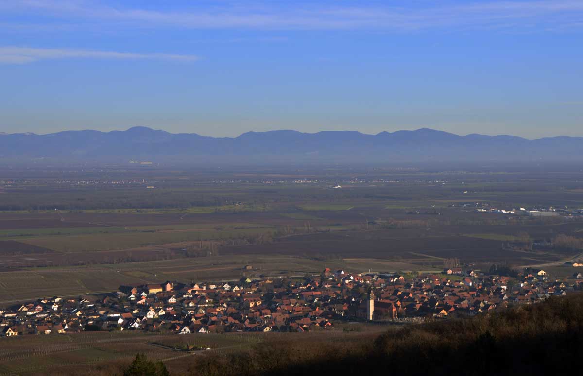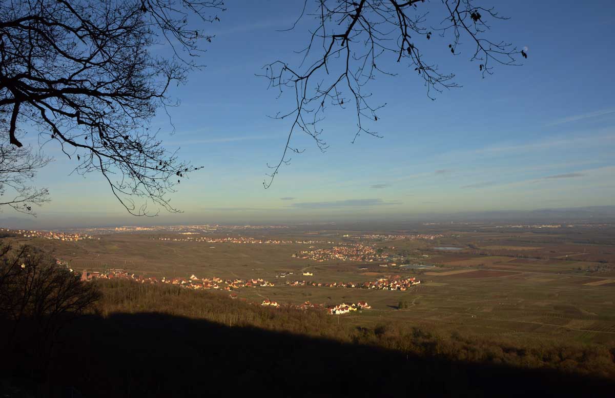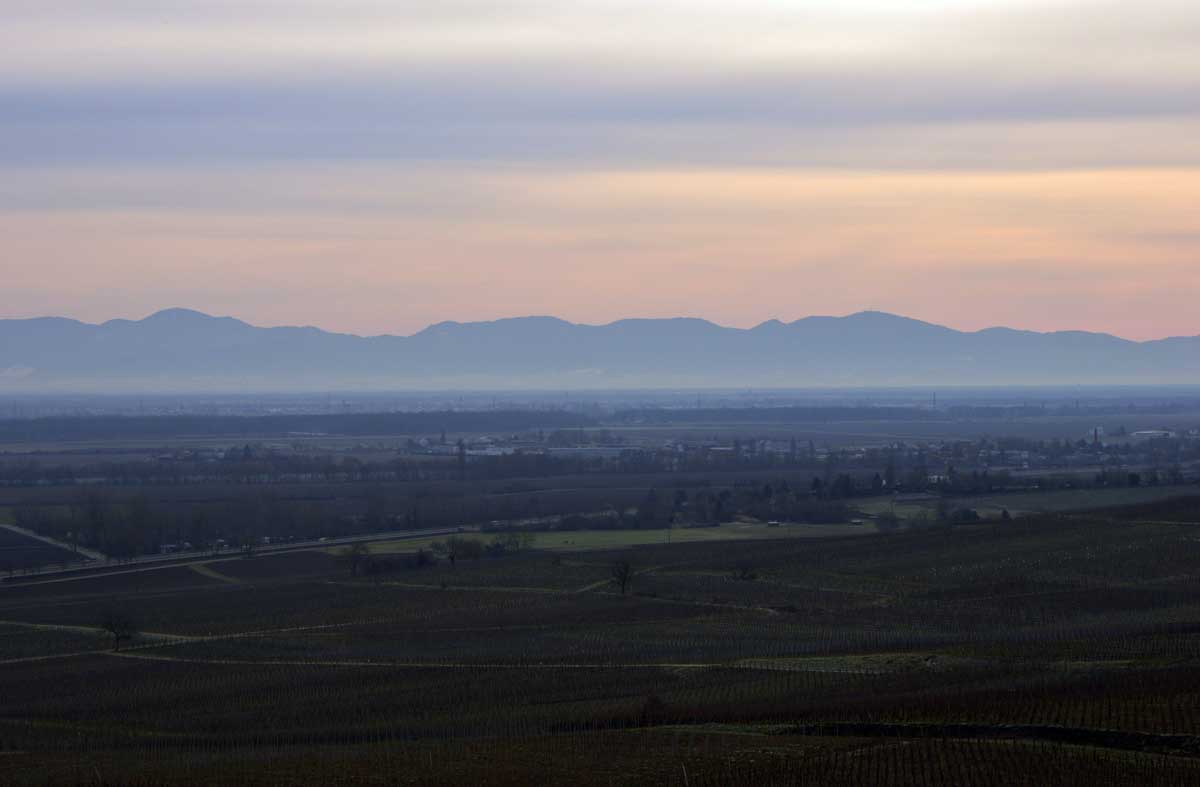 Retour à Pfaffenheim par les vignes qui roupillaient toujours, et face à la Forêt-Noire qui comme d’habitude, était plutôt bleue dans la lumière déclinante de cette très belle journée hivernale. T’as vu cette belle phrase finale ?