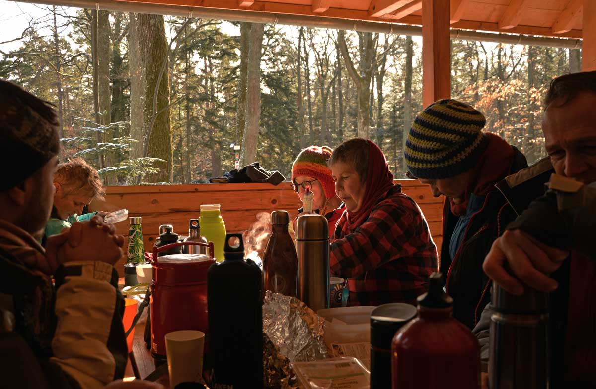 Déjeuner à l’abri du Heiliger Baum à priori posé là en 2020. Aucun imbécile n’a encore eu le temps d’y graver dans le bois le fait qu’il se trouvait là à telle date. Pourvu que ça dure.