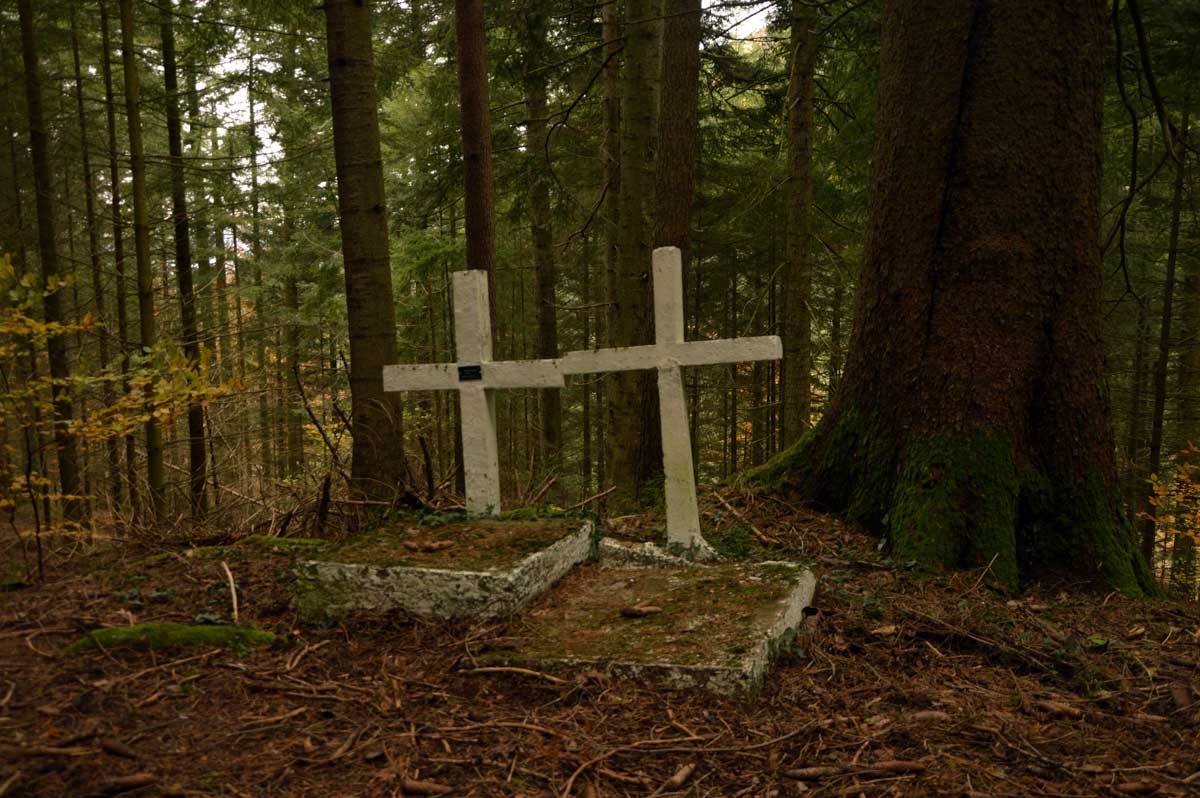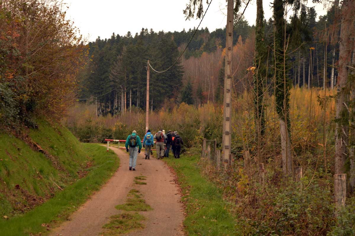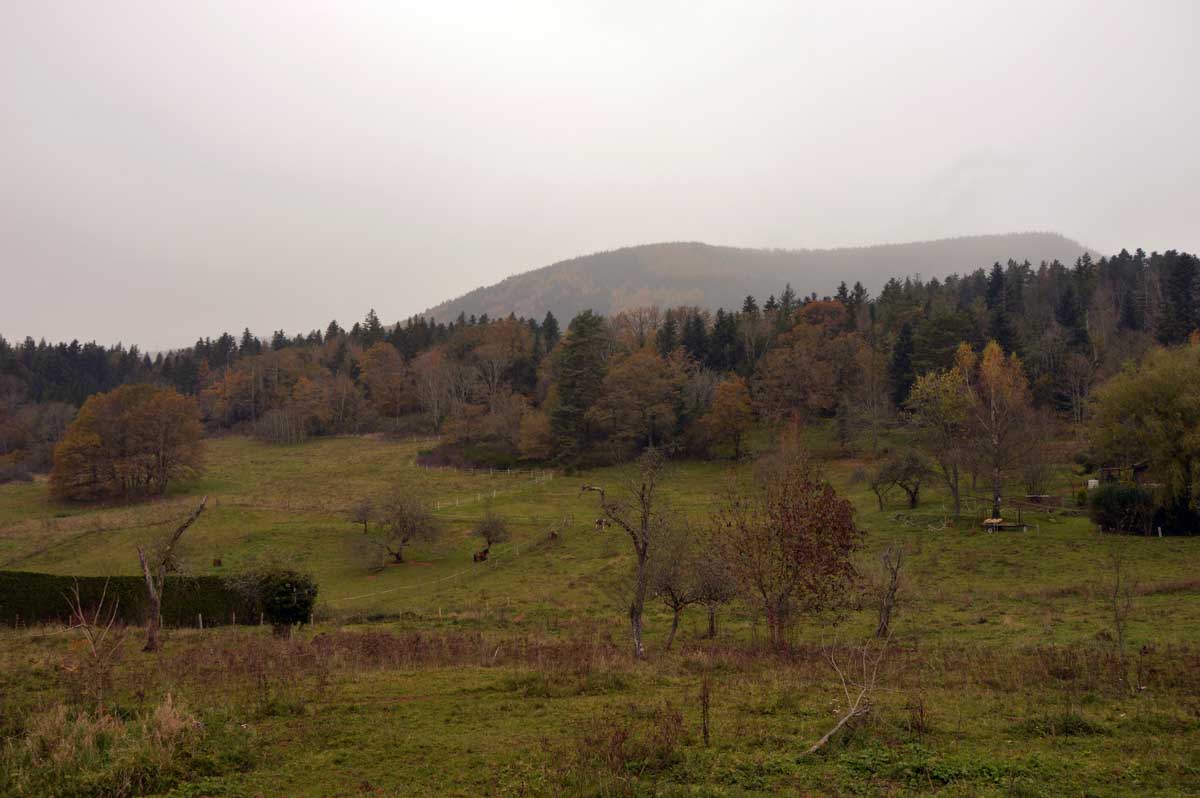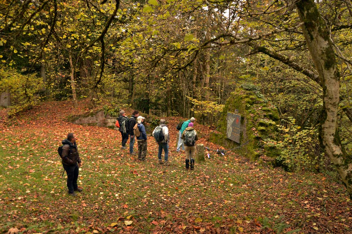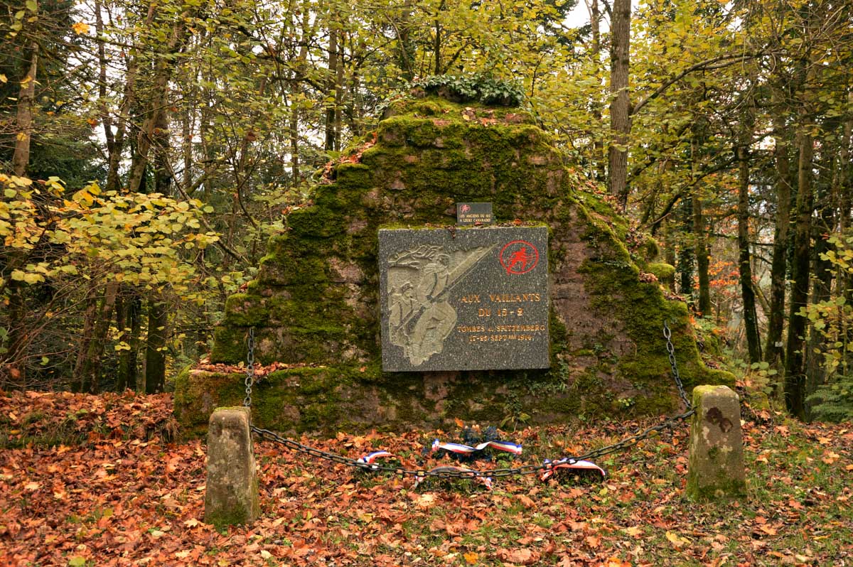 Direction le Spitzemberg, à 641 mètres d’altitude, conquis par les Français le 20 septembre 1914, donc vers le début de la Première Guerre Mondiale, et ils tiendront le sommet jusqu’au bout. Tu peux aller vérifier, y’a une plaque commémorative, discute pas.