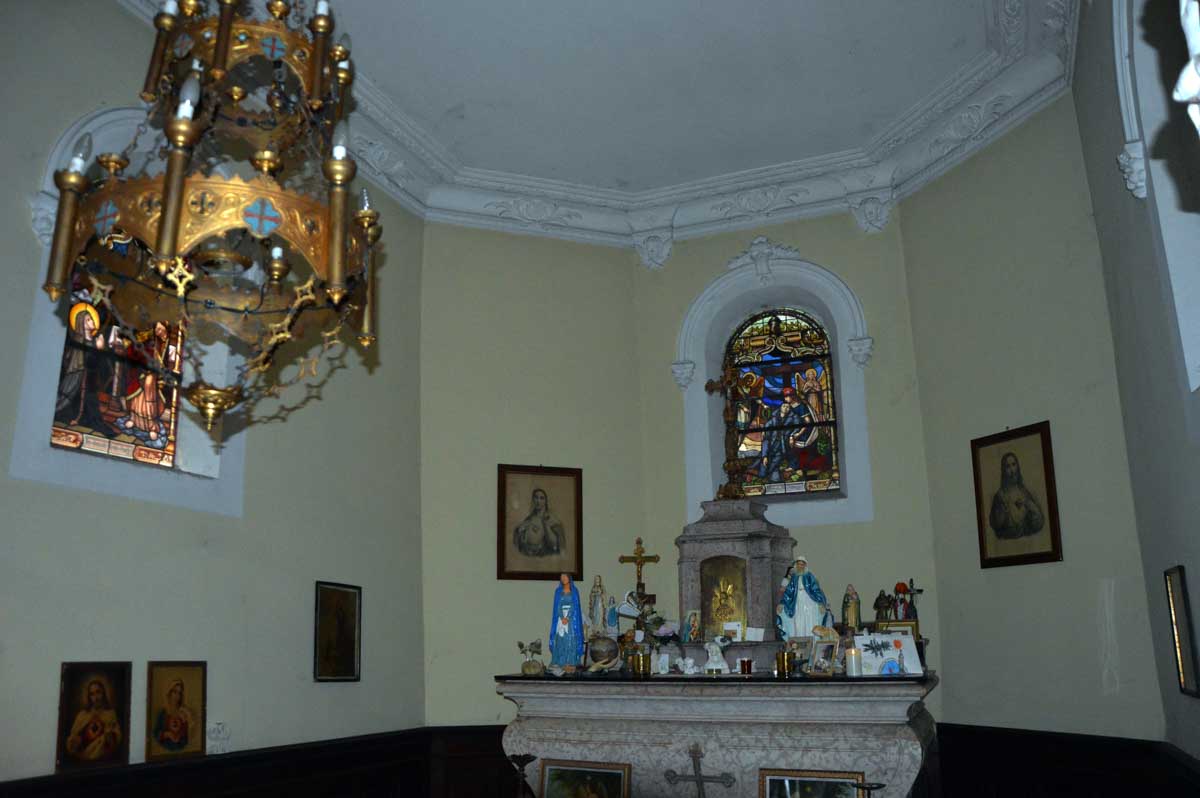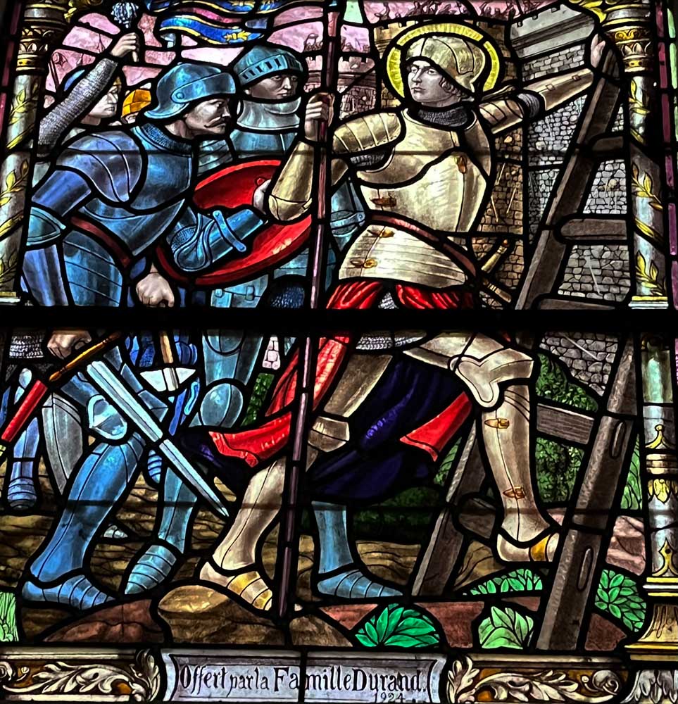 Puis la chapelle Sainte-Claire avec ses jolis vitraux. Dont celui du chœur qui évoque 14/18. Eh oui, située en plein dans les lignes françaises, la chapelle a été pratiquement détruite durant la Première Guerre Mondiale et du coup, quand on l’a reconstruite, on y a incorporé un vitrail spécial.