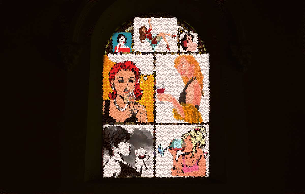 Puis quand même, nous passâmes comme annoncé plus haut par la chapelle de Sainte-Karina-Iris (dont je rappelle qu’elle est une martyre du 7ème siècle) où nous admirâmes le fameux vitrail exécuté par Saint-Emilion qui le réalisa lors d’une sombre nuit de la Saint-Georges (là, vaut mieux que tu relises pour tout capter).