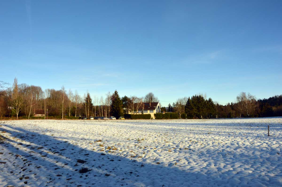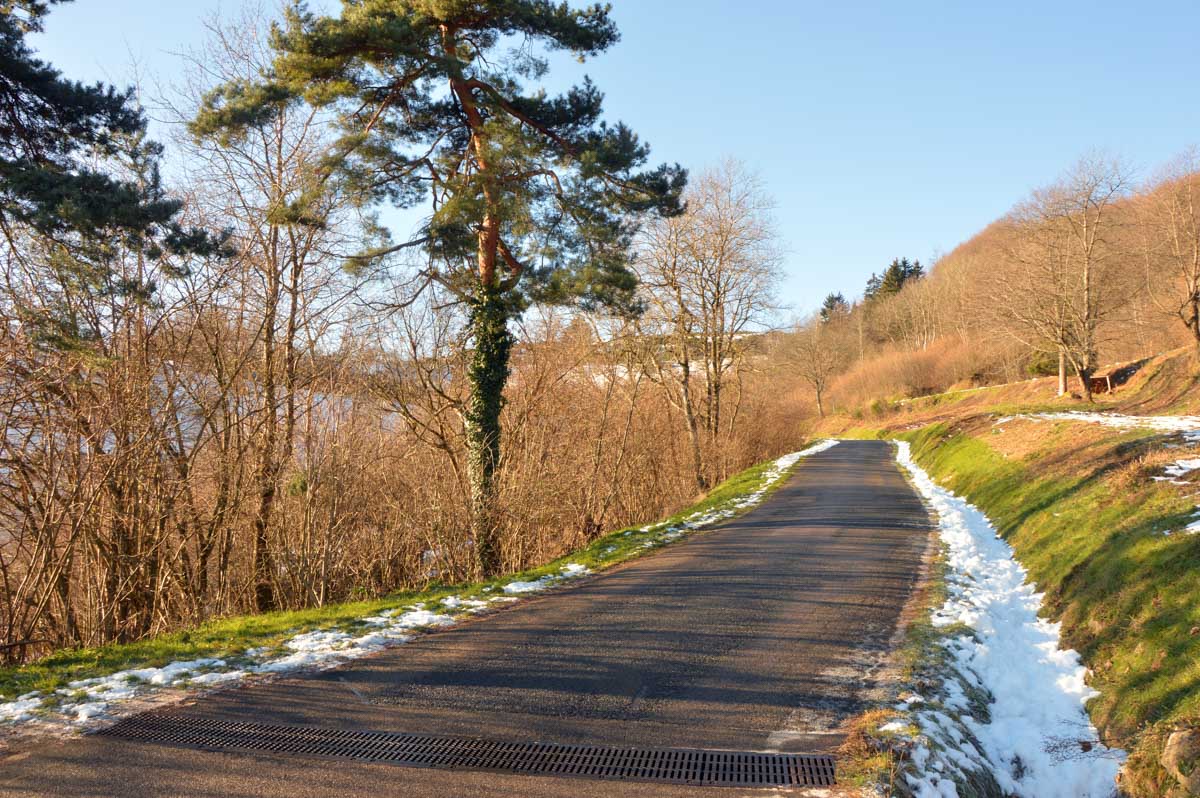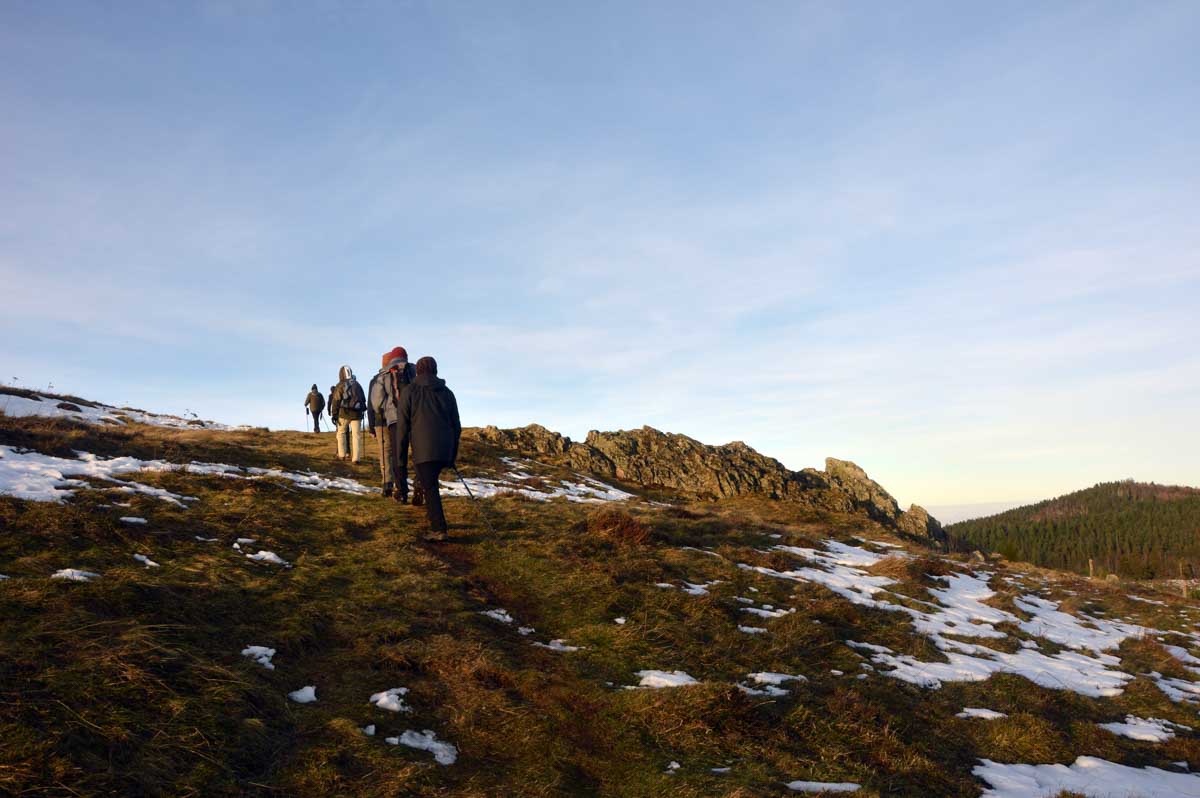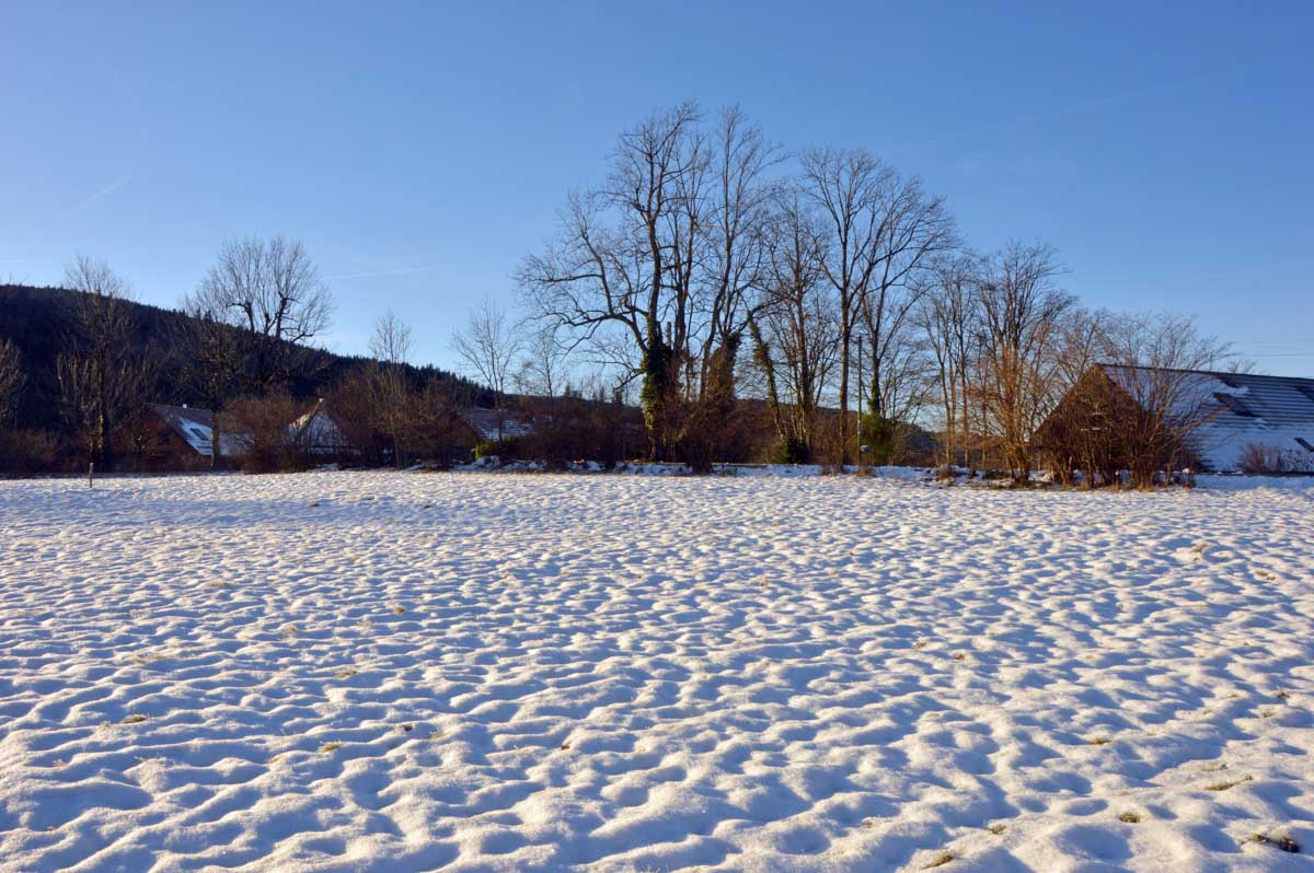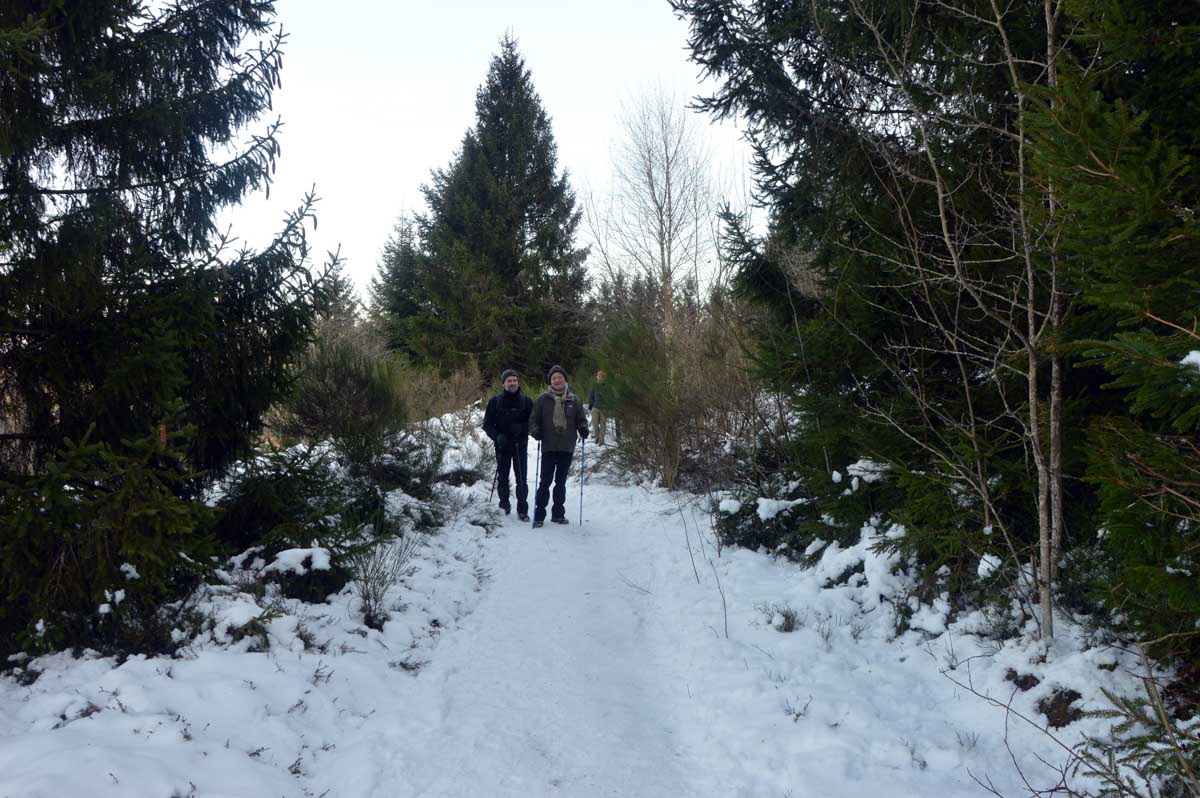 Direction Grendelbruch avant une marche dans l’ombre de la forêt. Encore une belle idée ça, marcher à l’ombre dans ce froid, sous les arbres gelés ! M’enfin bon, je râle pas, je me retiens, tout va bien. Finalement, c’était pas si irréfléchi que ça puisque comme on contournait un sommet, on a fini par se retrouver sur la face sud et donc un peu moins au froid.