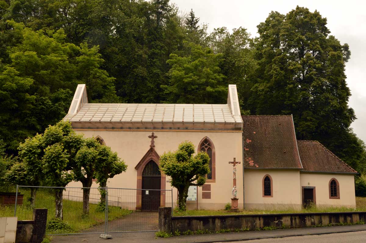 Faut que je te parle d’Elisabeth Eppinger, dite la Mystique de Niederbronn. Née dans une famille de paysans en 1815 et de santé fragile, trouvant en Dieu la réponse à ses souffrances, elle a fini par créer le Couvent d’Oberbronn à savoir les Sœurs du Très Saint Sauveur, en 1849, avant d’en faire une sorte de multinationale de la religion, avec des succursales dans le monde entier. Injustement méconnue, moi je lui dis chapeau madame. Enfin ma Sœur ! Dans le couvent, j’ai vu des vitraux abstraits mais très beaux, et dans l’église Saint-Michel de Reichshoffen, nous bouclâmes la boucle avec le vitrail représentant la béatifiée. J’ai même vu le calvaire sous lequel elle a trouvé sa voie. Sérieux, moi j’admire ce genre de destins.