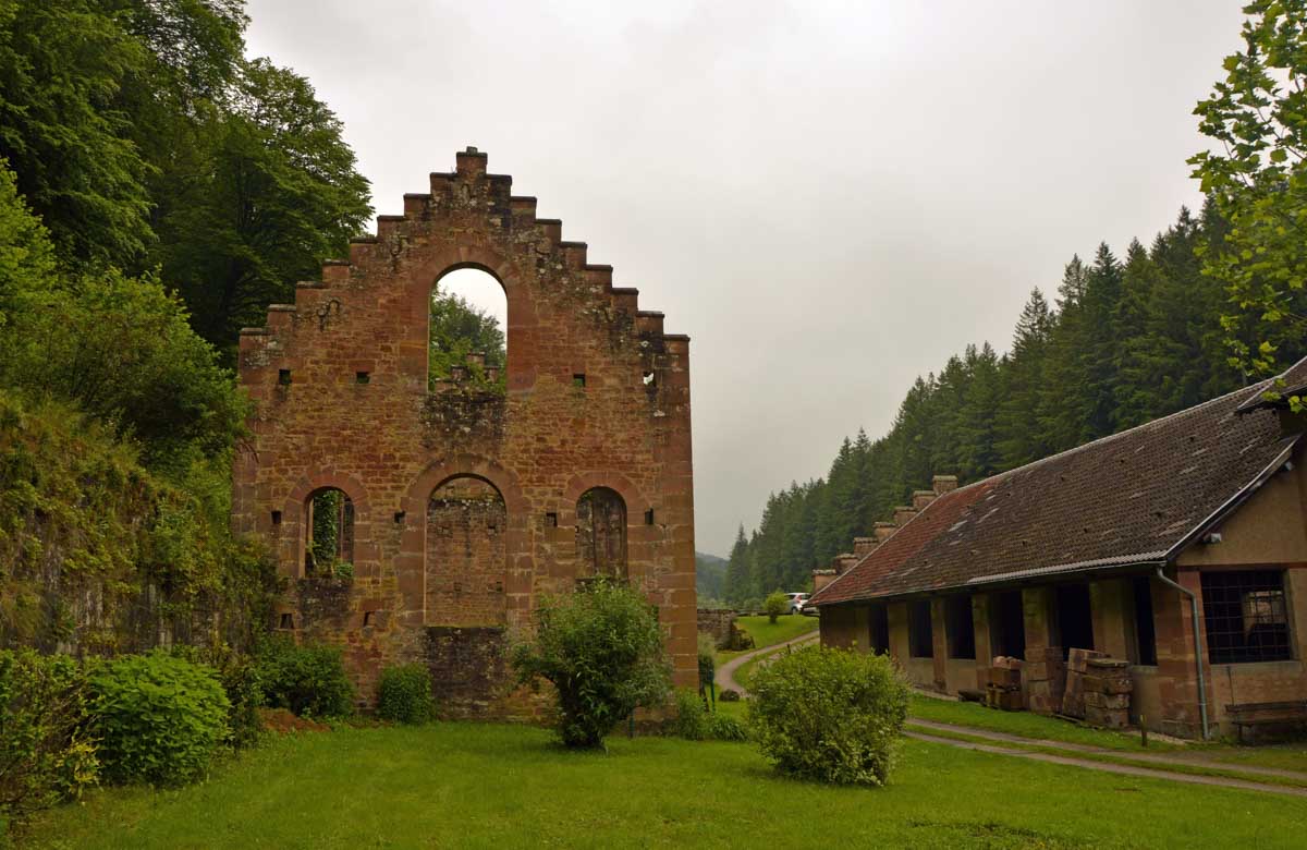 Rassure-toi mon canard, après la forêt, nous déjeunâmes à l’ancienne forge De Dietrich et là, c’est vraiment une ruine. J’eus été dépaysée sinon ! Y’a aussi la passe à poissons du Rauschenwasser pour permettre aux poissons de contourner la cascade. Mais alors : pourquoi est-ce qu’ils ont mis une cascade ? Un peu comme de l’œuf ou de la poule, qui était là en premier ? Je te donne la réponse en première mondiale : le coq ! Et toc !