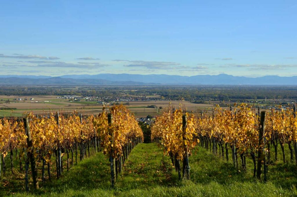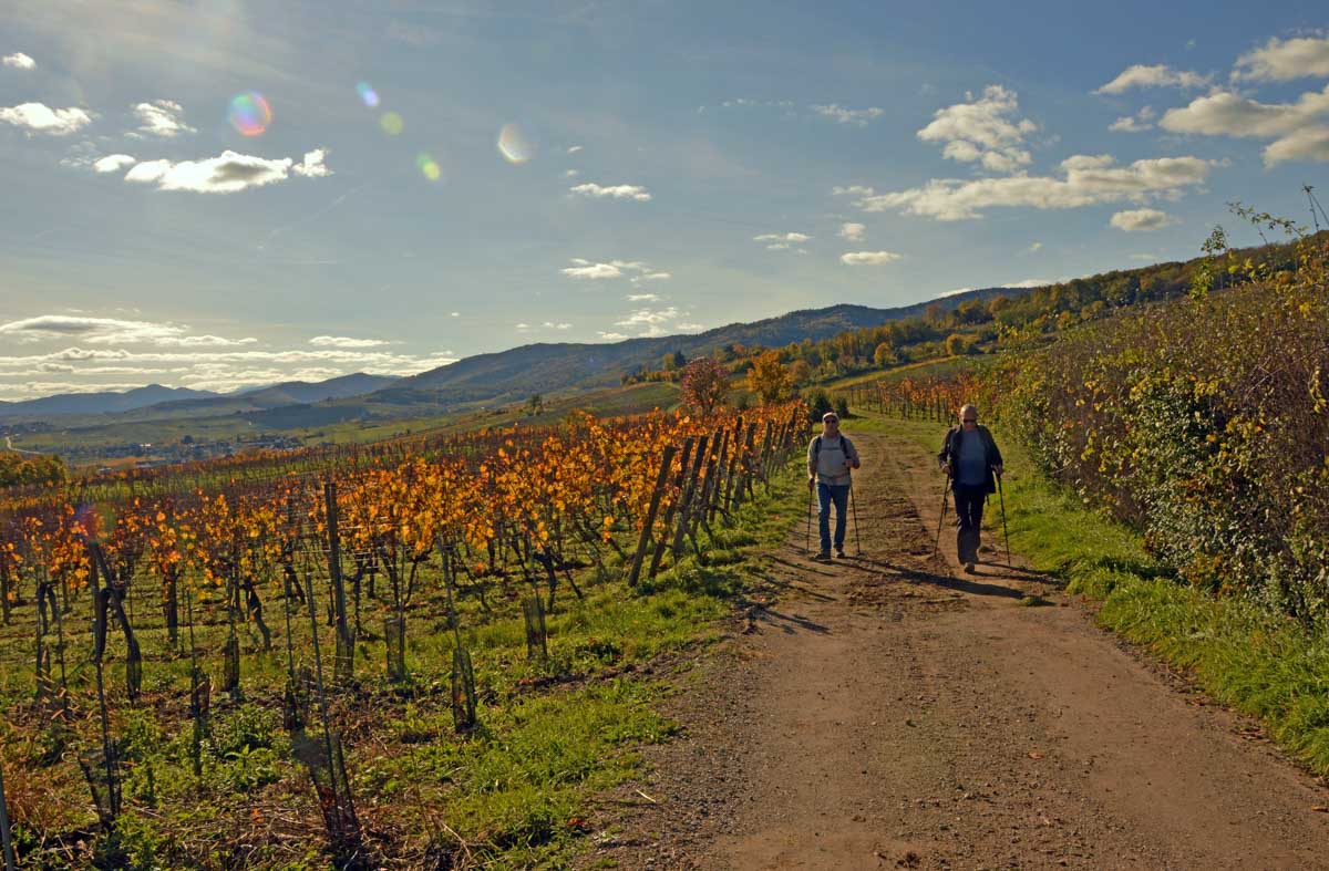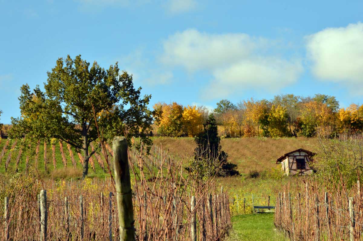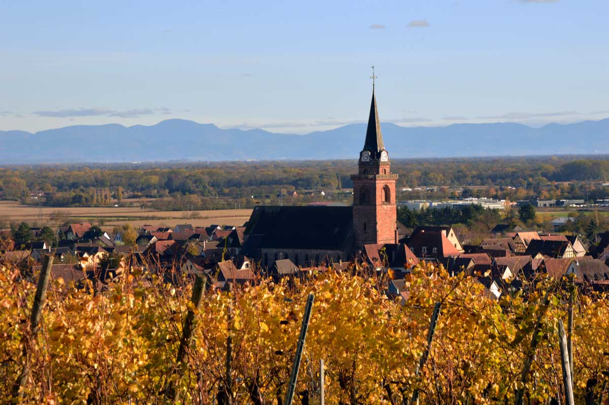 On pouvait partir de la Cave de Ribeauvillé tiens, ça eut été classe, ça. Ou alors le Domaine Ostermann, la Maison Trimbach, le Domaine Sipp, tu vois, enfin un lieu qui parle, un endroit en rapport avec la vigne automnale, quelque chose qui évoque les vendanges, le bon vin blanc bien de chez nous, on est dans le 68, diantre !