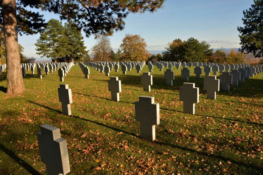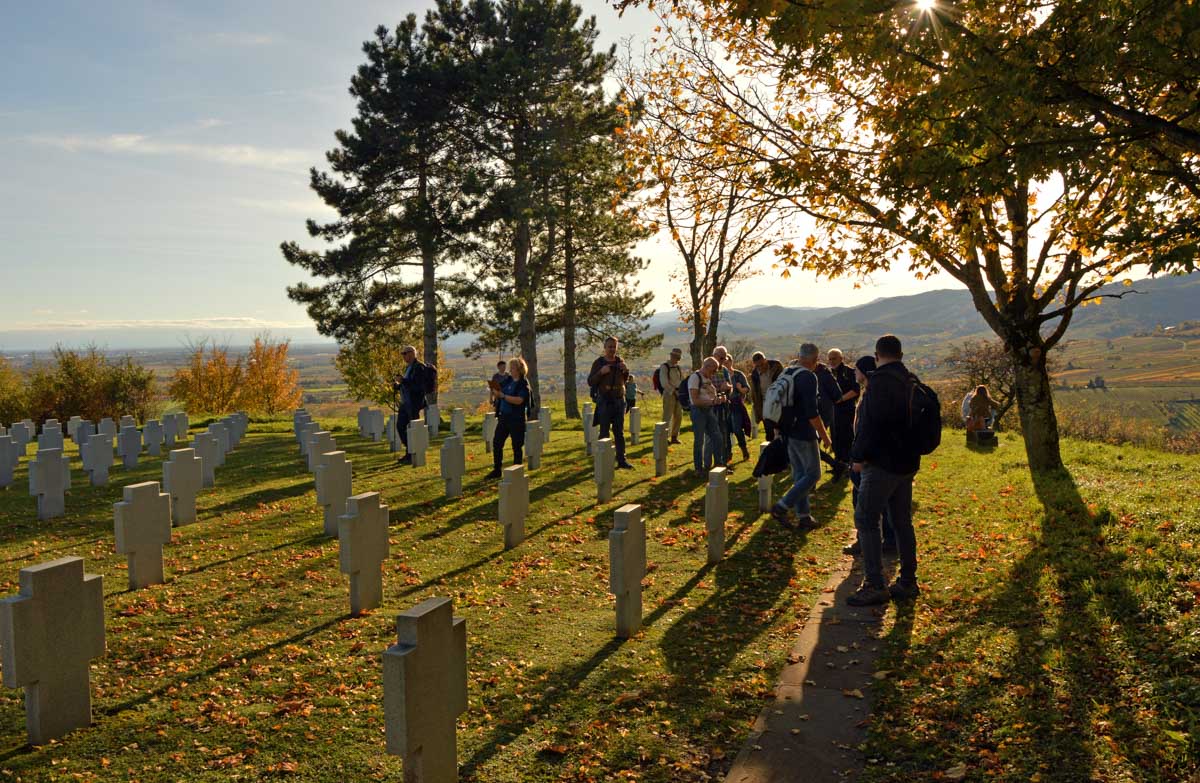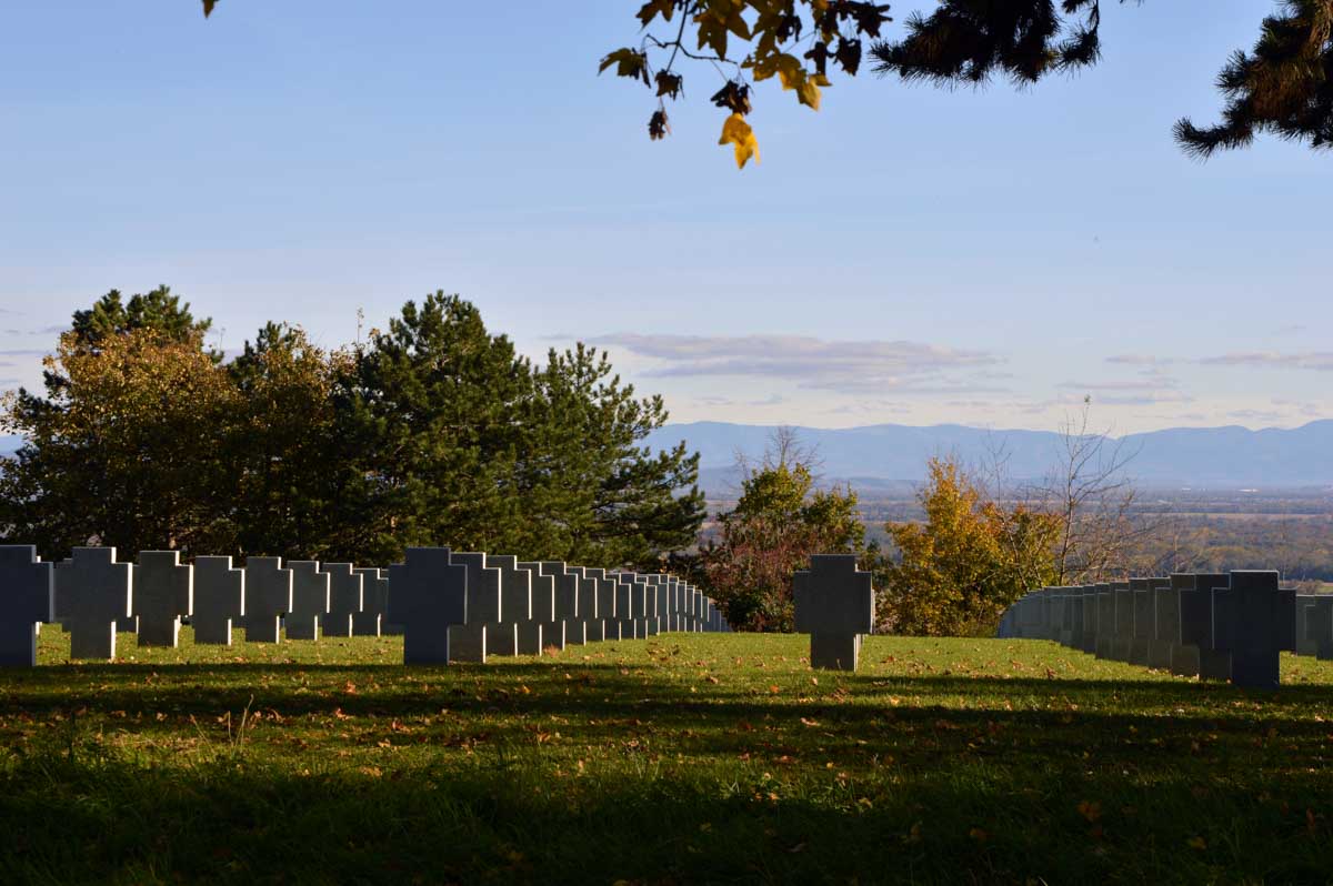 Et puis à propos de 1939/45, nous grimpâmes, enfin nous montâmes légèrement, au Glasberg et son cimetière allemand avec les tombes de 5300 soldats tombés pour beaucoup fin 1944 ou début 1945 dans les combats de la poche de Colmar. Quelle tristesse, je te dis.