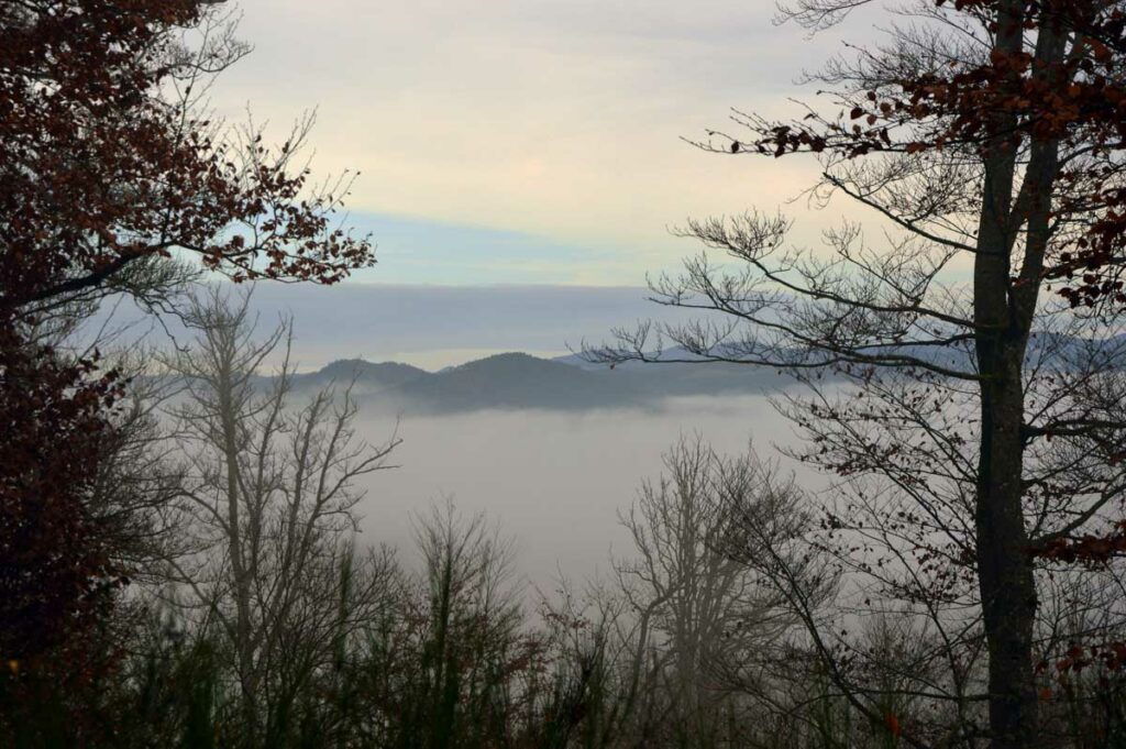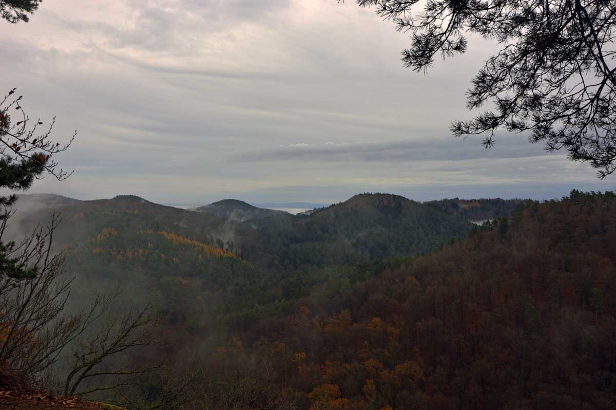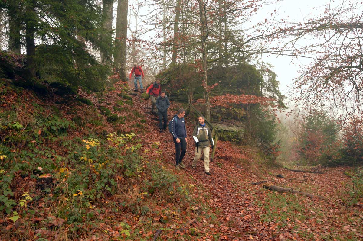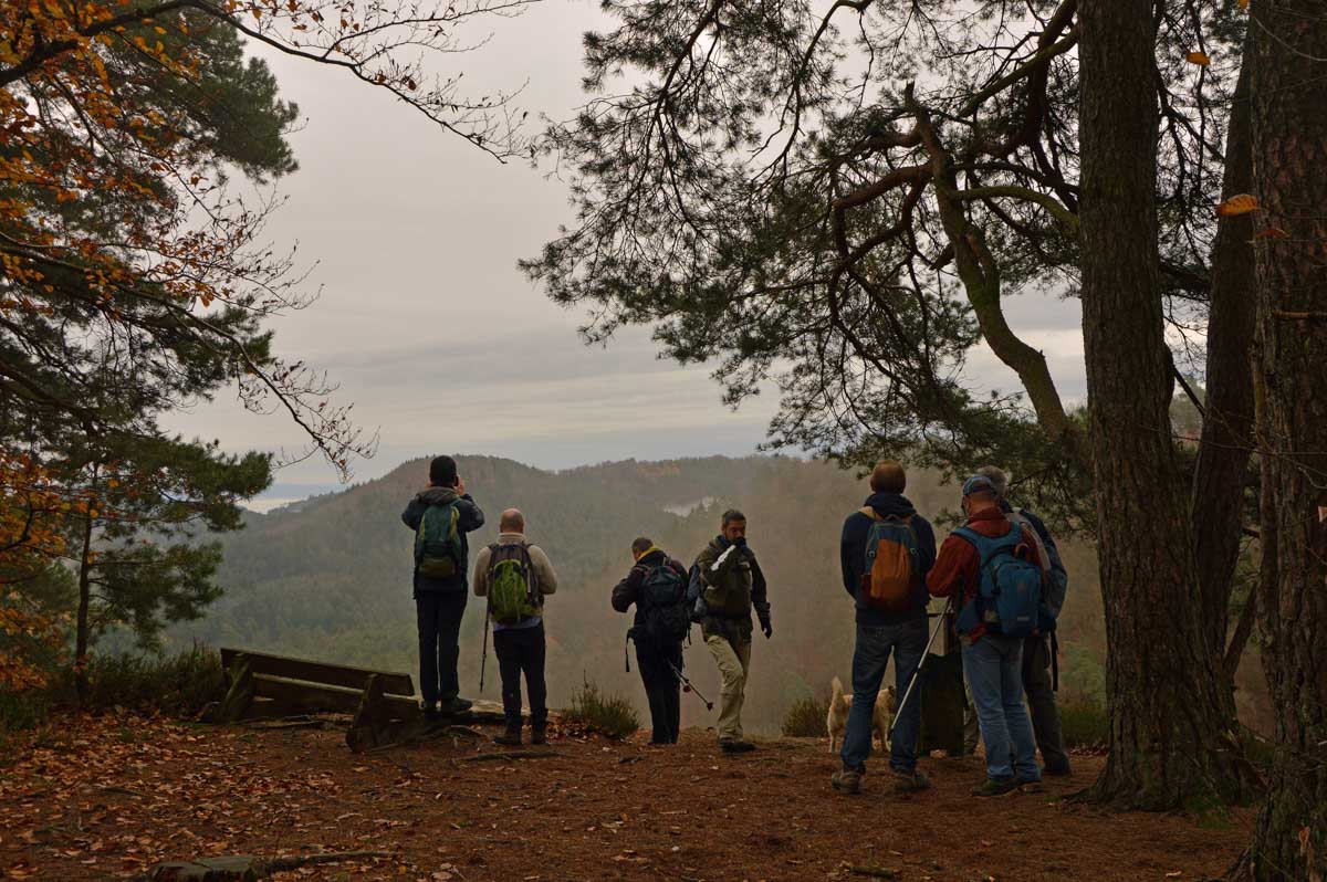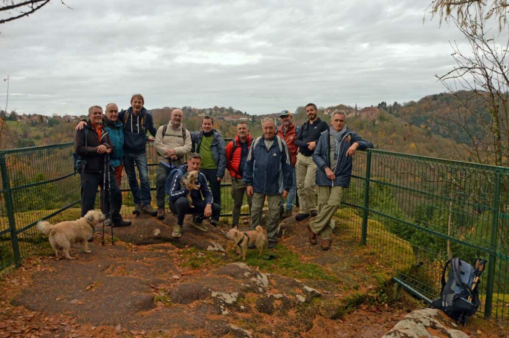 Une rando démarrée dans le brouillard qui a ensuite révélé des points de vue sur les environs de La Petite Pierre, avec notamment le Rocher des Païens et le Rocher Blanc, avant un retour dans le village pour gâteaux et café au chaud !