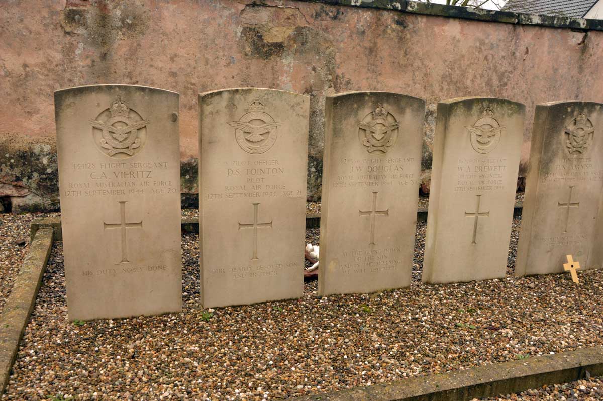 A Sessenheim se trouve le carré du cimetière militaire du Commonwealth ou reposent les 15 aviateurs alliés tués lors du crash du 12 septembre 1944. Et plus loin, un panneau d’informations signale le lieu.