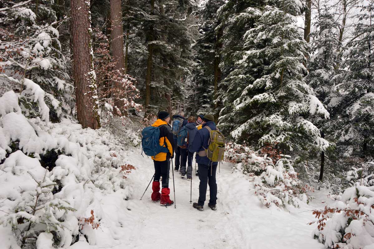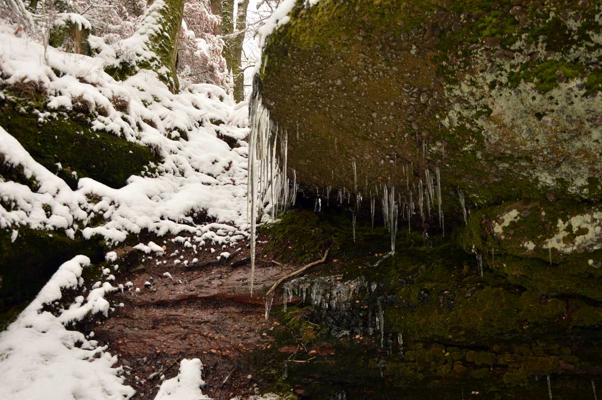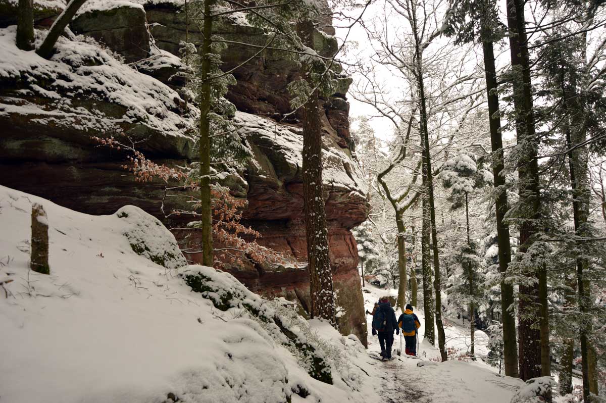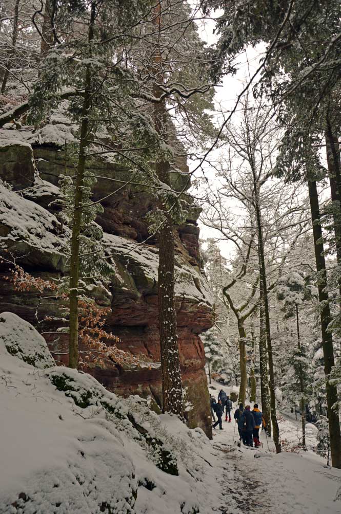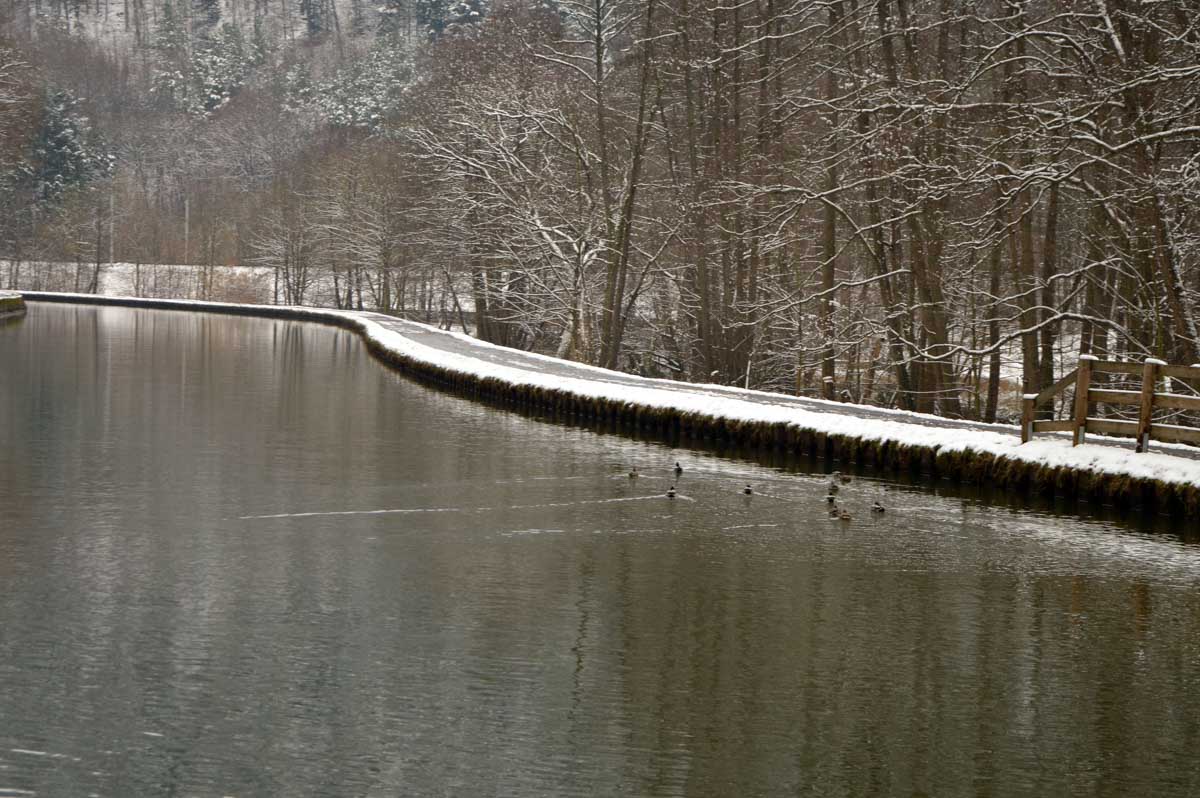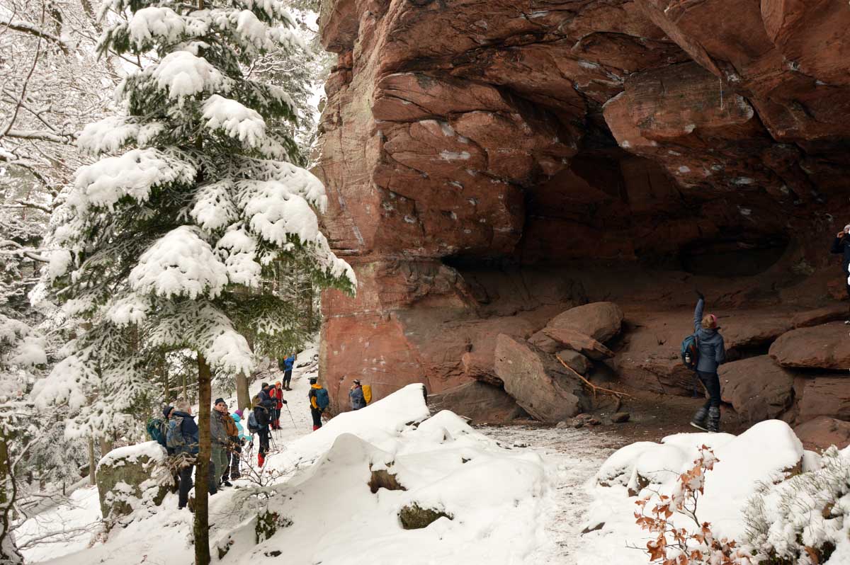 De quoi je ne vous ai pas parlé ? Ah oui, de la grotte. Celle du Brotsch. Sous le rocher du Brotsch. Dans une ambiance de Brotsch avec une météo de Brotsch. La grotte est hantée par le fantôme d’une aubergiste de Saint-Gall mais comme il n’y avait pas de vent, on n’a pas… enfin nous n’entendîmes pas ses cris. Et enfin, on a long… nous pûmes longer le canal de la Marne au Rhin, qui donc relie la Marne au Rhin (je précise pour ceux qui poseraient la question), depuis le milieu du 19ème siècle. Drôle de lumière hivernale d’ailleurs, par ici. A ce propos justement, je vous laisse, je vais me faire un stock de souvenirs neigeux et froids, mais merveilleux, pour les ressortir au mois d’août !