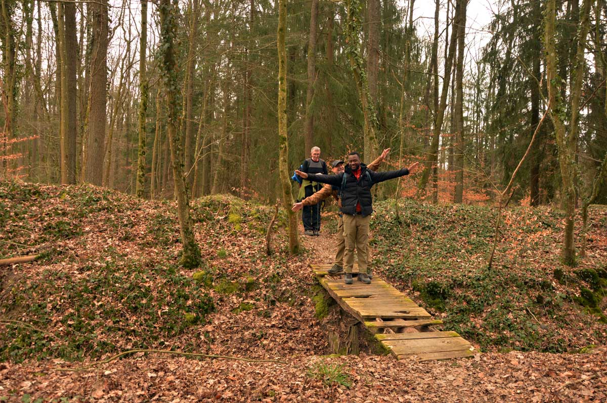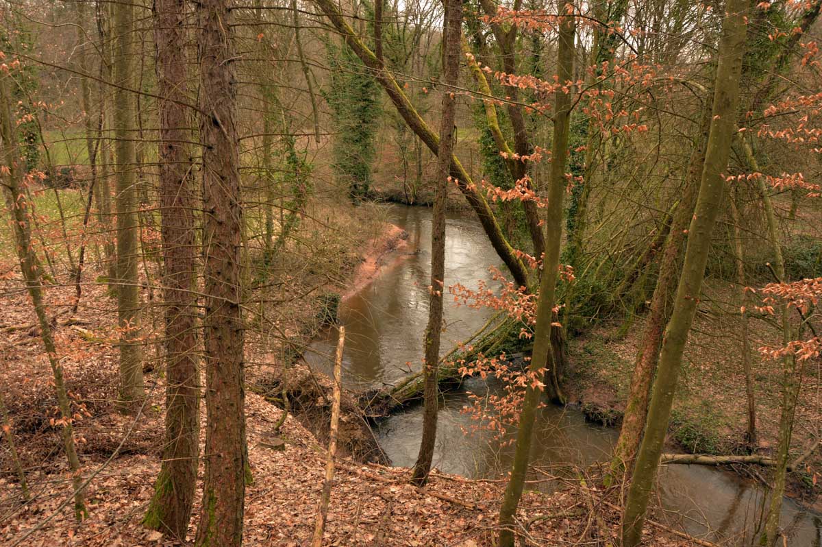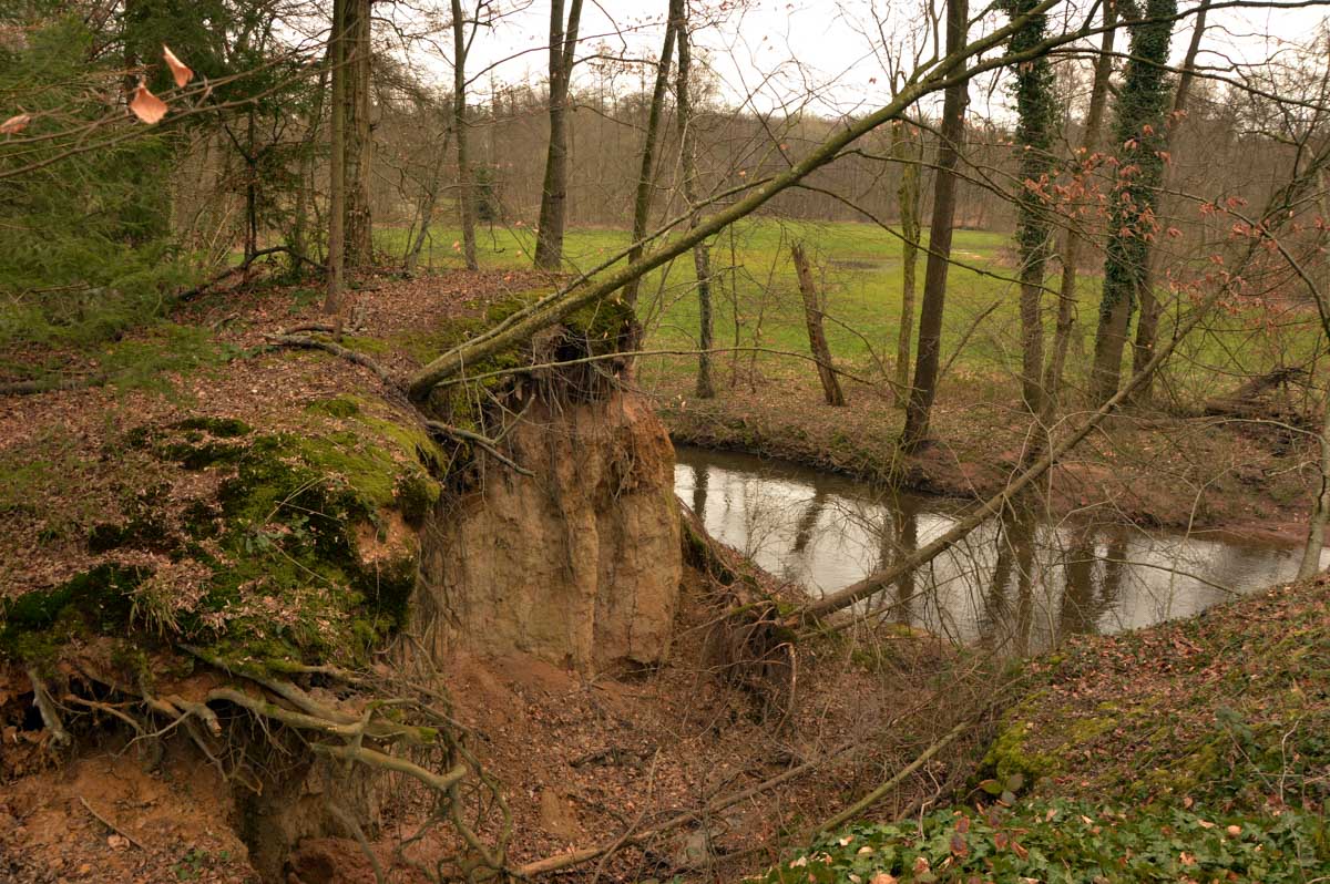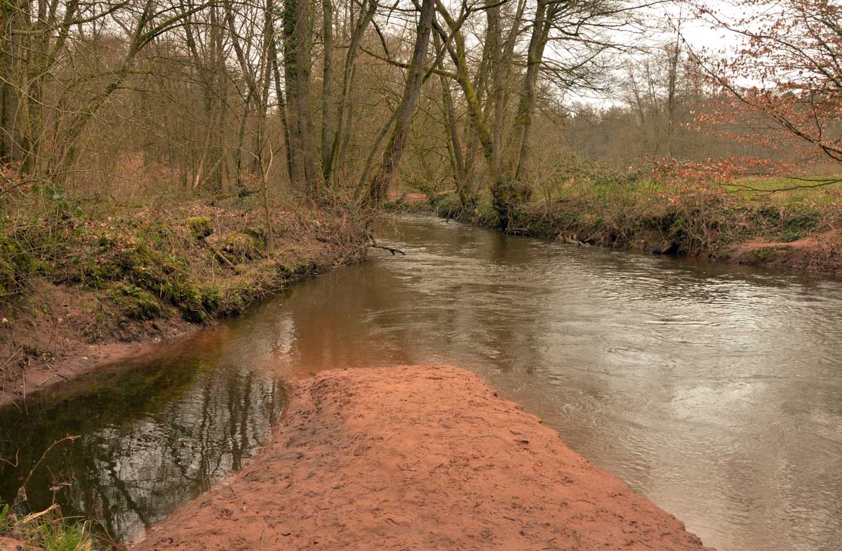 Parfois, la Lauter s’étale et forme des plages, d’autres fois elle a creusé des petits canyons. Aussi, je m’attendais à voir surgir un Indien aussi sauvage que la rivière, le torse luisant, les peintures viriles et les plumes flamboyantes, m’embarquant telle une jeune pionnière de l’Ouest, innocente et terrifiée (encore que…) sur son fier étalon… Eh du calme Coyote-En-Rut, tu pues le cheval ! Moi je continue à pied. Et donc nous voilà à longer la Lauter jusqu’au Moulin de Bienwald. Moi je m’imaginais un truc avec des ailes qui tournent. Que dalle ! C’est un moulin à eau. Belle bâtisse quand même, dont j’aurais bien fait mon château. M’y serais installée avec Coyote-en-Rut et vas-y la vie de rentière débridée (donc sans le cheval…).