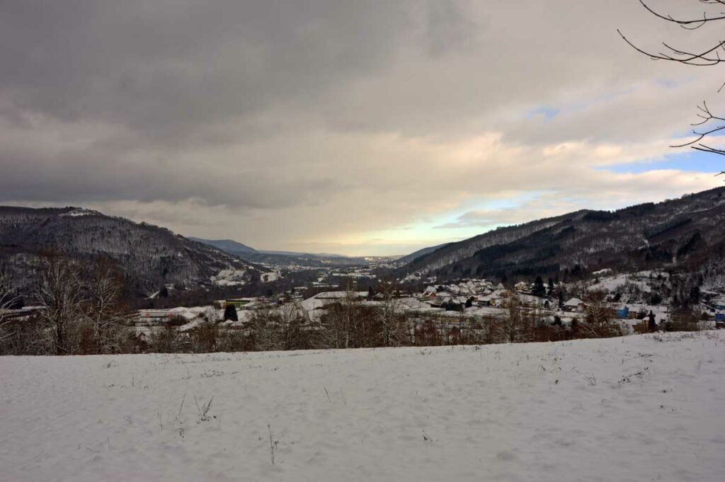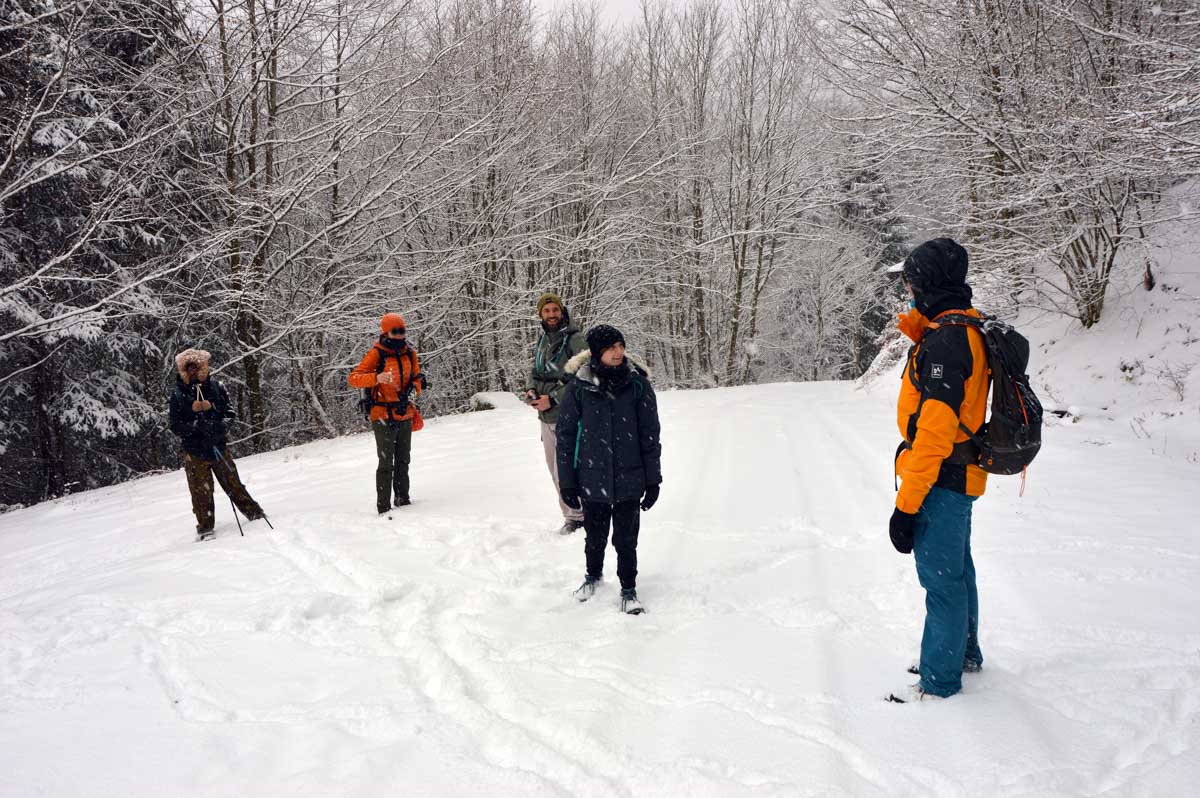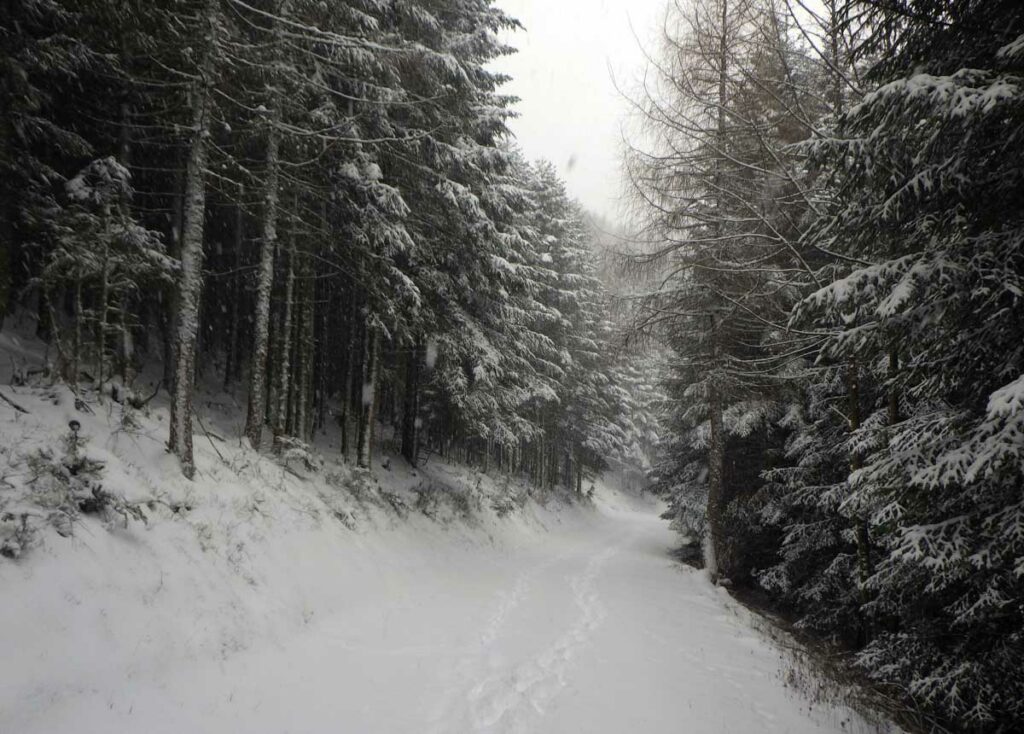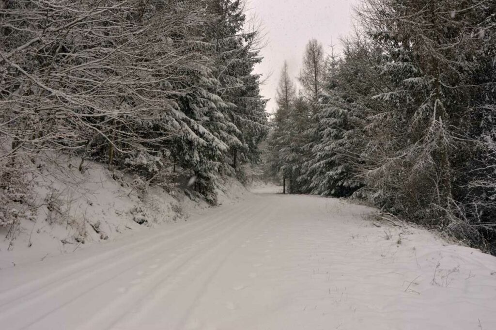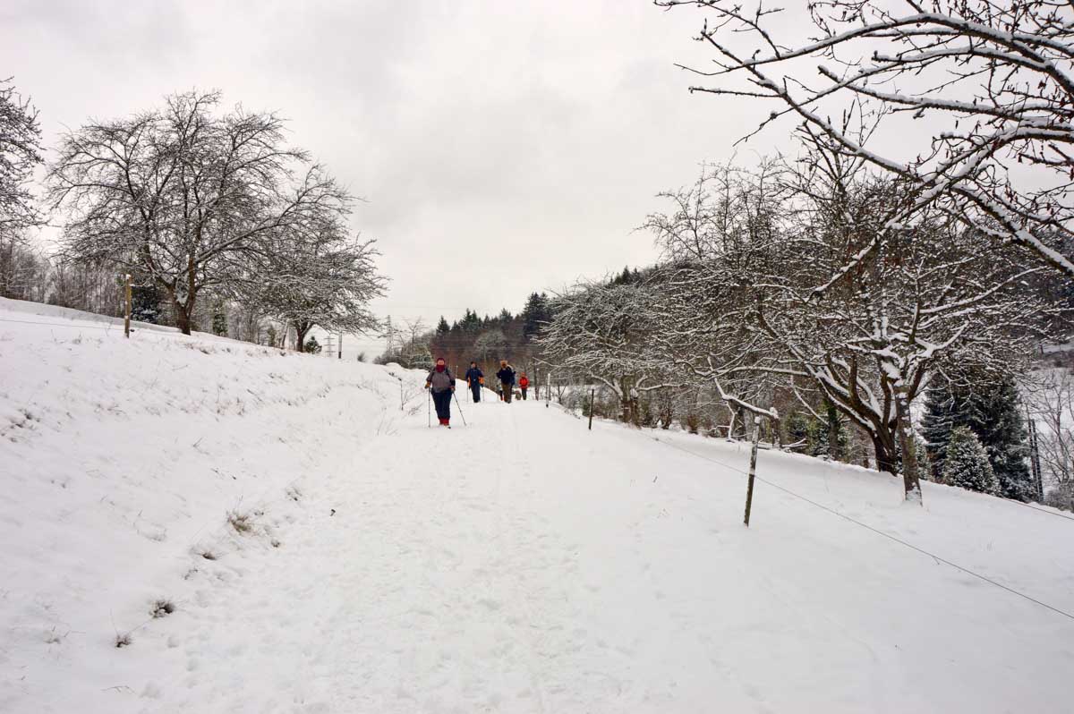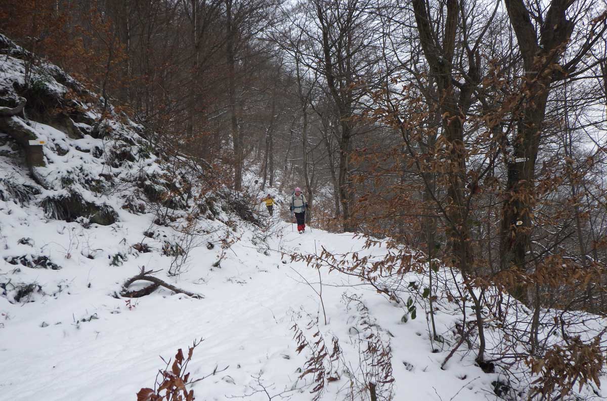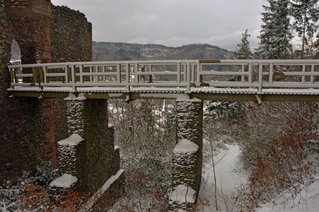 Montée au château et à la Vierge Blanche de Schirmeck avant un tour par Barembach et une montée vers le GR5 dans la neige devenue tempête. Mais déjeuner au sec sous abri, avant de poursuivre la randonnée dans la neige. Que du bonheur !