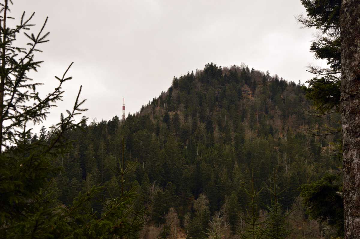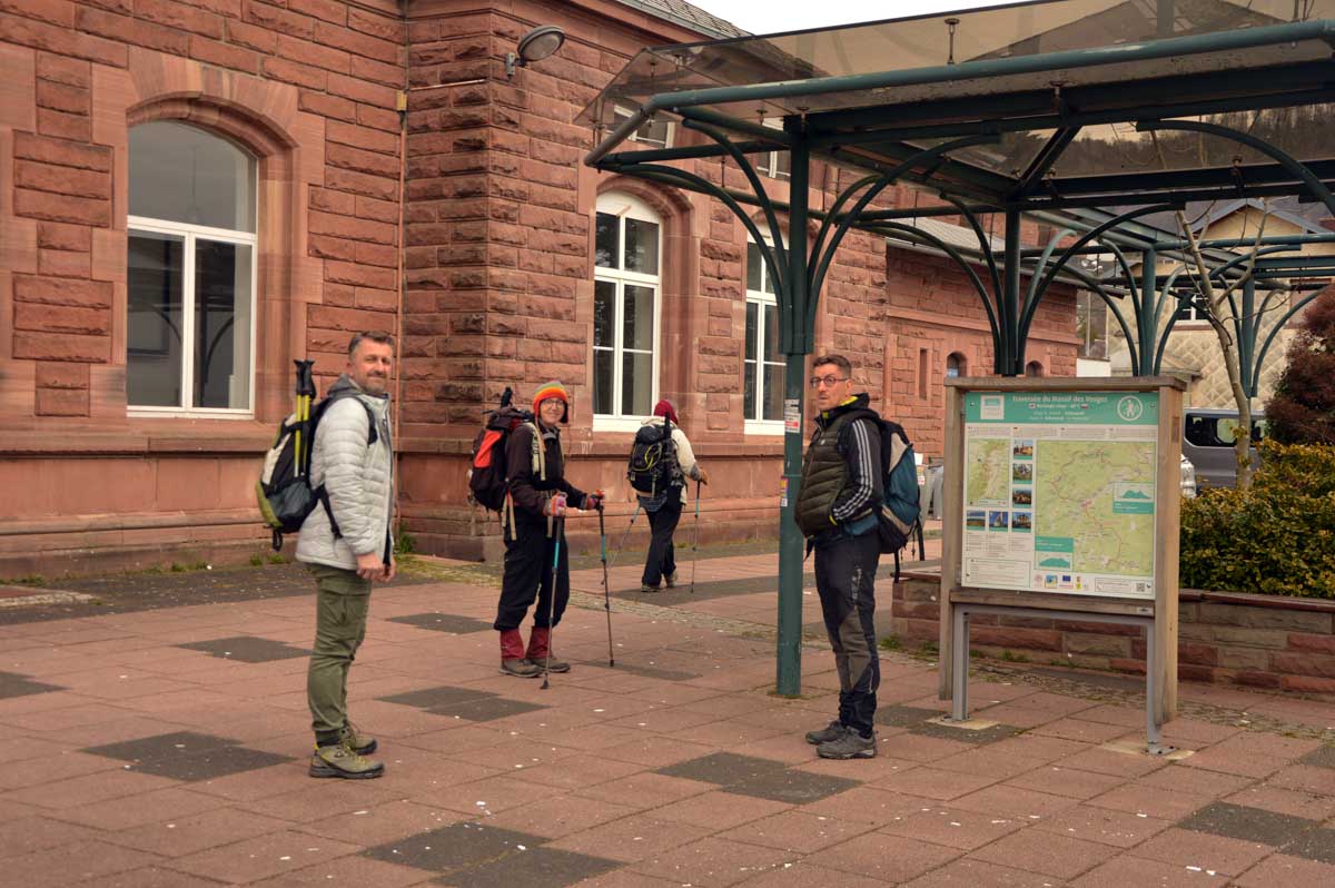 « A nous de vous faire préférer le train », qu’ils disaient à la SNCF. Nous avons tout prévu pour utiliser les transports en commun, aménagé le parcours et l’heure de départ de la rando depuis la gare de Schirmeck, et hop, pas de train ce matin ! Bref, « à eux de nous faire préférer la voiture » ! Peut-être que s’il y avait plus de trains et qu’ils étaient plus fiables, on le prendrait et ce serait plus écologique ? Enfin bon, nous voilà malgré tout partis à l’assaut du Grand Donon.