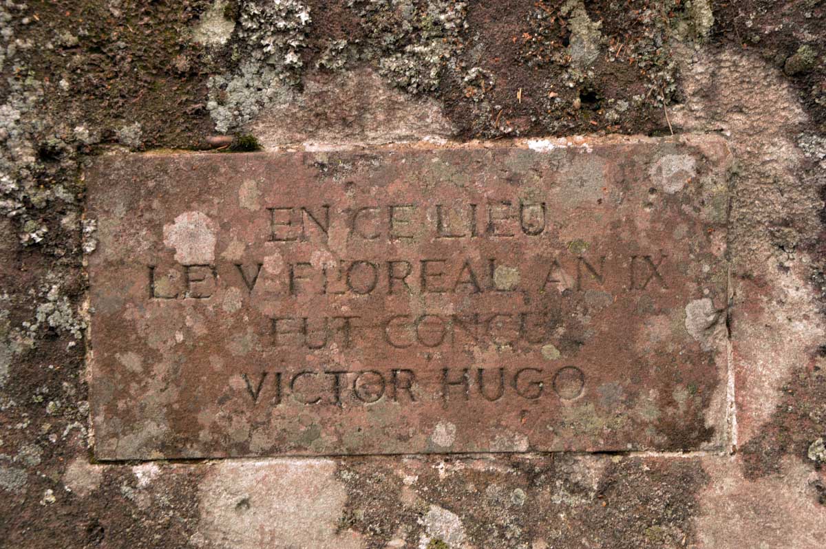 Qu’apprenons-nous là-haut ? Que Victor Hugo lui-même fut conçu au sommet du Donon le V Floreal an IX. Soit en langage normal le 25 avril 1801. Et en effet, notre Victor national est né neuf mois plus tard ! Cela dit, est-ce que moi je demanderais que soit gravée sur la vielle R6 parentale la date à laquelle j’y fut mise en chantier ? Eh non, ça ne me viendrait pas à l’idée !