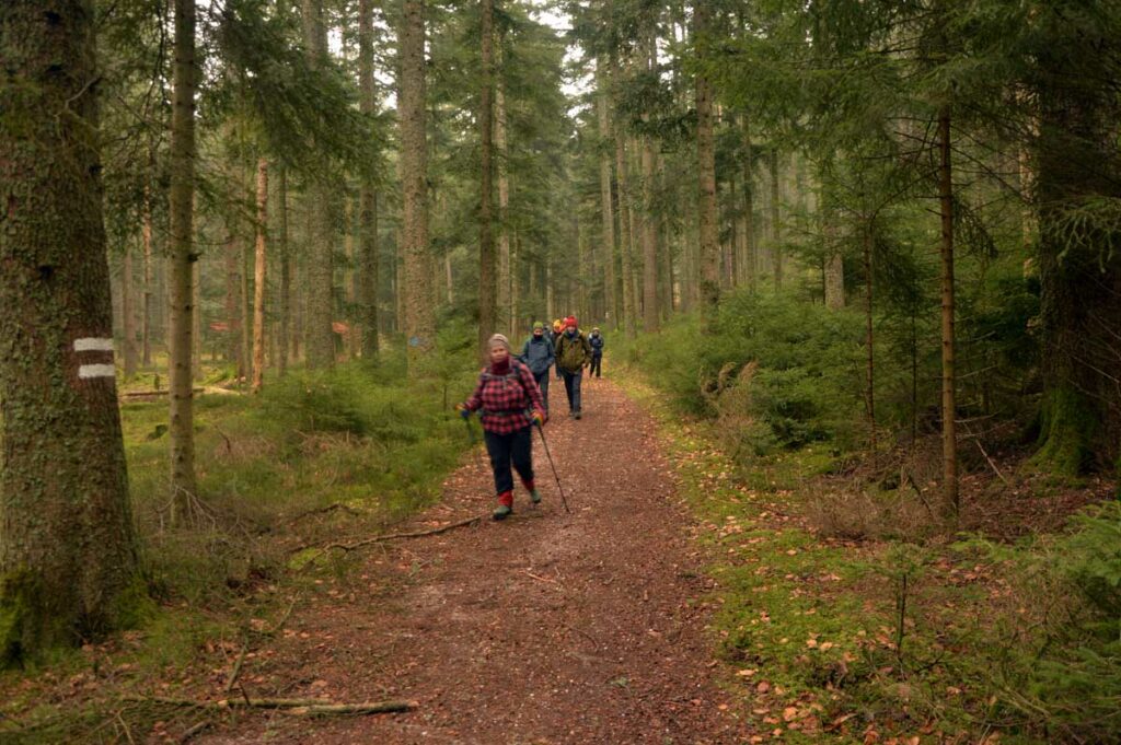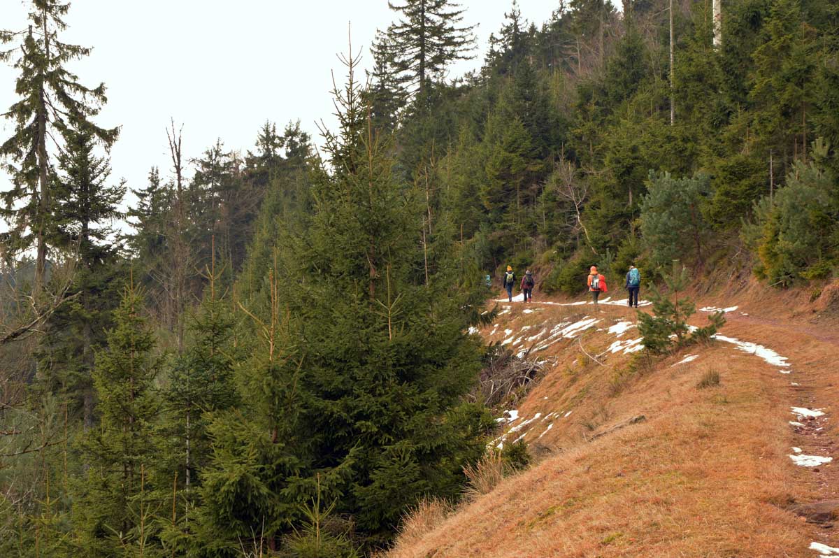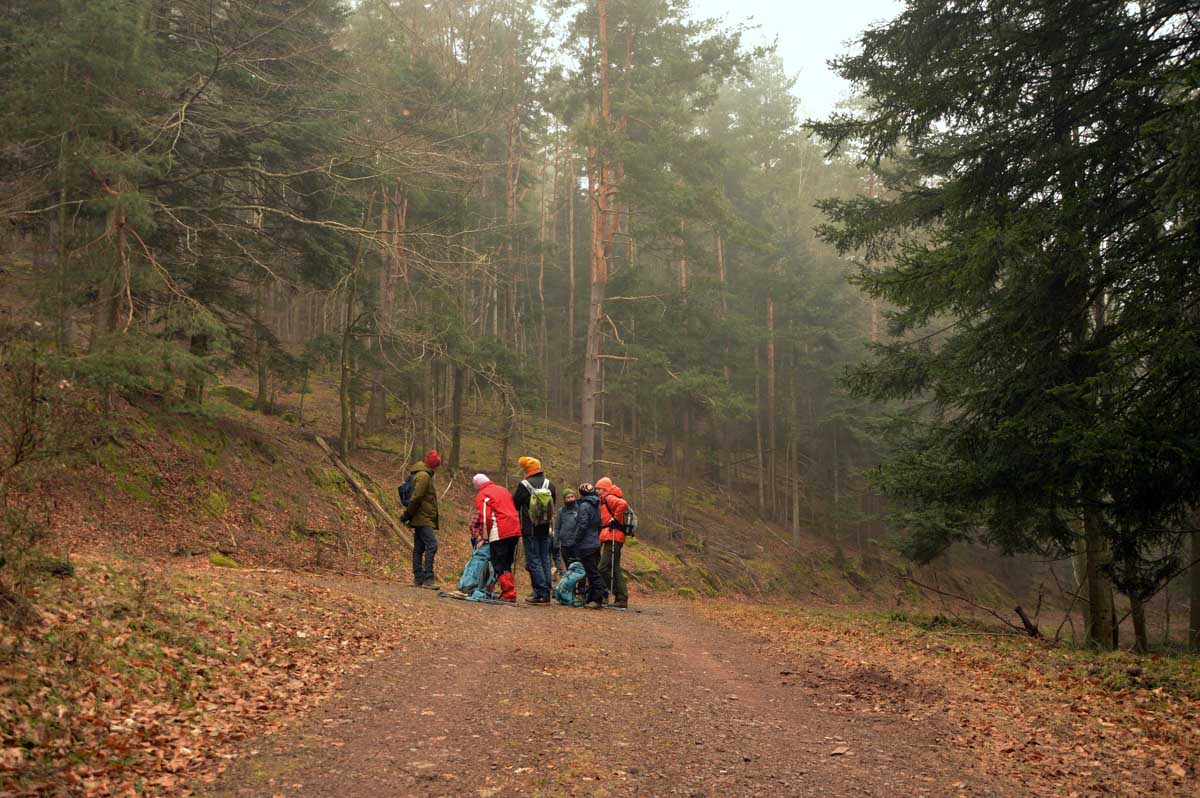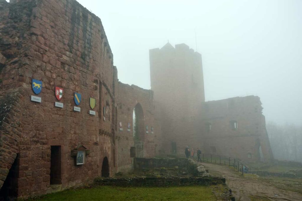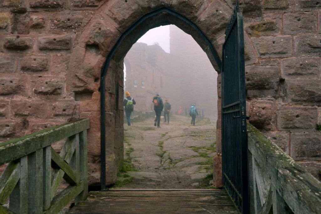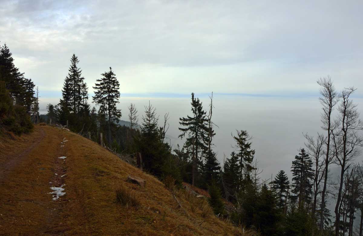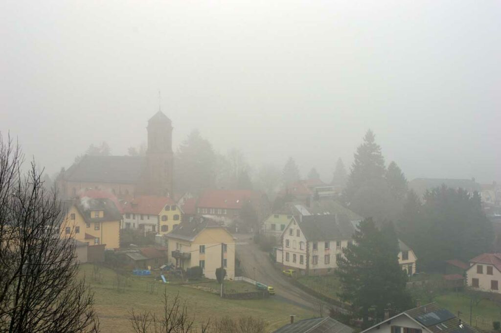 Tranquille montée vers le Lottelfels au sommet du Schneeberg à 961 mètres, pour retrouver la vue au-dessus du brouillard, puis descendre par une partie du sentier des sculptures et revenir à Wangenbour-Engenthal par son château… dans le brouillard.