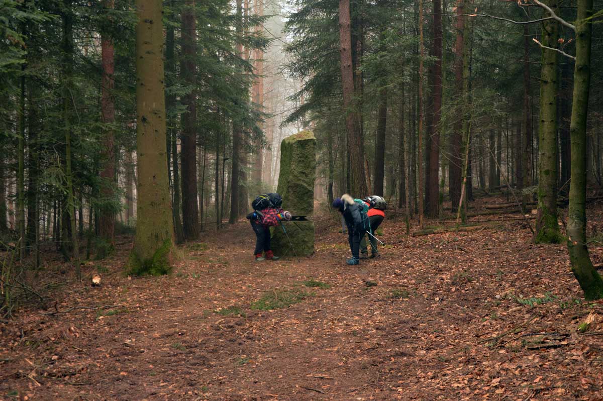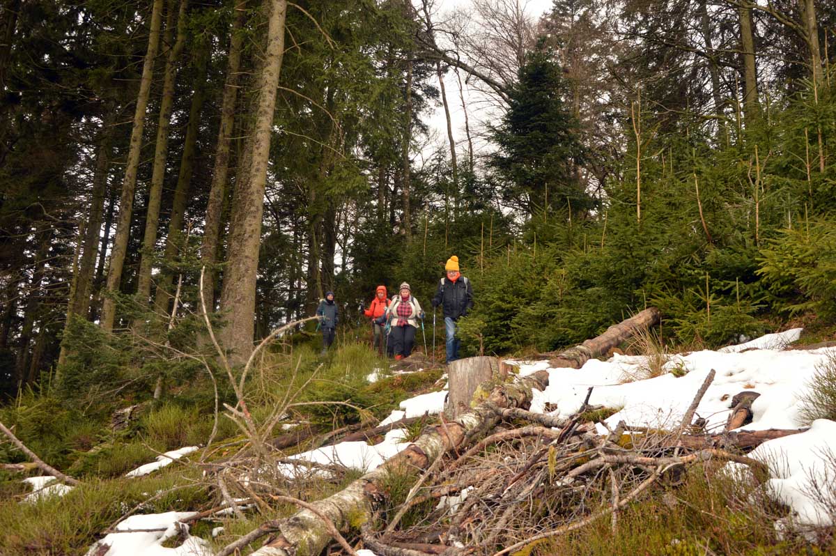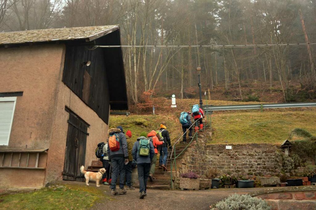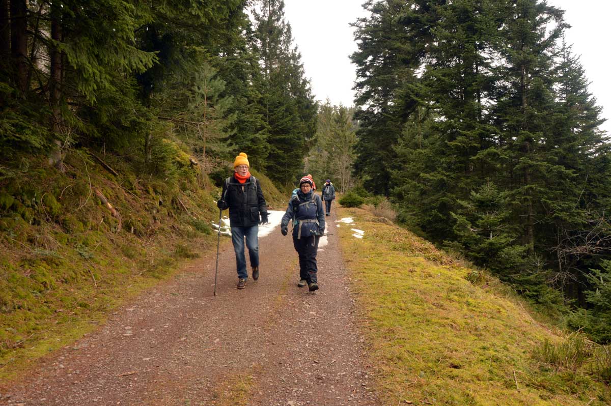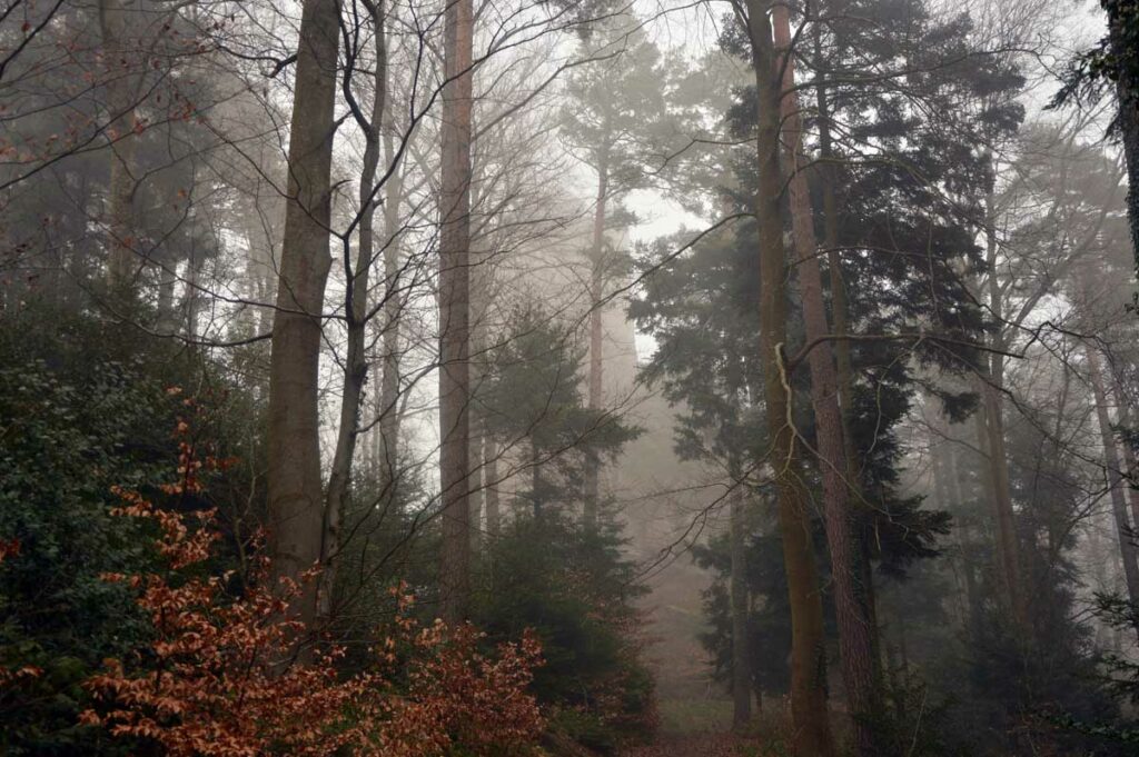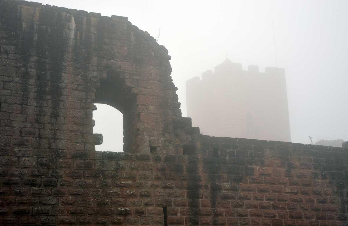 Tranquille montée vers le Lottelfels au sommet du Schneeberg à 961 mètres, pour retrouver la vue au-dessus du brouillard, puis descendre par une partie du sentier des sculptures et revenir à Wangenbour-Engenthal par son château… dans le brouillard.