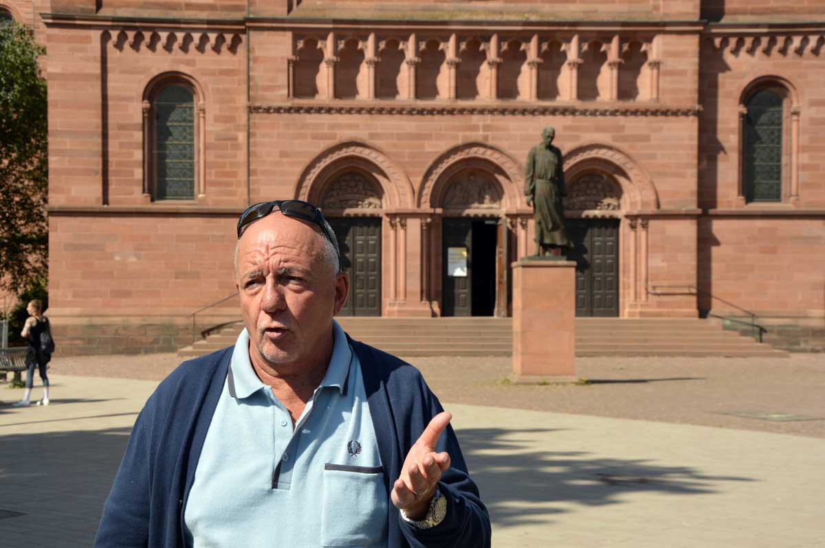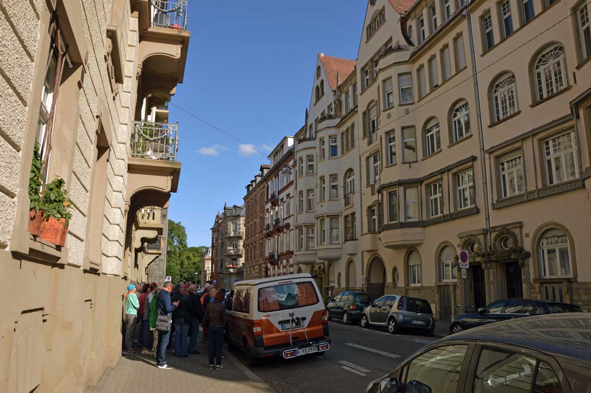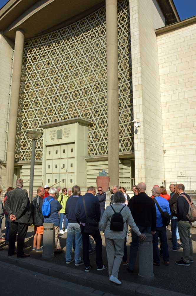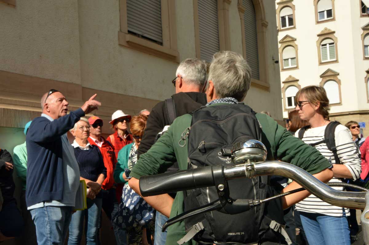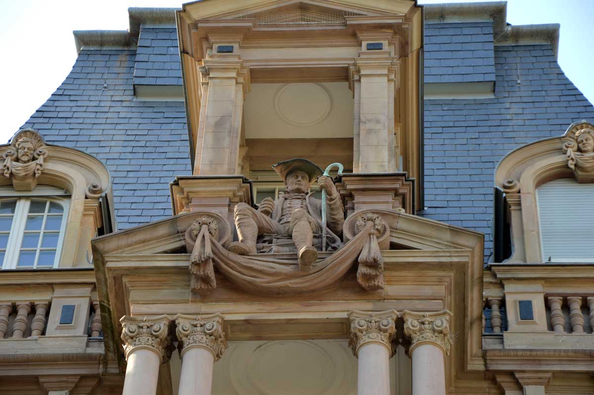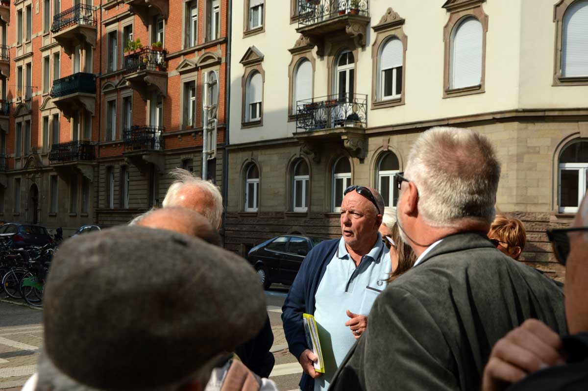 C’est donc au départ du tribunal qu’environ quarante personnes sont parties le nez en l’air ; commençant par apprendre qu’il vaut mieux à Strasbourg ne pas se donner rendez-vous à l’église Saint-Pierre-le-Jeune. Pourquoi ? Parce qu’il y en a deux ! Et pour apprendre à l’arrivée que M. Strauss-Durkheim était un visionnaire car il a légué sa fortune à l’aide aux aveugles… Oui fallait l’oser celle-là, notre animateur l’a fait !