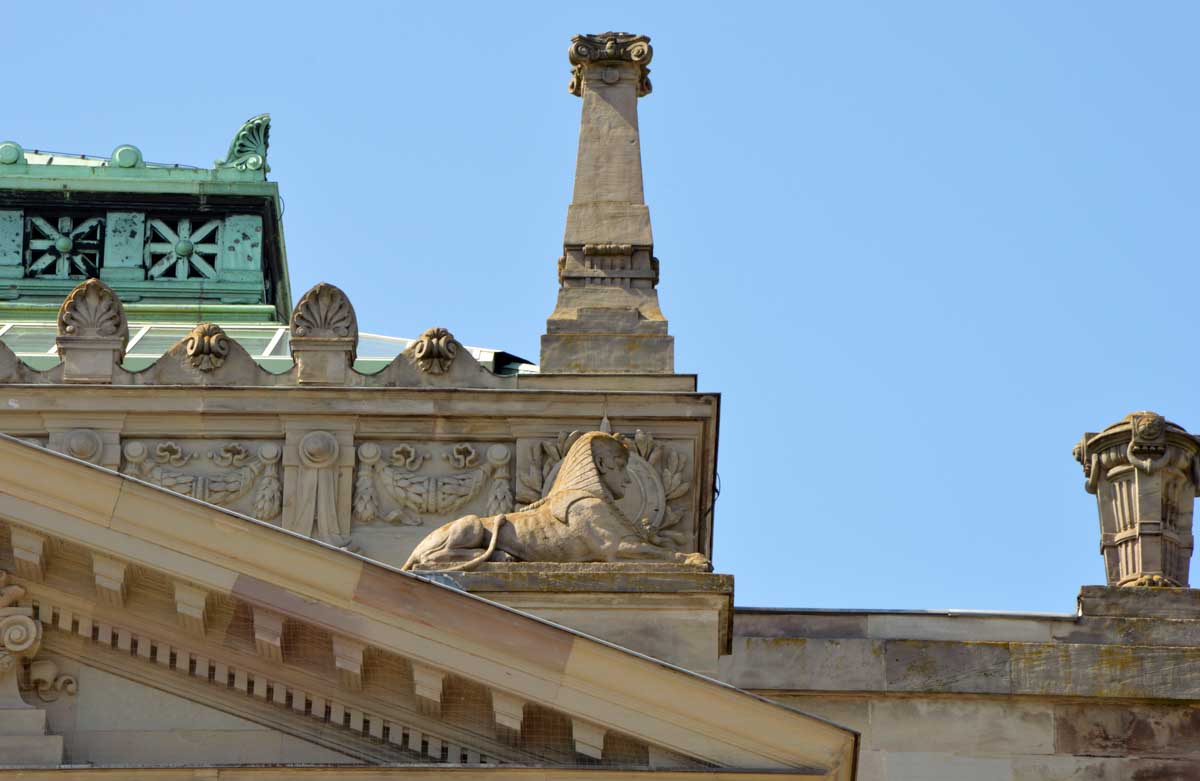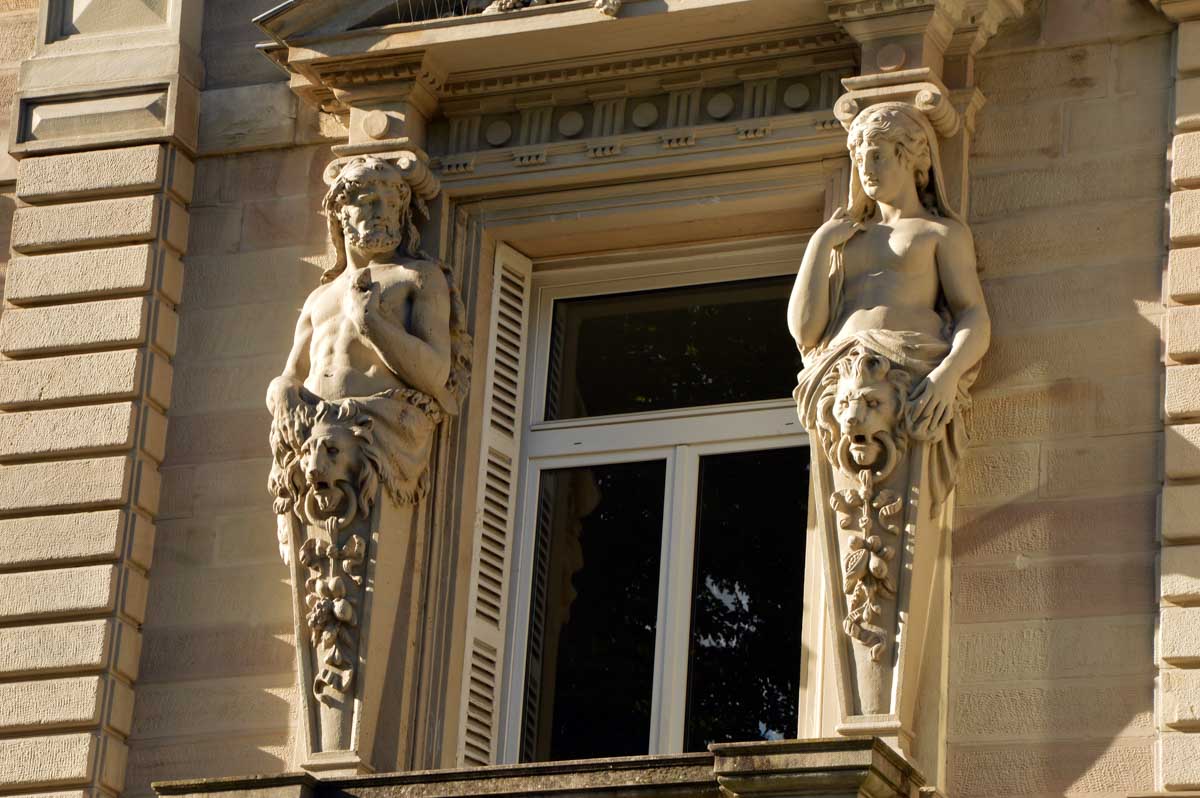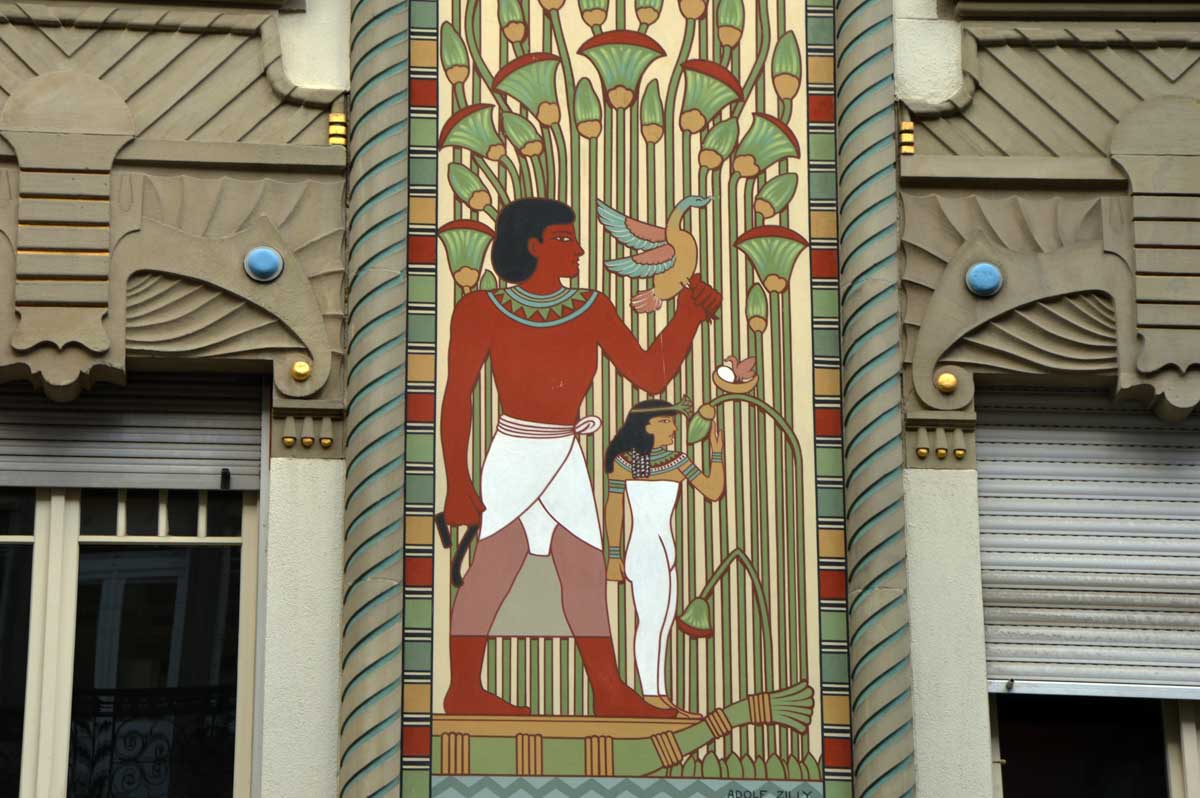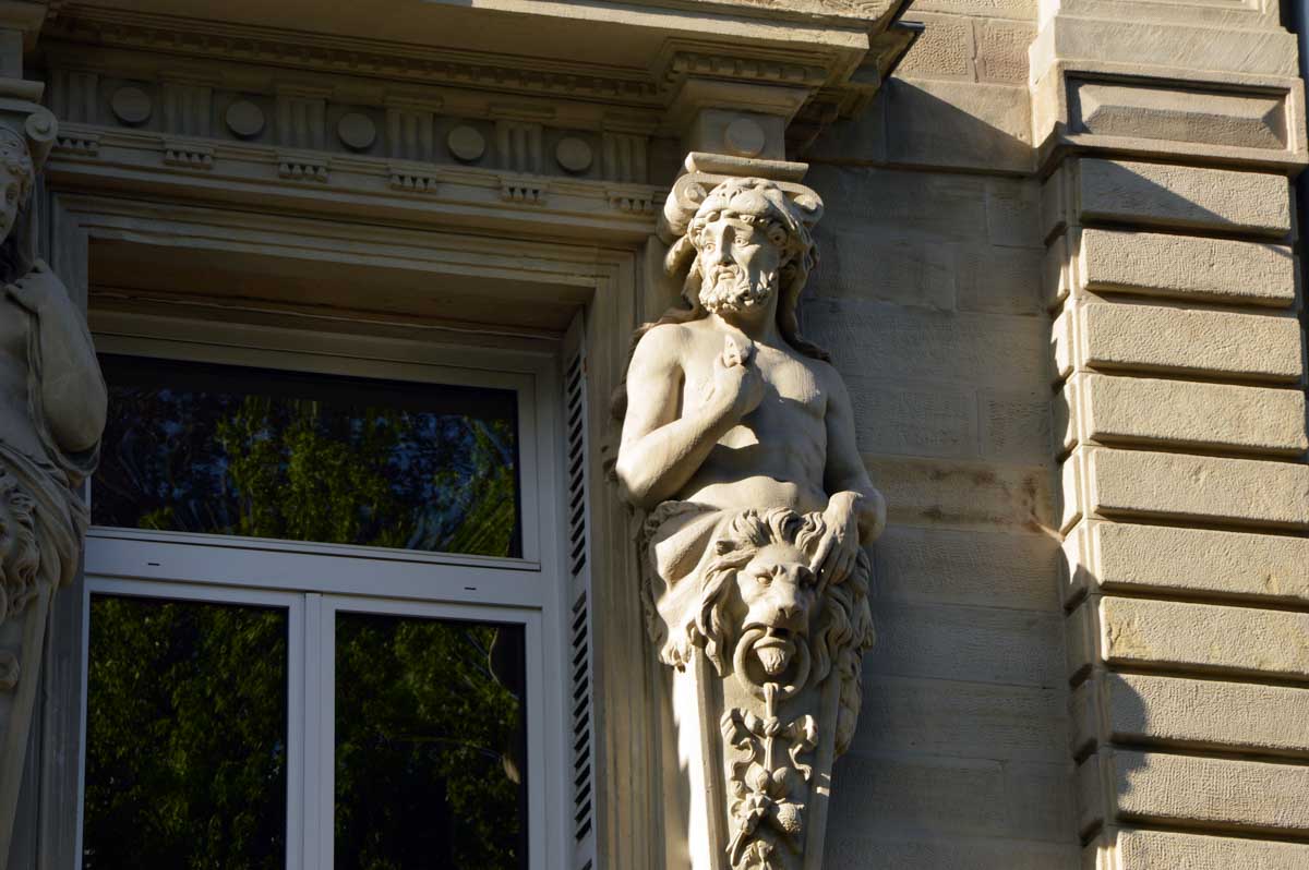 D’une originalité architecturale, nous voici lancés sur les traces d’un personnage historique, en partant d’une religion nous embarquons dans un très bel espace vert, et depuis la période allemande 1870-1918, nous avons fait un aller-retour en Egypte. Non sans la compagnie de cariatides et d’atlantes d’ailleurs, qui nous ont accompagnés aux limites de la Neustadt que nous avons explorée il y a quelques années.