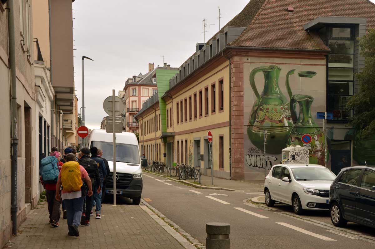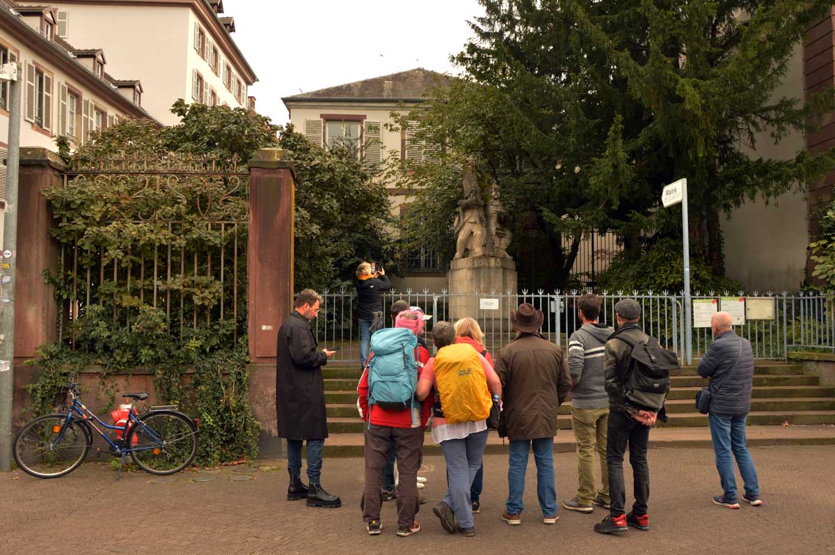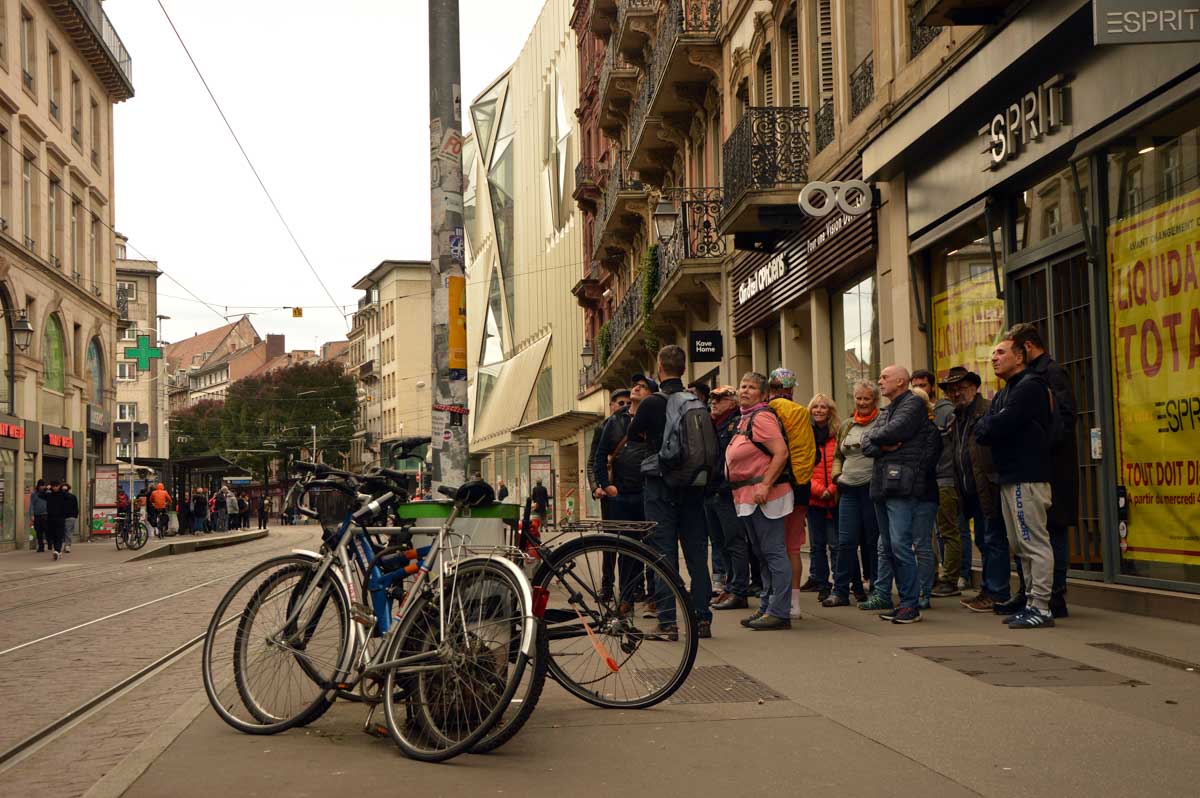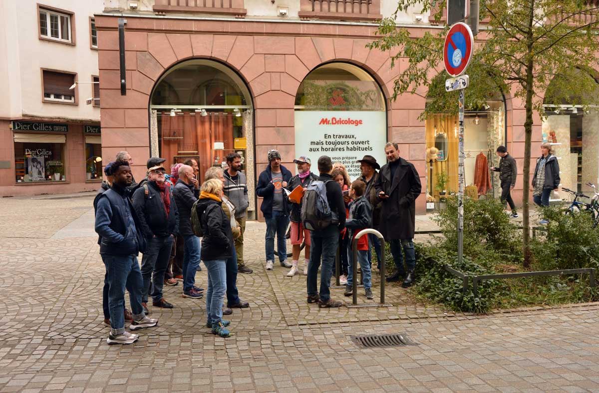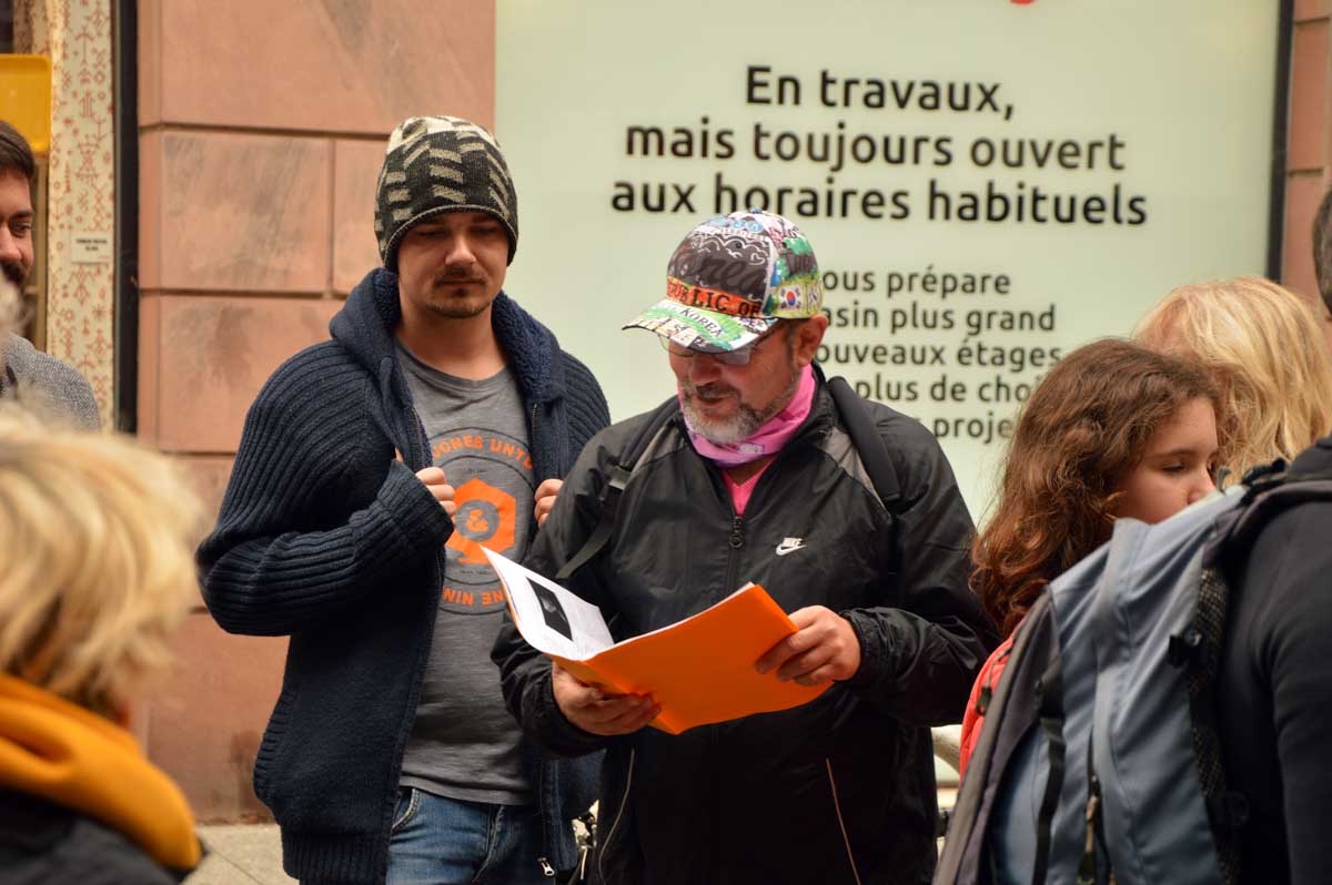 Nous démarrîmes par… Tu dis ? Démarrâmes ? Ben si ça te fait plaisir ! Donc on s’est fait la rue du 22 novembre avec les premières sculptures, la rue Gustave Doré et très vite, l’Aubette et la Place Broglie.