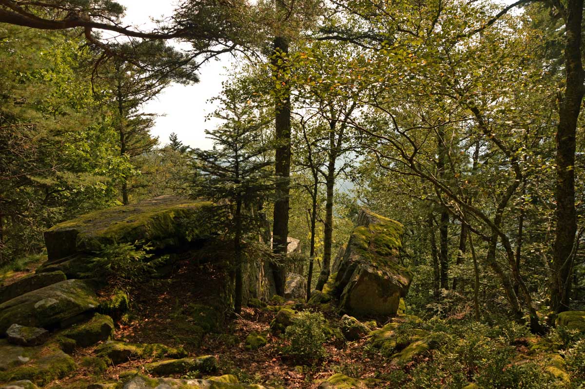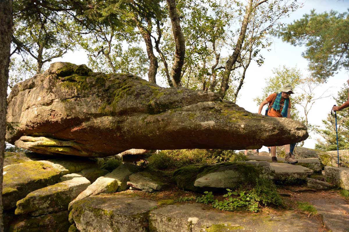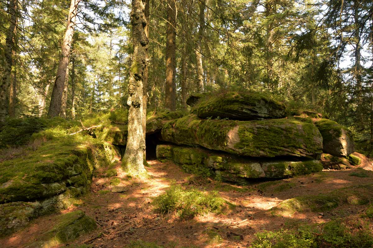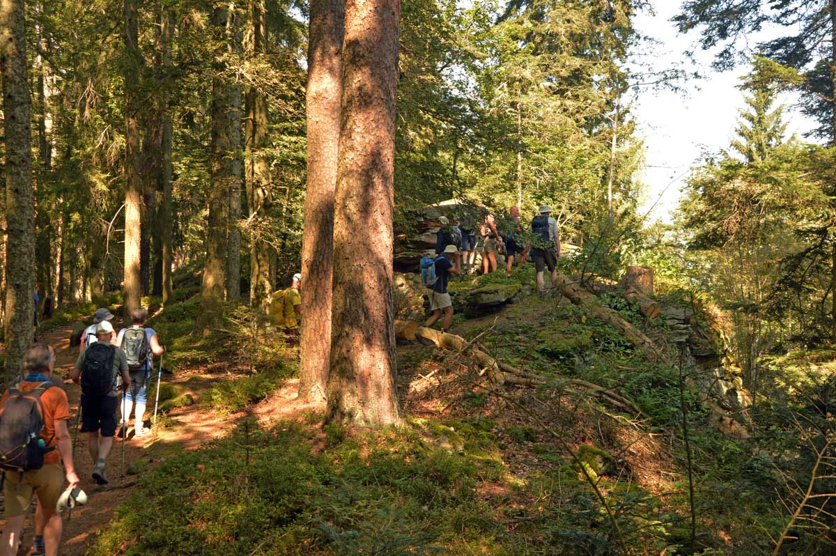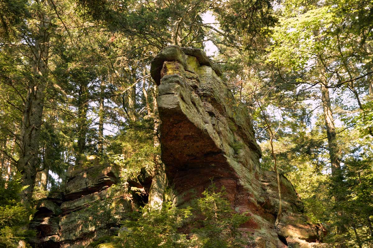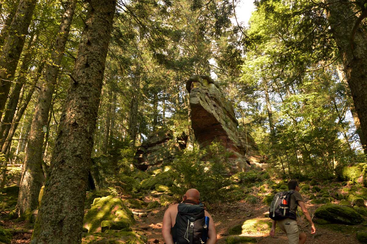 Je sais pourquoi. Il y a très longtemps, à la préhistoire, des géants habitaient le Taennchel. Puis un dimanche qu’ils s’ennuyaient puisque les randonneurs n’avaient pas encore été inventés, ils se sont mis à transformer les animaux en pierres. On l’a échappé belle, tu me vois moi, statufiée pour toujours avec en plus mon sac-à-dos, et avec le bol que j’ai, en train de me curer une oreille ?