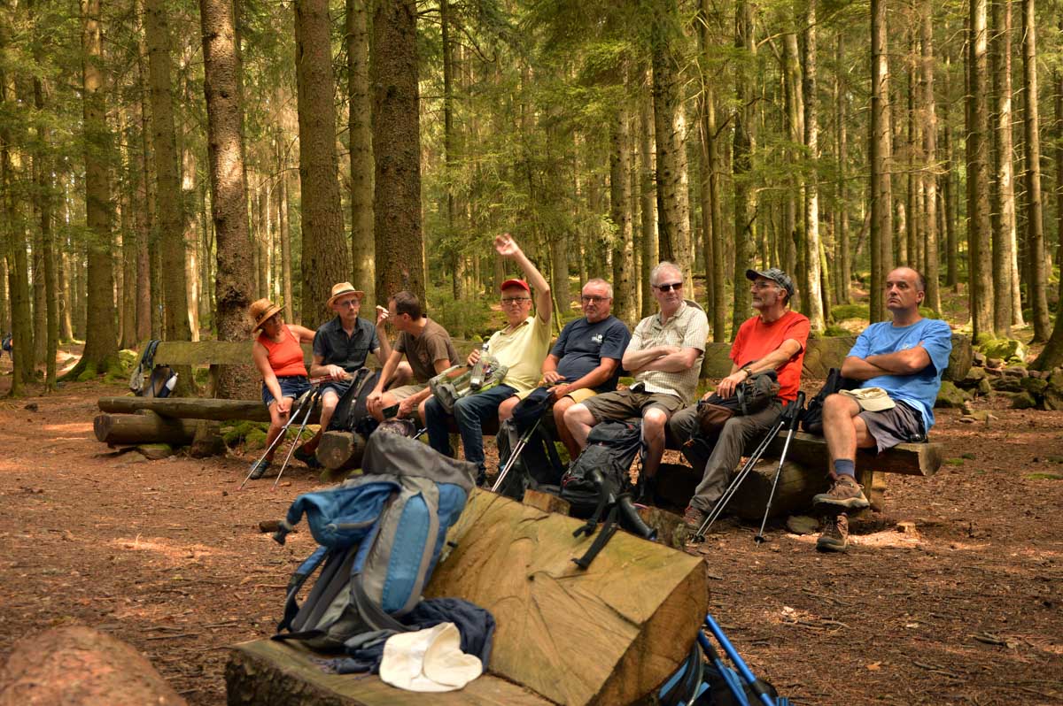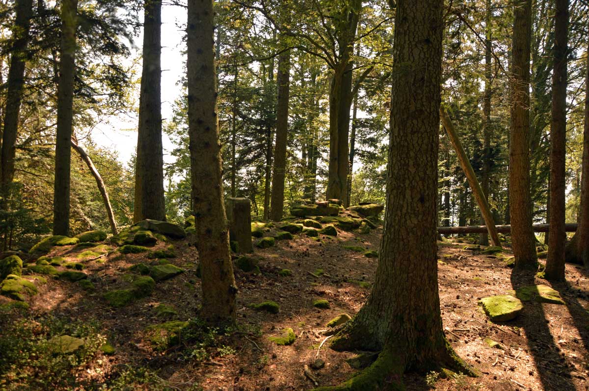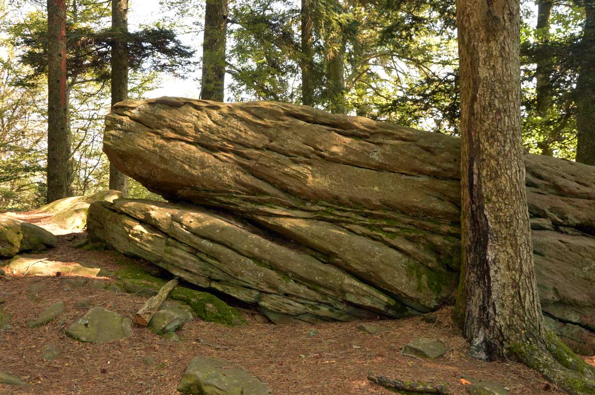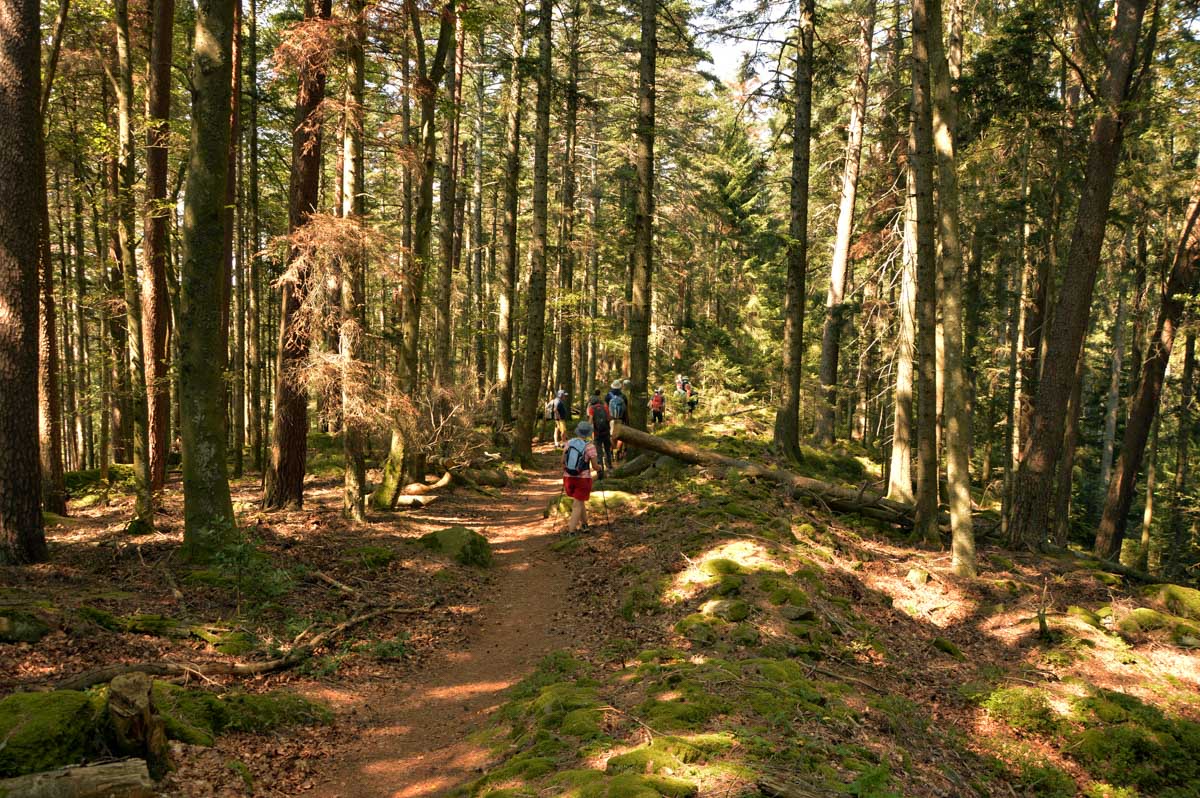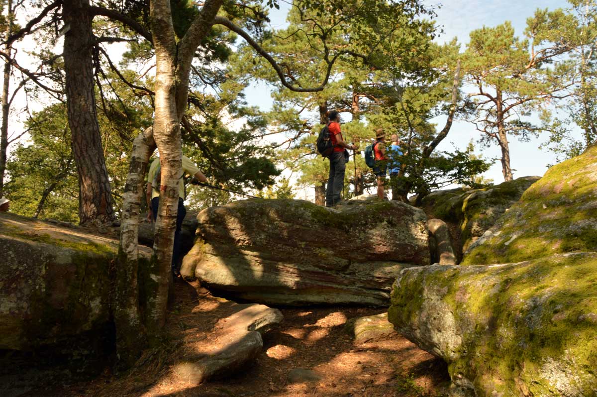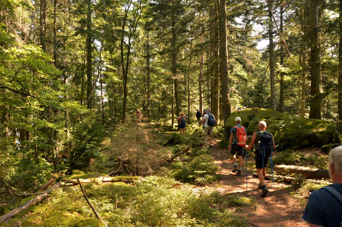 Je sais pourquoi. Il y a très longtemps, à la préhistoire, des géants habitaient le Taennchel. Puis un dimanche qu’ils s’ennuyaient puisque les randonneurs n’avaient pas encore été inventés, ils se sont mis à transformer les animaux en pierres. On l’a échappé belle, tu me vois moi, statufiée pour toujours avec en plus mon sac-à-dos, et avec le bol que j’ai, en train de me curer une oreille ?