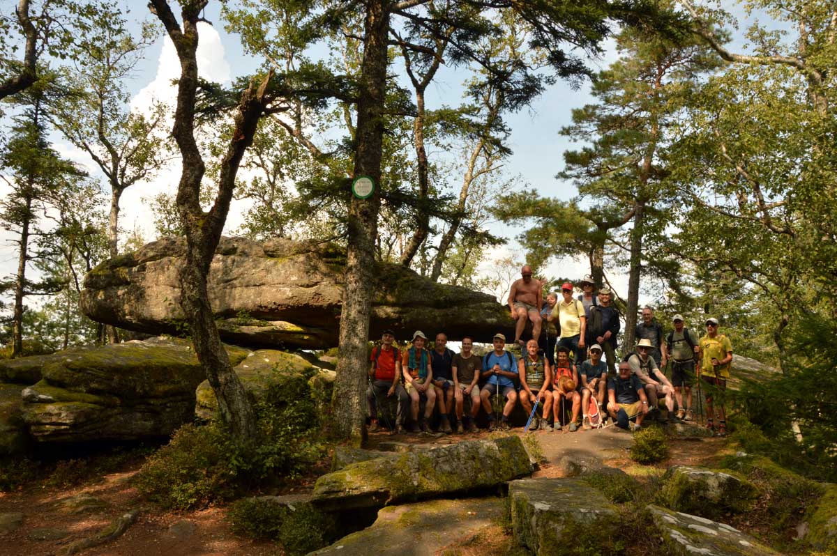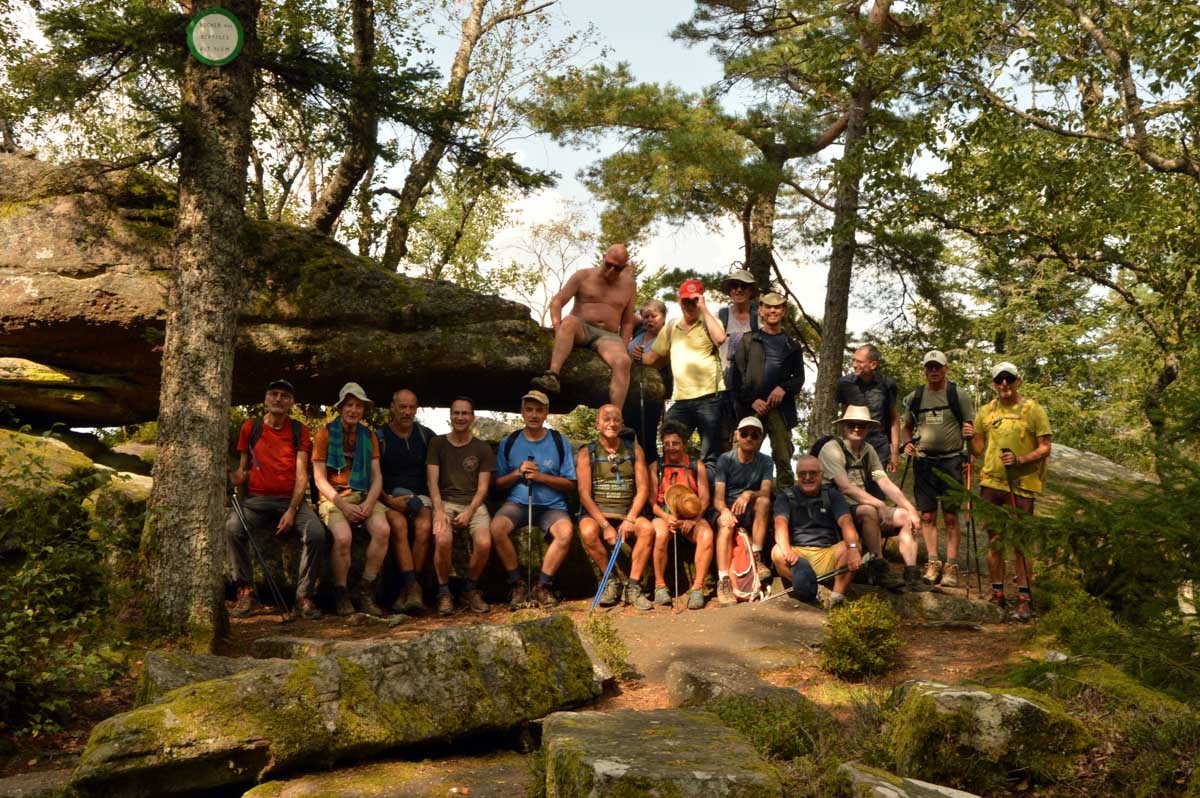 Rando’s Lorraine nous a préparé un circuit sympa autour des rochers du Taennchel, avec déjeuner au Rocher de la Paix d’Udine. C’est qui celle-là encore ? Cherche pas au rayon déesses, y’en a pas. Ni dans la Bible, tu trouveras pas non plus. Encore moins d’Udine à gaz, de Sainte-Udine, et je ne sais quoi. T’as déjà vu une fille s’appeler Udine, toi ? Non ? Alors réfléchis deux secondes !