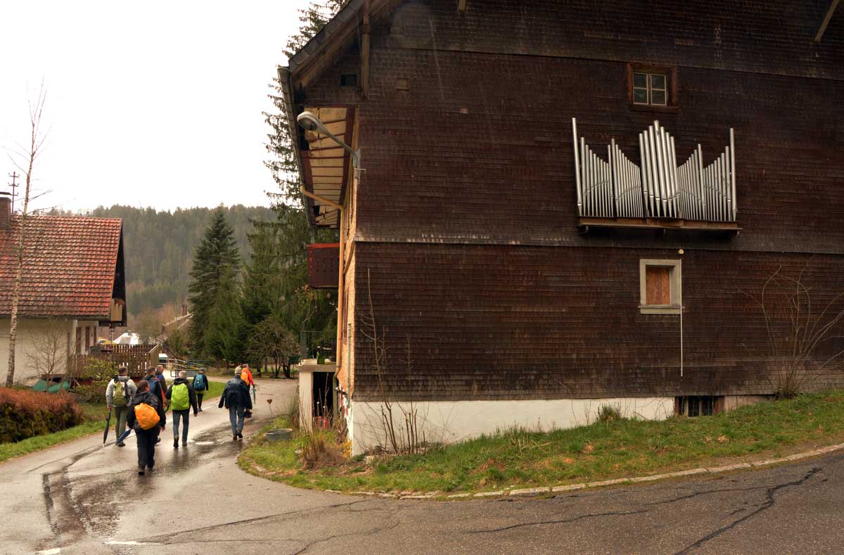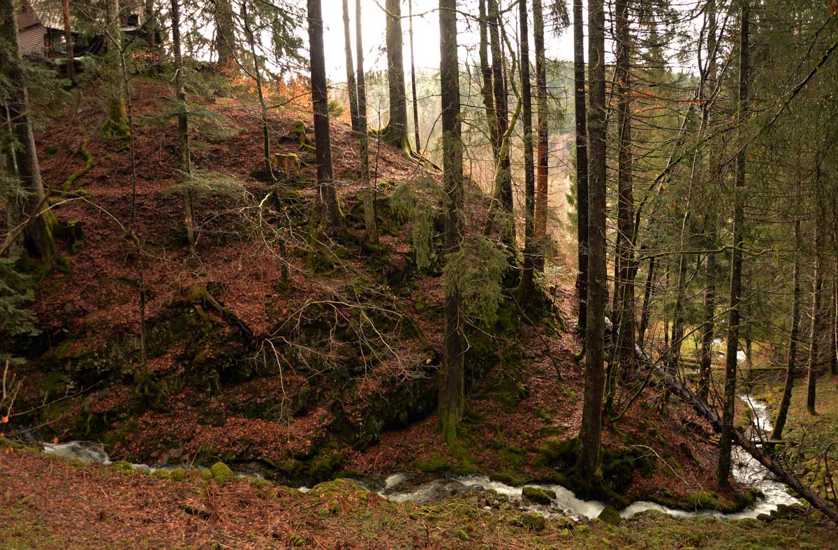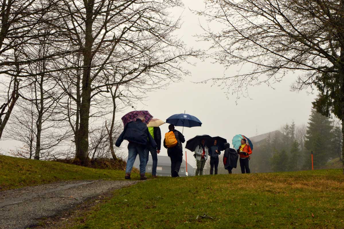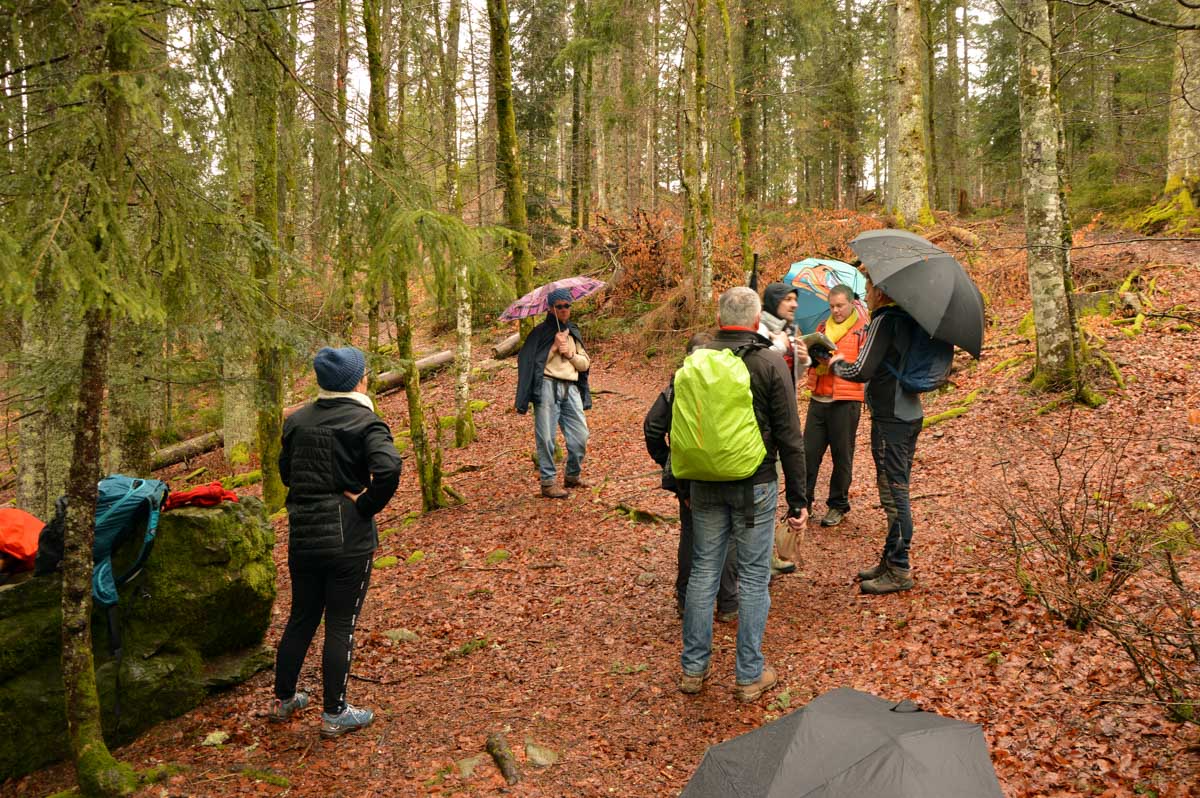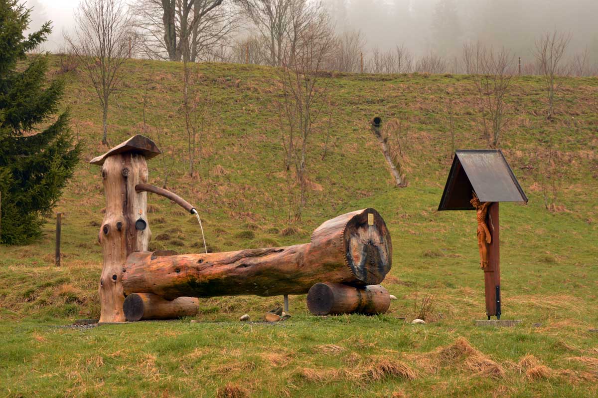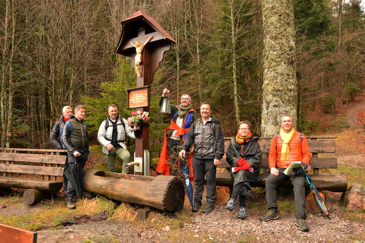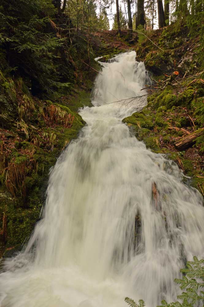 Bien que n’ayant rien à nous faire pardonner (ça se saurait), nous avons péleriné sans pélerines mais avec des capes de pluie au Liebfraubrunnen (la fontaine de la Vierge) et puis à la Herr Jesu Kapelle de Rütte (on comprend même sans traduction !). Ces formalités expiatoires accomplies, ce fut retour à la flotte, pardon, à l’eau, pour descendre le long des cascades de Todtmoos. Quel plaisir de les voir en pleine forme, loin des filets d’eau que nous avions pu voir ailleurs l’été dernier. De la vraie cascade des familles, virile, abondante, puissante, tonitruante, walkyrienne, en un mot : cascadante !