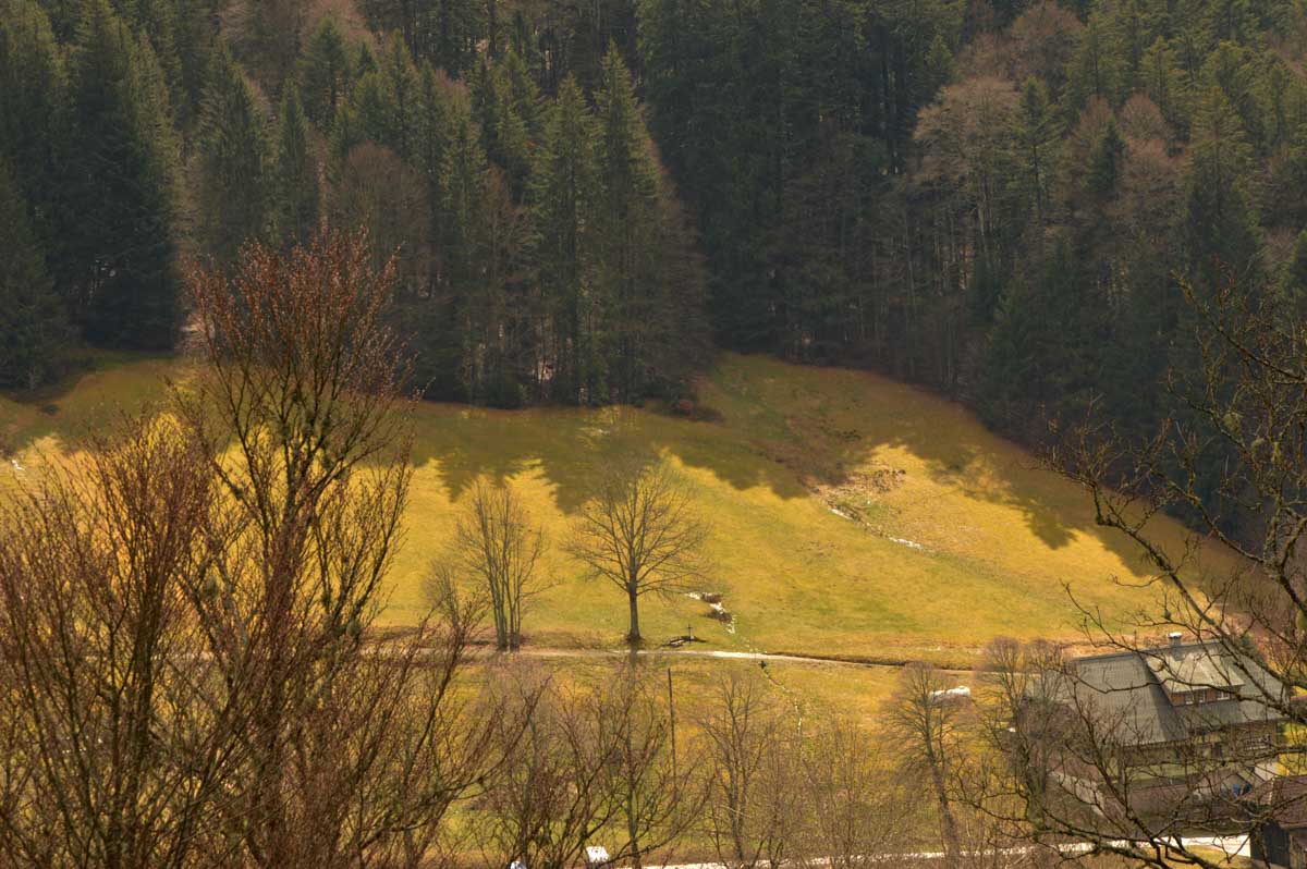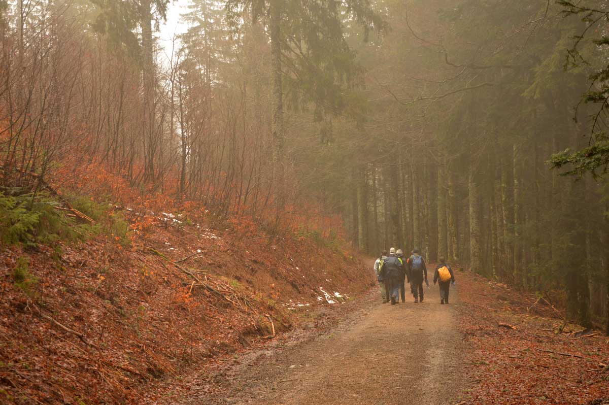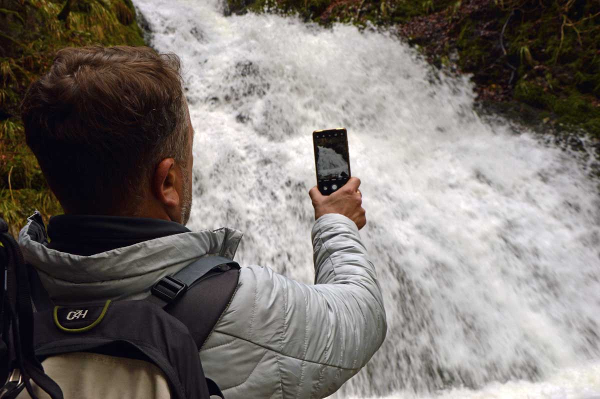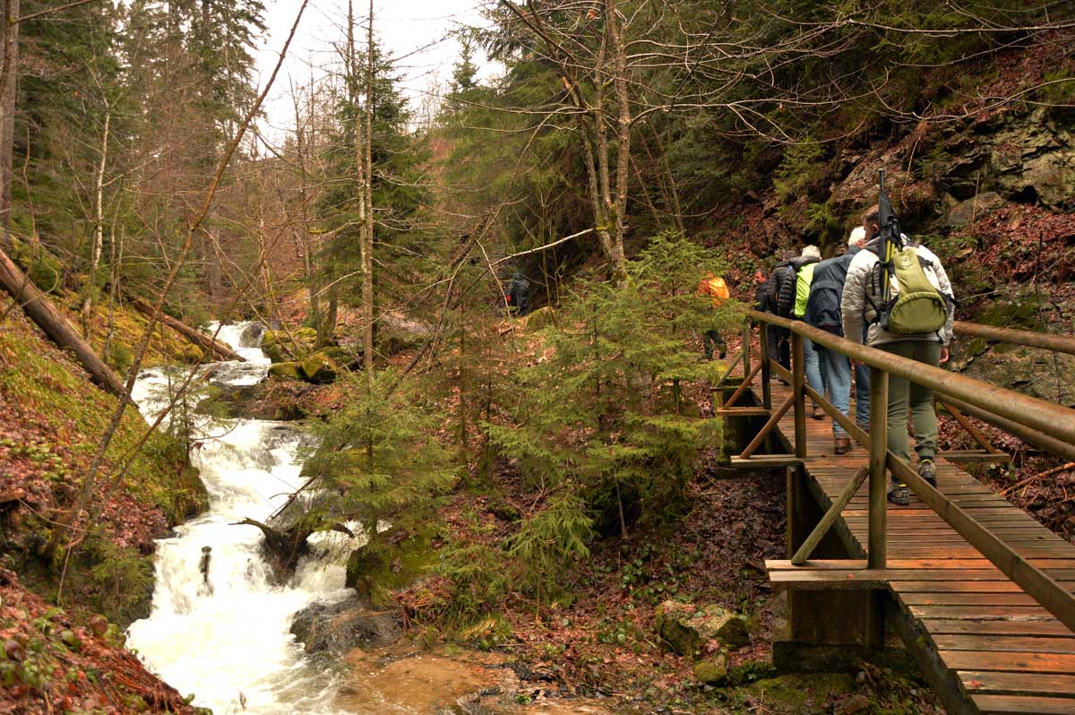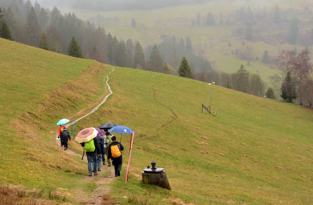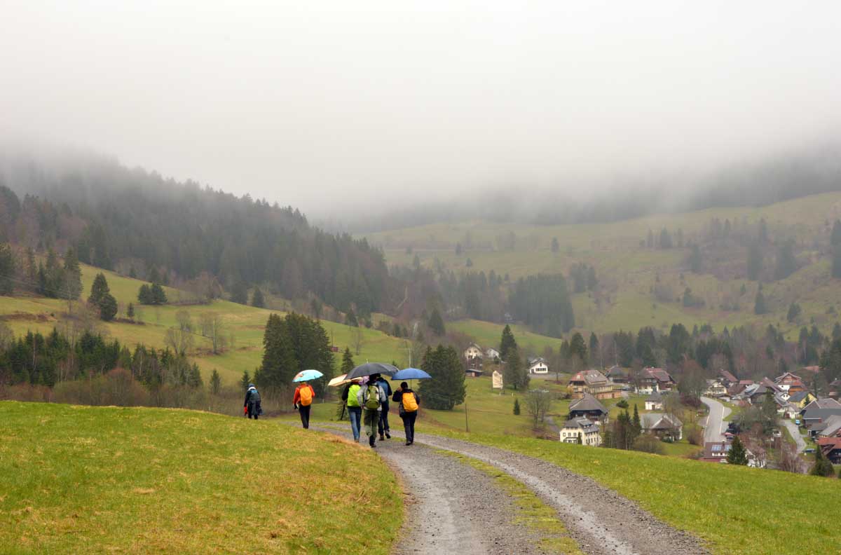 Bien que n’ayant rien à nous faire pardonner (ça se saurait), nous avons péleriné sans pélerines mais avec des capes de pluie au Liebfraubrunnen (la fontaine de la Vierge) et puis à la Herr Jesu Kapelle de Rütte (on comprend même sans traduction !). Ces formalités expiatoires accomplies, ce fut retour à la flotte, pardon, à l’eau, pour descendre le long des cascades de Todtmoos. Quel plaisir de les voir en pleine forme, loin des filets d’eau que nous avions pu voir ailleurs l’été dernier. De la vraie cascade des familles, virile, abondante, puissante, tonitruante, walkyrienne, en un mot : cascadante !