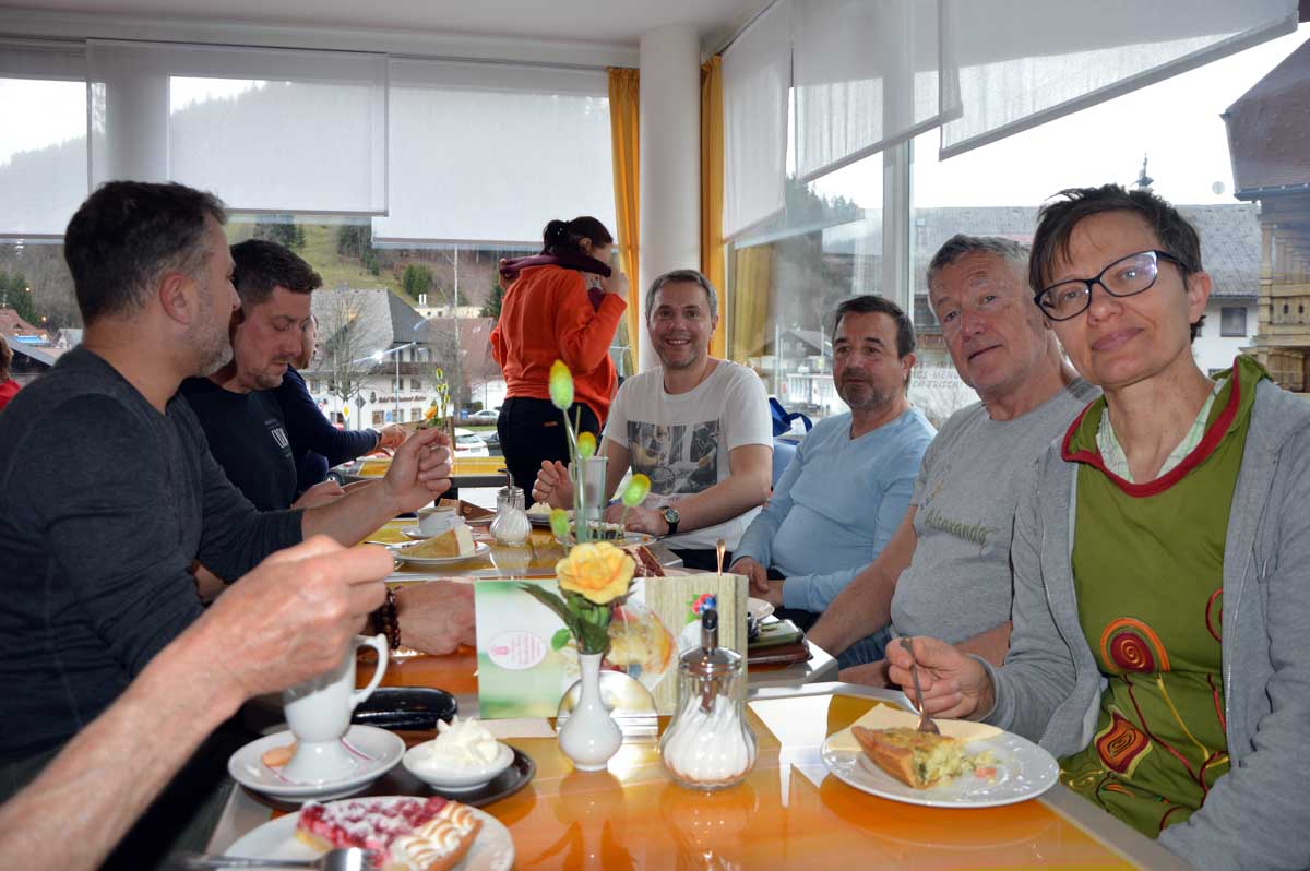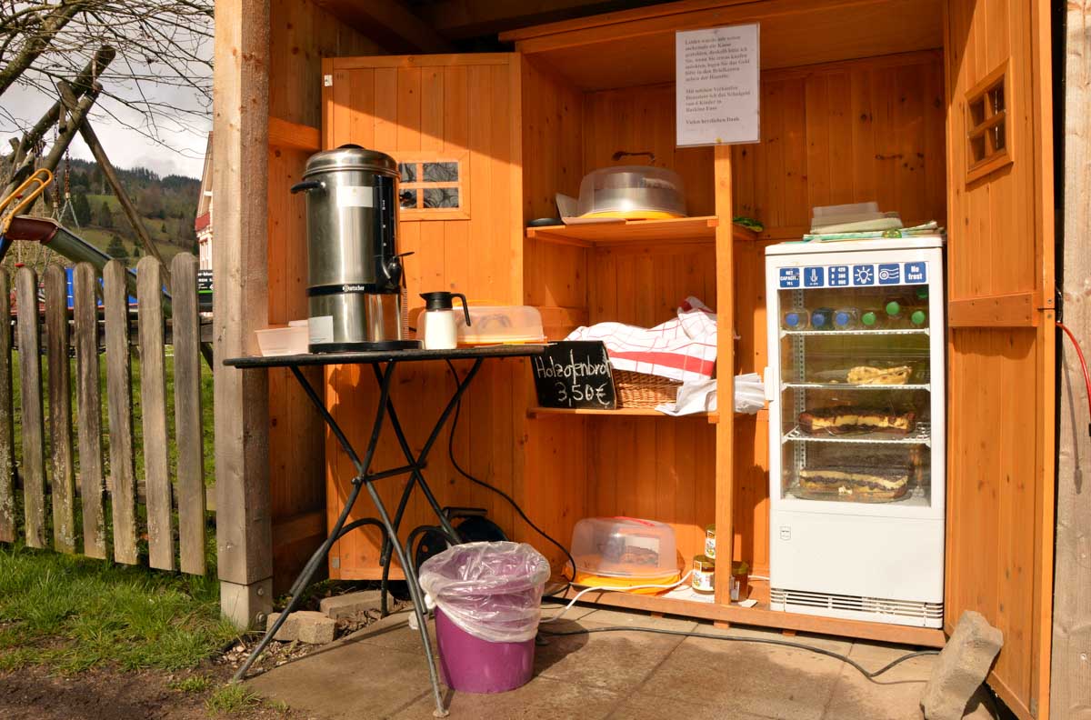Un nouveau concept nous fut proposé : le Kaffee-Kuchen à composer soi-même et en plein air (on en revient au magasin suédois !), et cela au profit d’une famille du Burkina Faso. Revenus à Todtmoos, comme il se doit sous le soleil de la journée finissante, nous avons conclu le week-end par un Kaffee-Kuchen vrai de vrai, et l’achat de Lebküchle, les pains d’épice locaux. Du coup moi, j’en ai complètement oublié mon pastis !