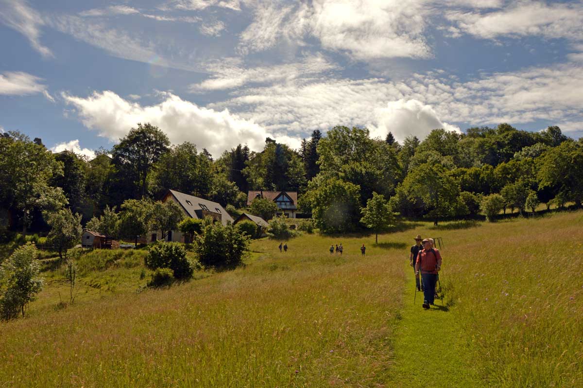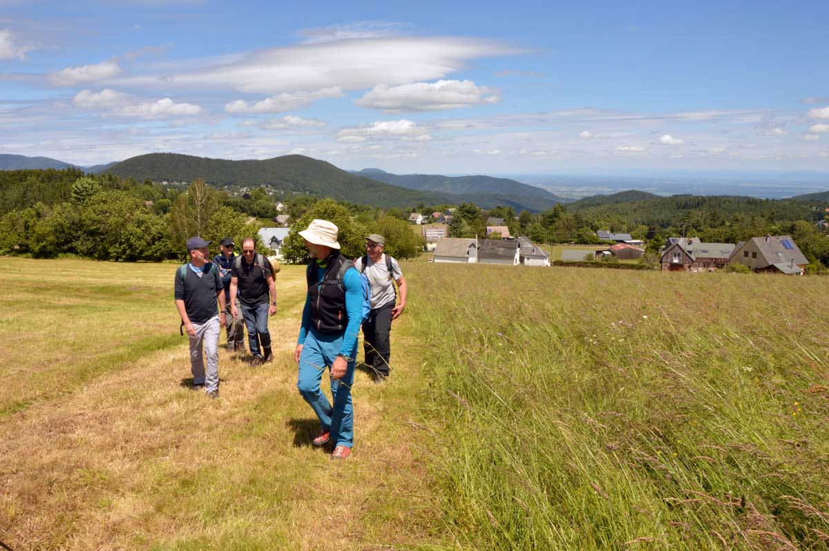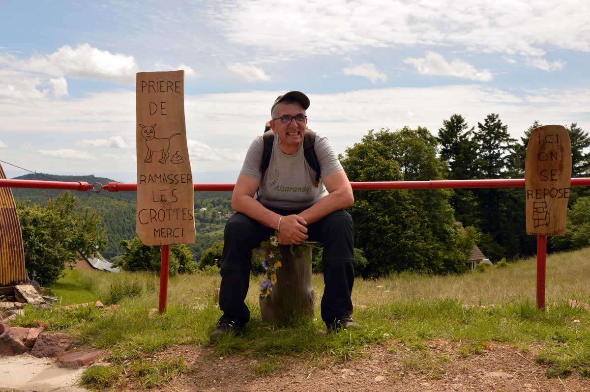 Côté bestioles, c’est la première fois que je croisais des chèvres angoras. Toutes mignonnes et bêlantes mais pas plus comestibles pour autant. Tout comme les lézards qui me filaient entre les jambes au Hohnack ; j’en ai poussé des hurlements qui ont fait se déchirer les nuages et tomber la pluie au moment où on rejoignait les voitures. Ces cris surréalistes, Mamie Biscotte, la doyenne des Trois Epis, en a perdu son sonotone qui est tombé dans la soupe de Papi Yotte, se connectant ainsi à son dentier qui s’est mis en mode automatique pour grignoter le câble de la lampe à pied et faire ainsi sauter le transfo du village, occasionnant par là un déséquilibre fondamental du réseau électrique au point de réactiver Fessenheim qui a envoyé dans les airs un bloc de béton que Vladimir a confondu avec un missile… Réveille-toi ma grande, tu t’es encore endormie sur ton clavier. T’as azerty à l’envers sur le front !