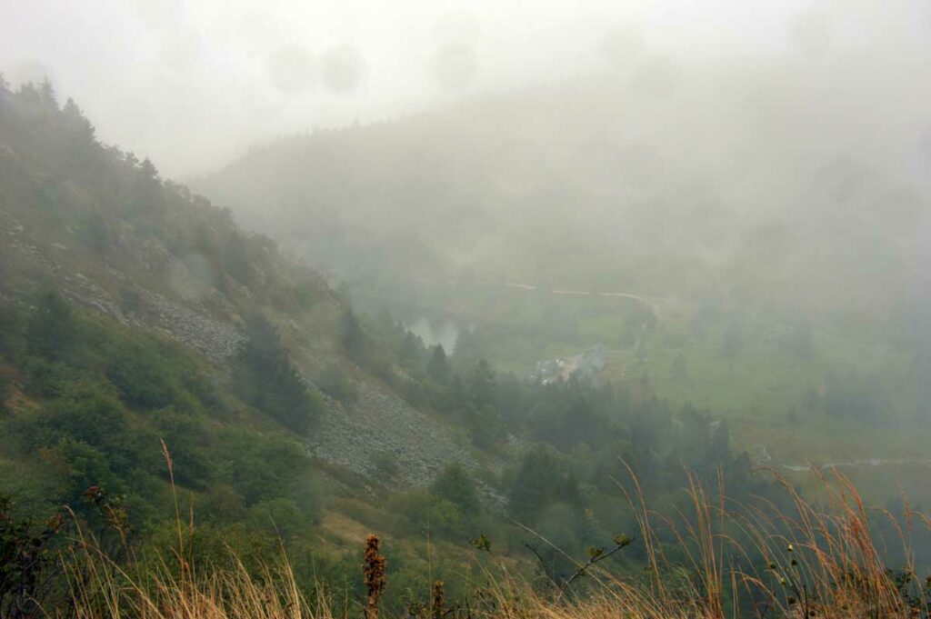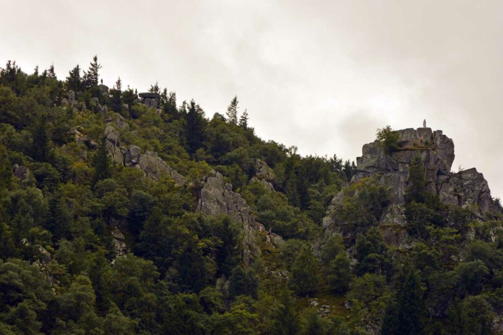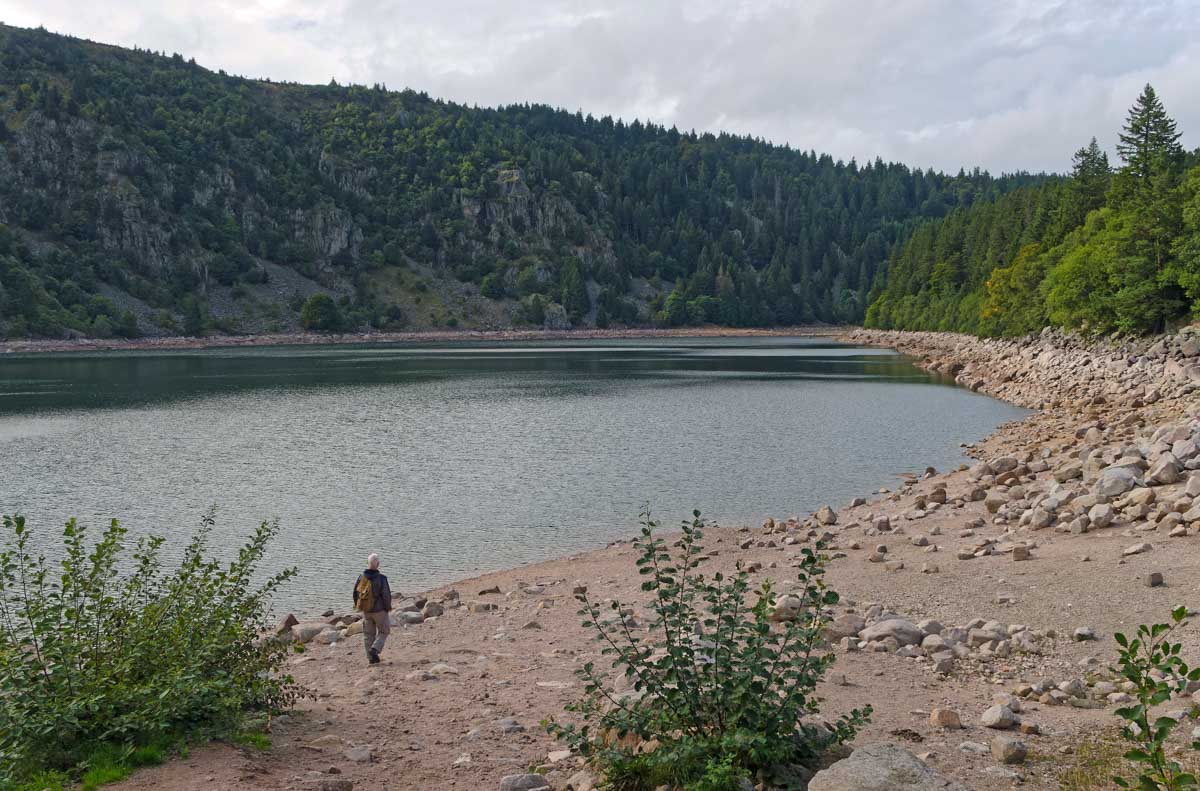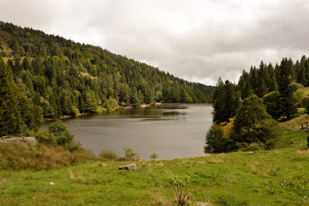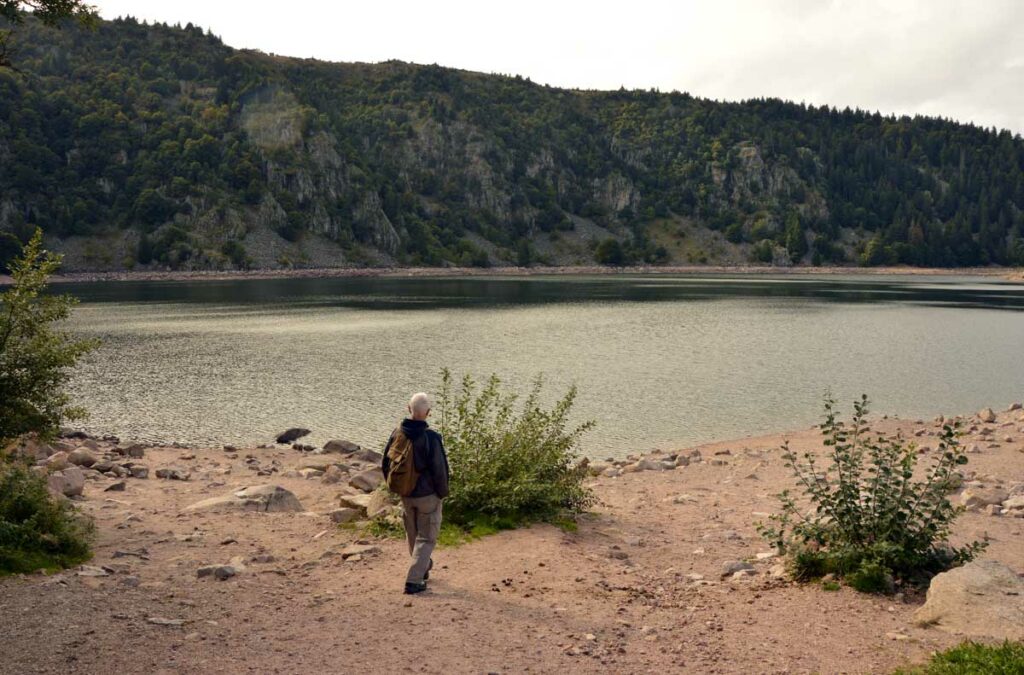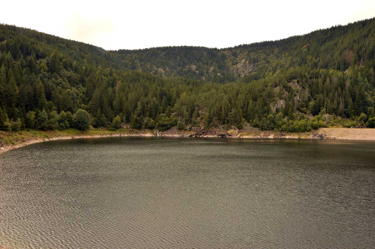 Après ce dépaysement qui ne sera pas sans évoquer les landes bretonnes où quand il y a pas de brouillard c’est qu’il pleut, nous retrouverons un paysage typique des Hautes Vosges, datant de l’époque glaciaire. Et là vous remarquerez que le Lac Blanc est situé à 1050 mètres, cent mètres plus haut que le Lac Noir, 935 mètres. Pourquoi ? Eh bien j’en ai aucune idée mais entre 1934 et 2002, une conduite amenait l’eau du Blanc dans le Noir et ça produisait de l’électricité. Puis en heures creuses, on repompait l’eau du Noir dans le Blanc. Eh, pas ingénieux, ça ? La centrale du Lac Noir a été dynamitée en 2014 et aujourd’hui, une association défend le projet d’en reconstruire une car elle produirait autant d’électricité que 18 éoliennes !