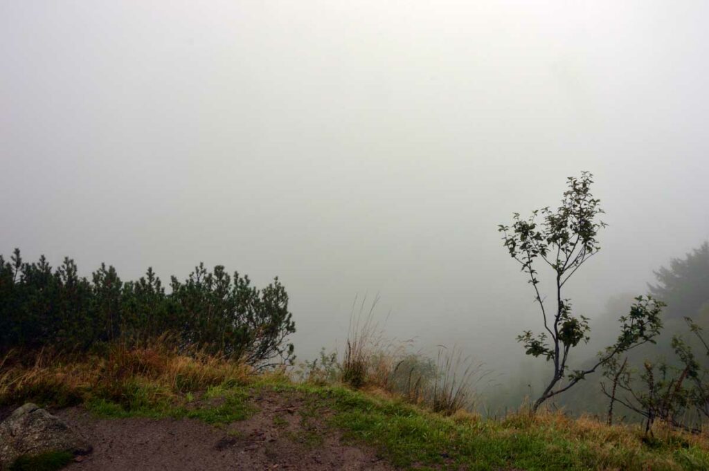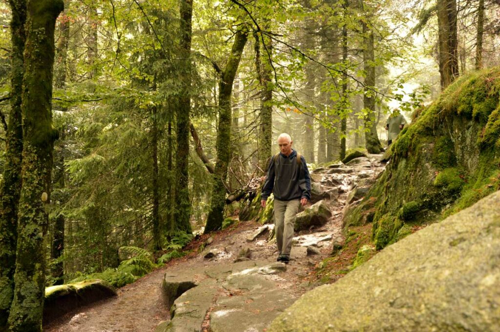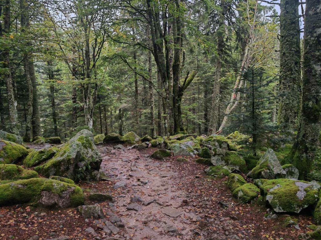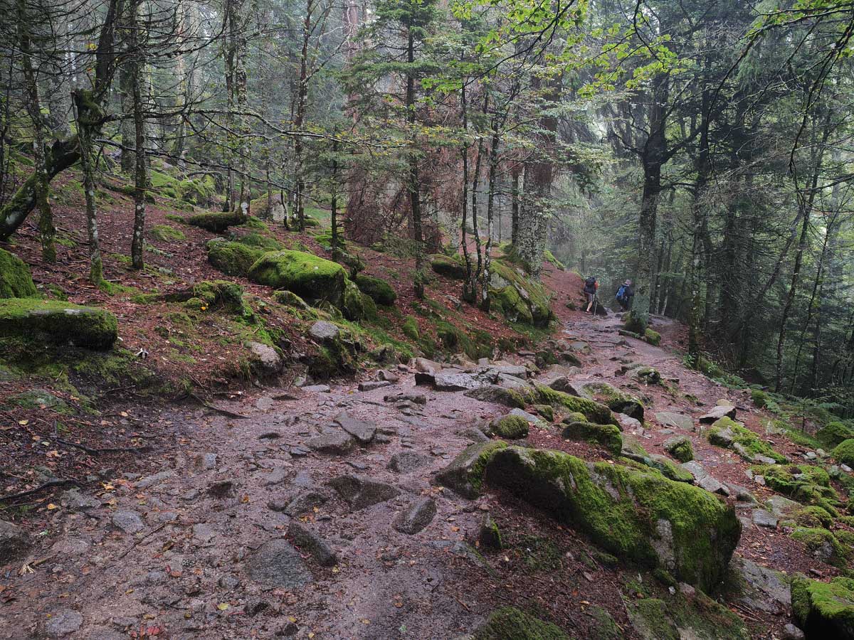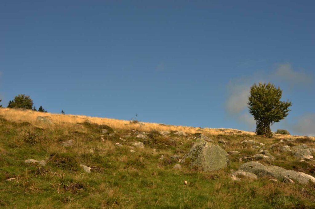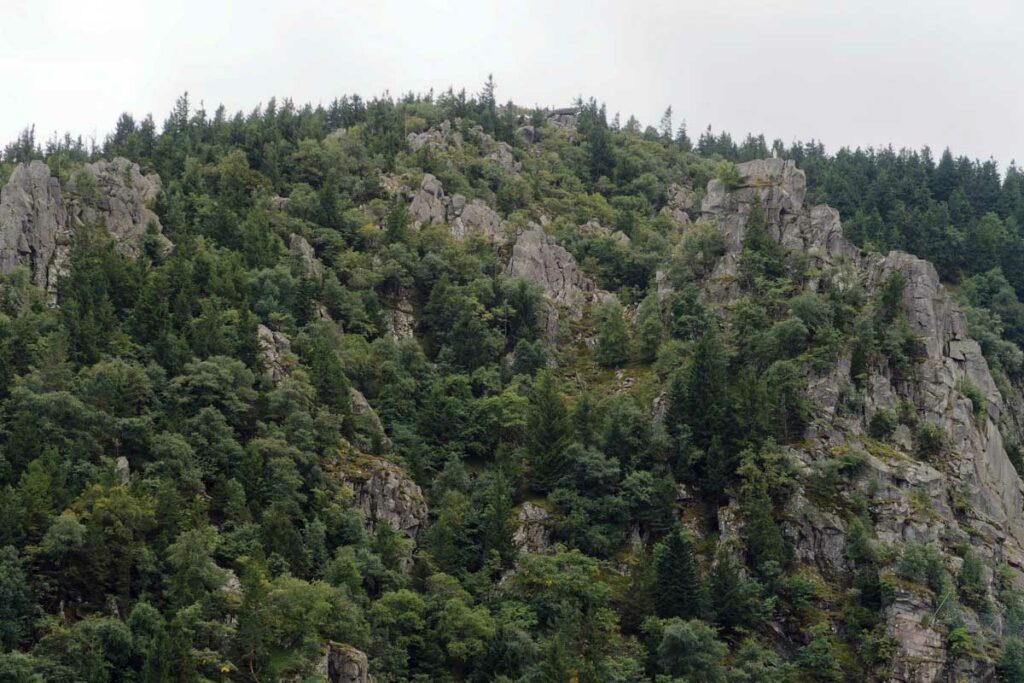 Après ce dépaysement qui ne sera pas sans évoquer les landes bretonnes où quand il y a pas de brouillard c’est qu’il pleut, nous retrouverons un paysage typique des Hautes Vosges, datant de l’époque glaciaire. Et là vous remarquerez que le Lac Blanc est situé à 1050 mètres, cent mètres plus haut que le Lac Noir, 935 mètres. Pourquoi ? Eh bien j’en ai aucune idée mais entre 1934 et 2002, une conduite amenait l’eau du Blanc dans le Noir et ça produisait de l’électricité. Puis en heures creuses, on repompait l’eau du Noir dans le Blanc. Eh, pas ingénieux, ça ? La centrale du Lac Noir a été dynamitée en 2014 et aujourd’hui, une association défend le projet d’en reconstruire une car elle produirait autant d’électricité que 18 éoliennes !