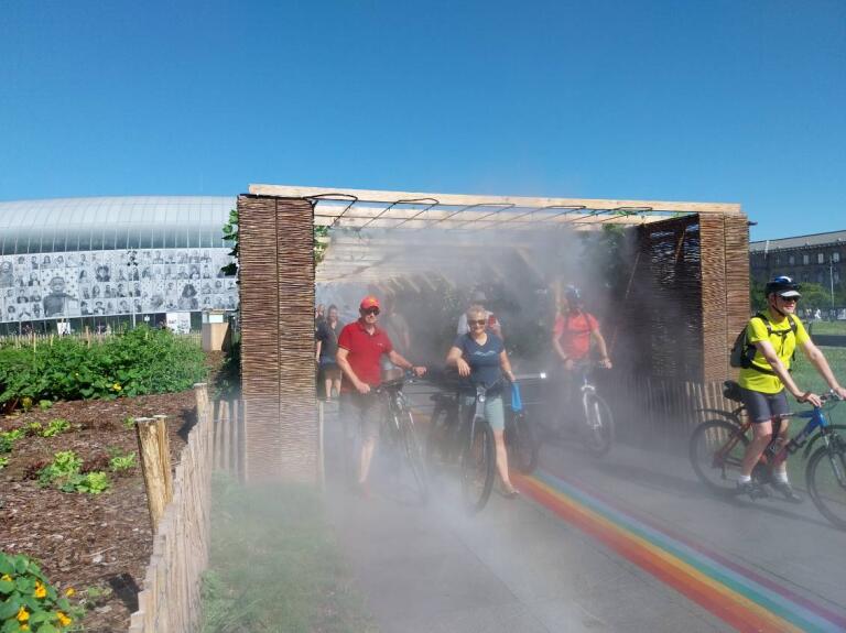 Karina-Iris : « Ah ok. Au fait, sur tes photos des 6 reine et rois de la pédale j’ai repéré un drôle d’engin, un barbecue portatif à l’avant d’un vélo ! Bizarre, non ? »