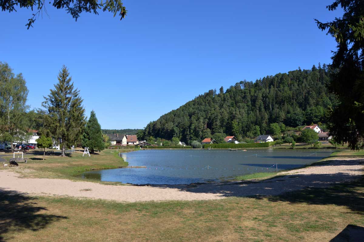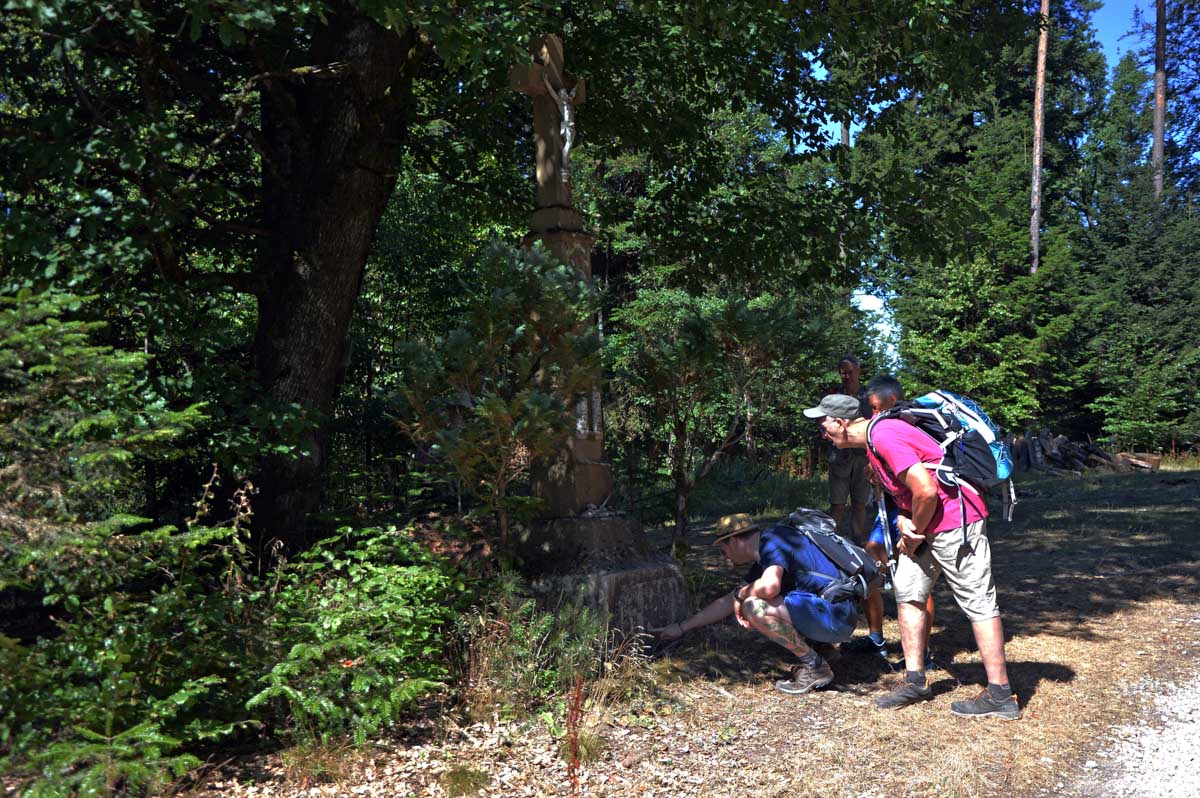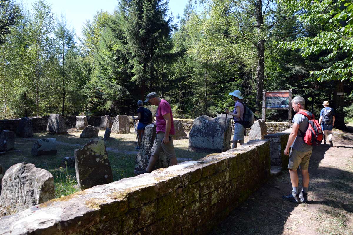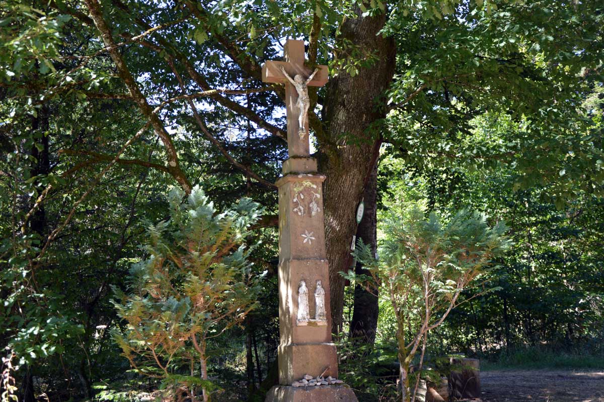 Place d’abord à la nature et à la spiritualité, avec des croix dont le socle porte des ornements particulièrement riches, entre deux sentiers forestiers ombragés. Puis le cimetière des Trois-Saints, perdu dans la forêt, où des archéologues du XIXème siècle ont rassemblé des pierres tombales disséminées autour de Beimbach et datant de deux-mille ans, en forme de maison et disposant d’une ouverture à leur base pour permettre la communication entre le monde des vivants et celui des morts. Ou accessoirement de la boucher pour couper ce lien.