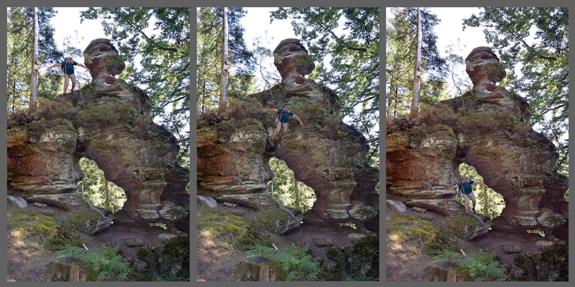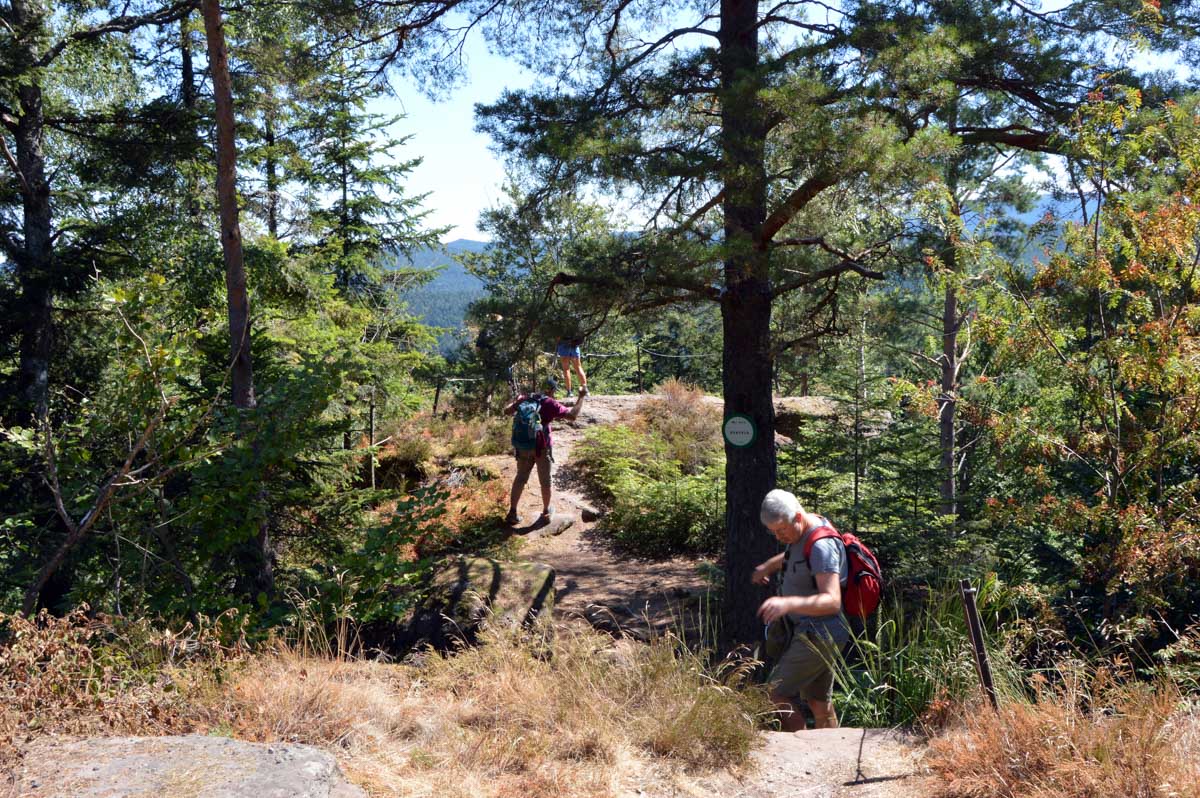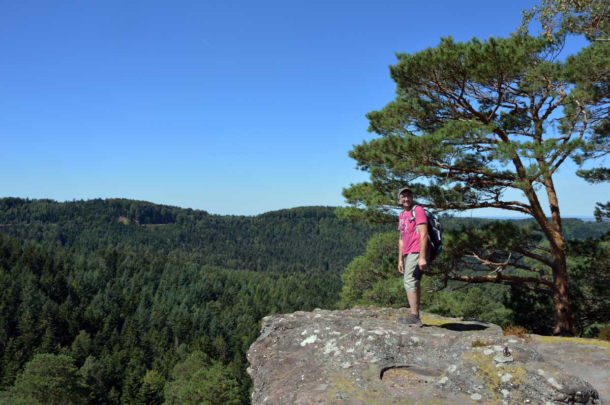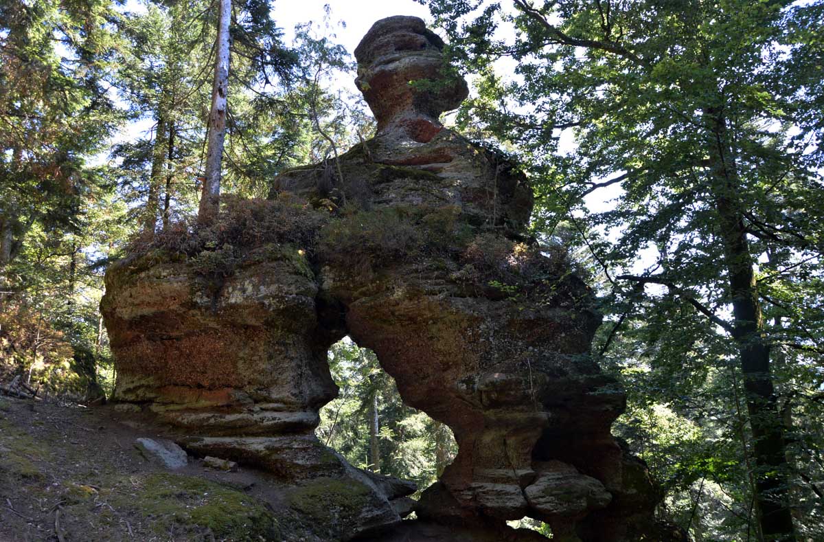 C’était aussi la journée des rochers impressionnants, tels que le Eckfelsen et sa vue sur Dabo, le vertigineux Hohwalschfelsen qui nous a servi de salle à manger pour le déjeuner, et enfin le Rocher de la Salière, œuvre de l’érosion qui nous attendait dans un discret détour du sentier.