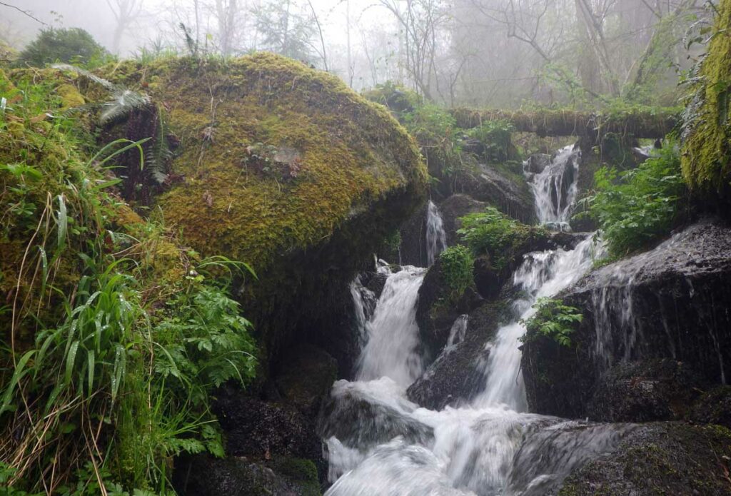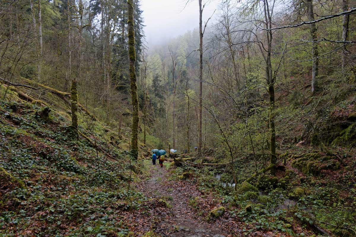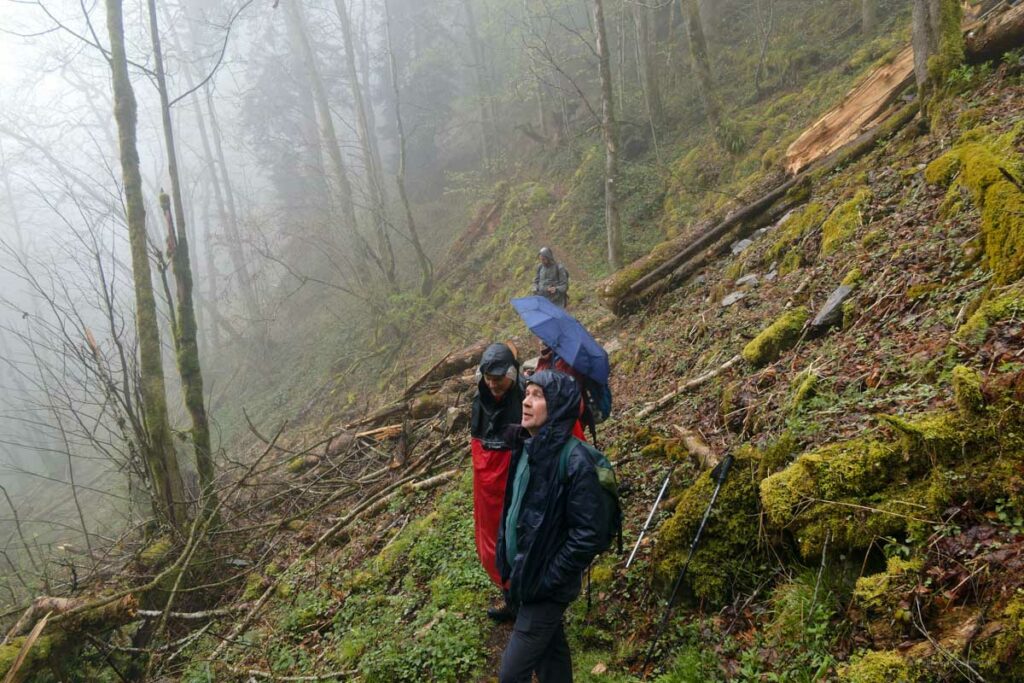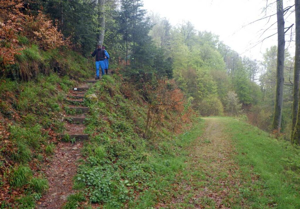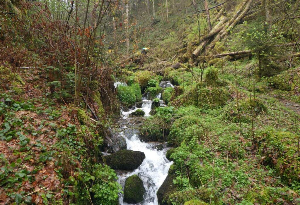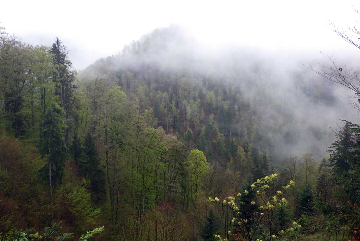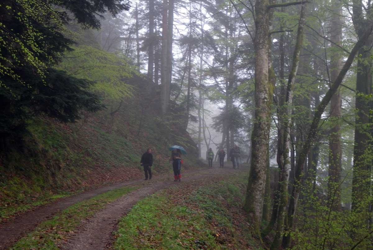 Ambiance brouillard et crachin au départ du lac du barrage de la Wehra, pour une douce montée dans un décor de forêt et de magnifiques rochers, avec des abris dont la Felsenhütte perchée comme une maison de contes de fées. De l’autre côté, sentier sauvage entre les torrents et retour par le barrage pour constater que le niveau du lac a baissé de plusieurs mètres en une seule journée.