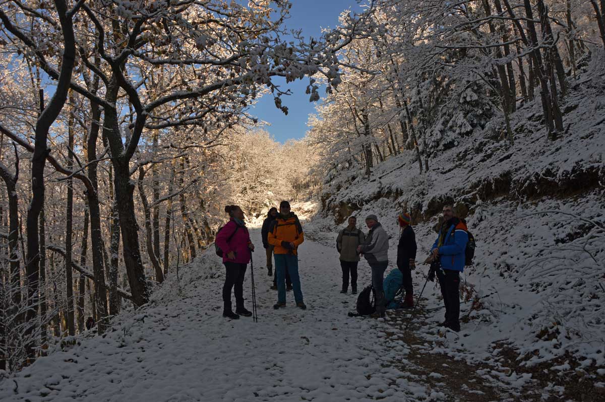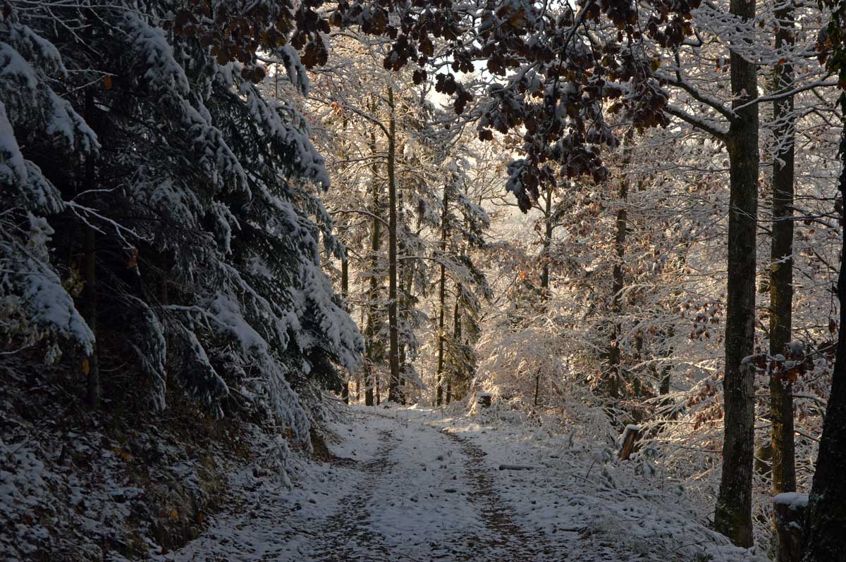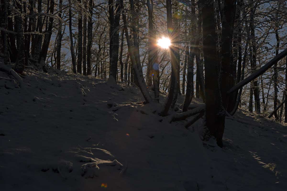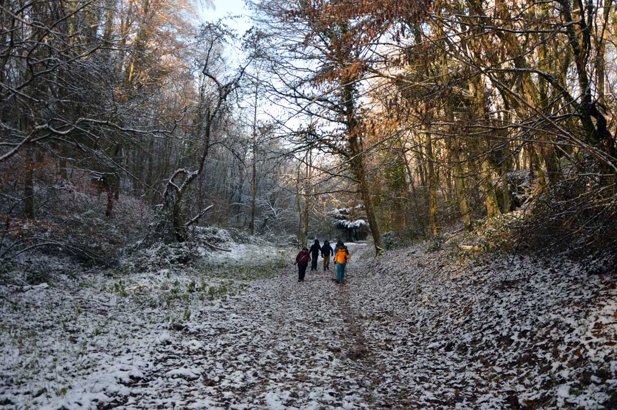 Tellement chouette météo que j’ai même transpiré ! Les pieds bien au chaud dans les chaussures, les mains dans les gants, c’était le paradis, avec toujours cette fantastique lumière entre les arbres, ambiance magique. Un lutin, un elfe, une fée ou autre truc du genre, serait apparu là, j’aurai gobé la chose sans même me poser de questions.